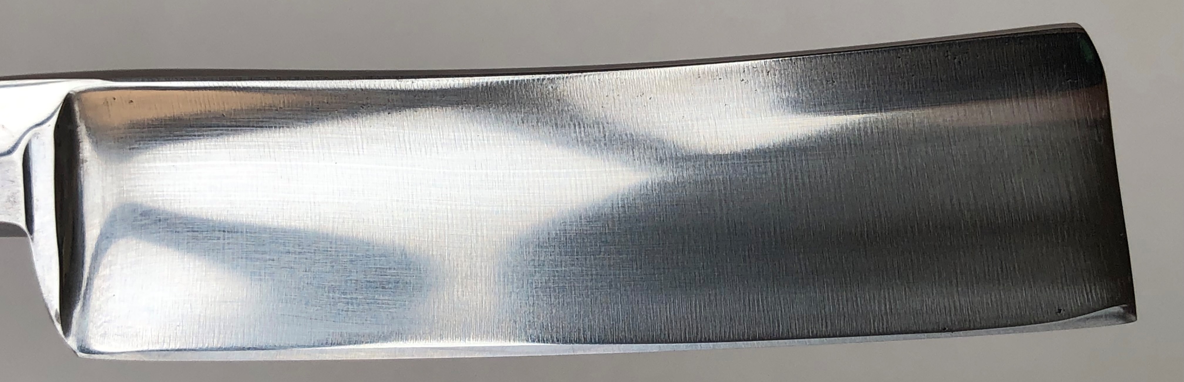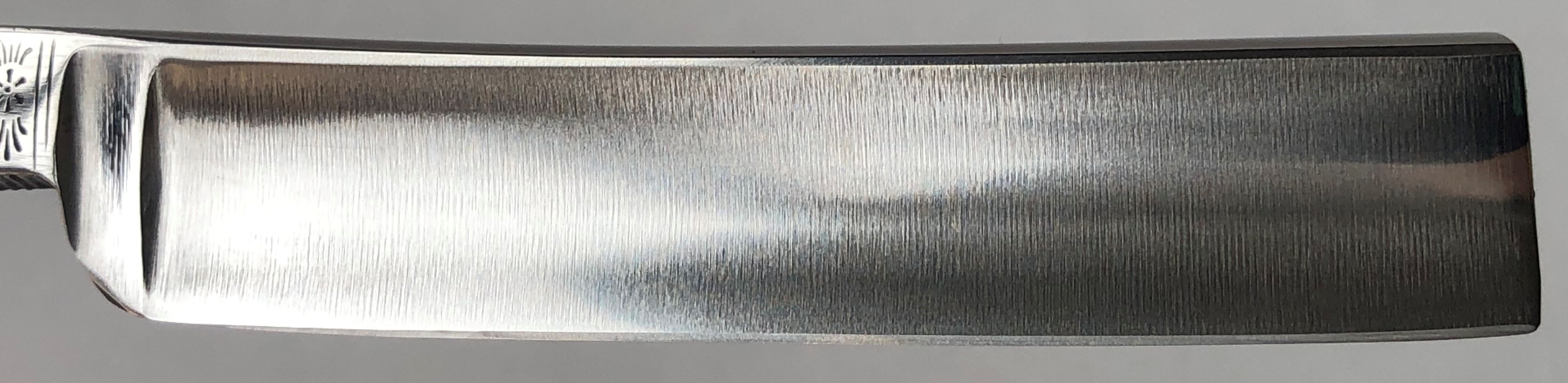 Бритва имеет высококачественную углеродистую сталь, прекрасно и прогнозируемо затачивающуюся и доводящуюся на финишных камнях. Средней твердости. Прекрасное бритьё, с неким металлическим характером сбриваемой щетины, где то напоминающее советские бритвы, но в тоже время по качеству стали и заточки на две головы выше.Бритьё чистое, мягкое, без агрессии. Конечно, такую бритву в полной мере можно рекомендовать новичку, как наиболее удобную в практичную в обучении, но до неё новичку еще нужно дорасти, а вот опытный пользователь в состоянии получить истинное удовольствие от пользования таким раритетом.