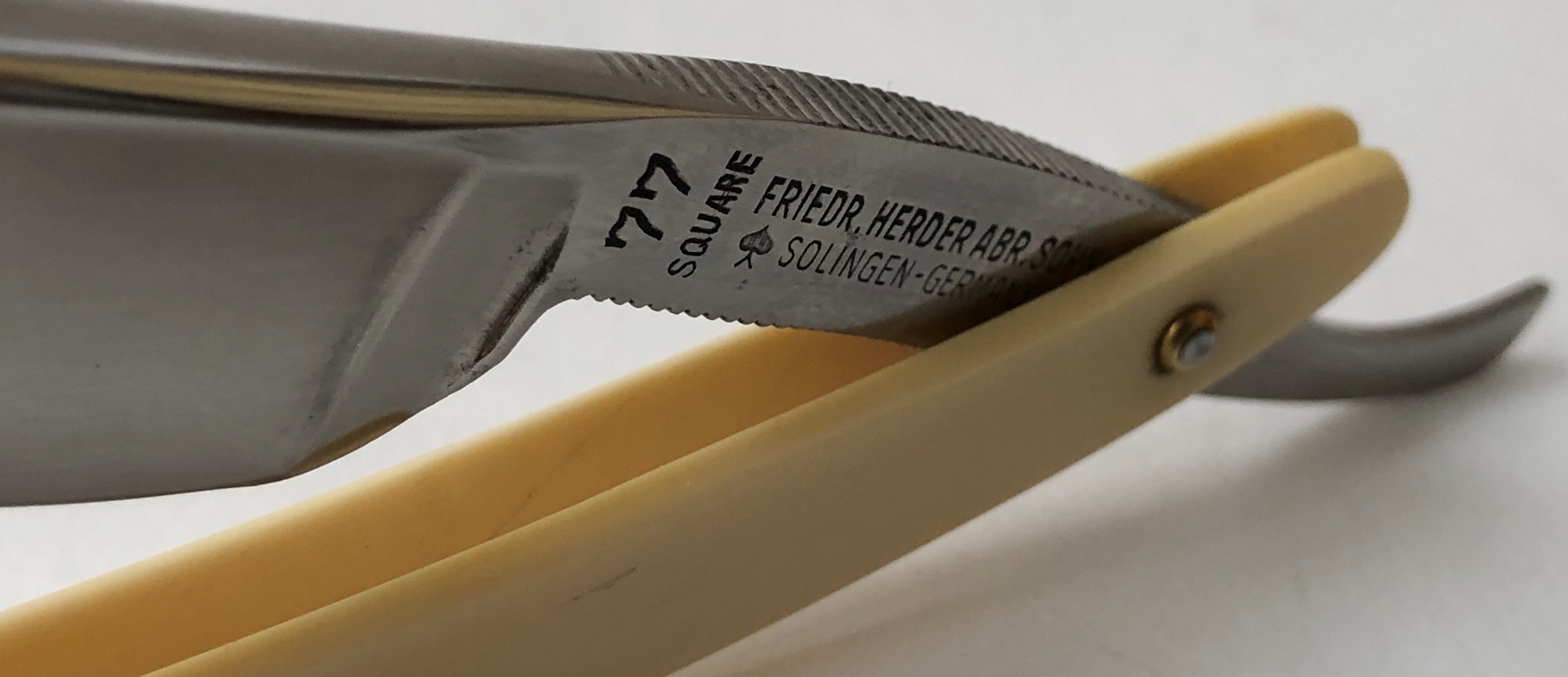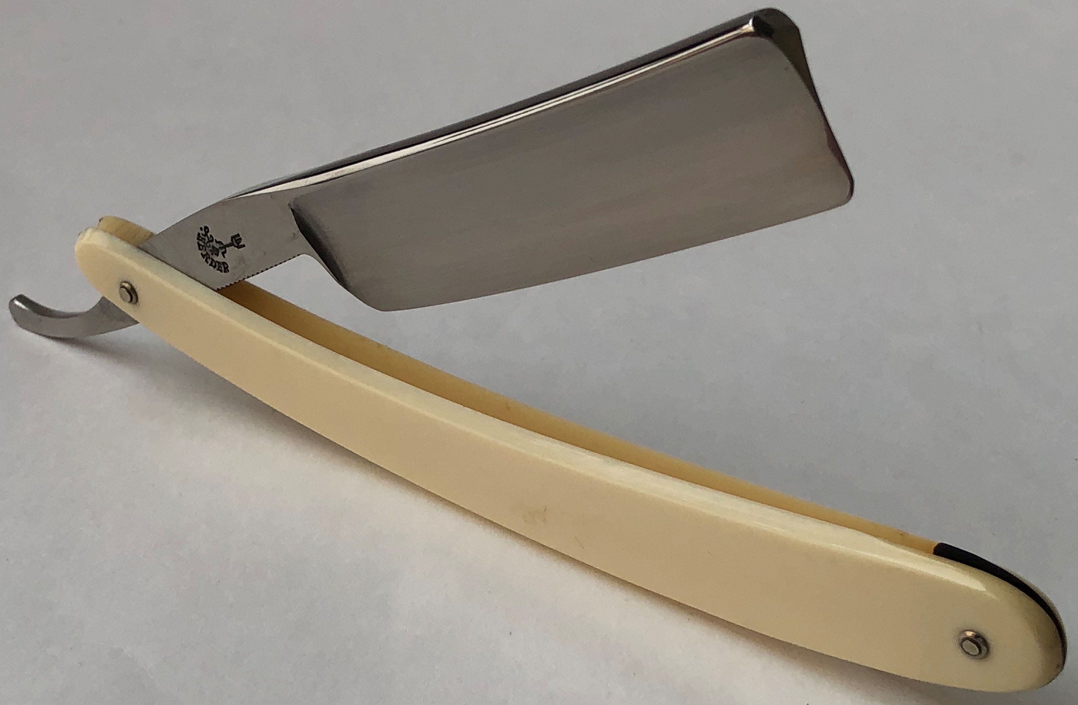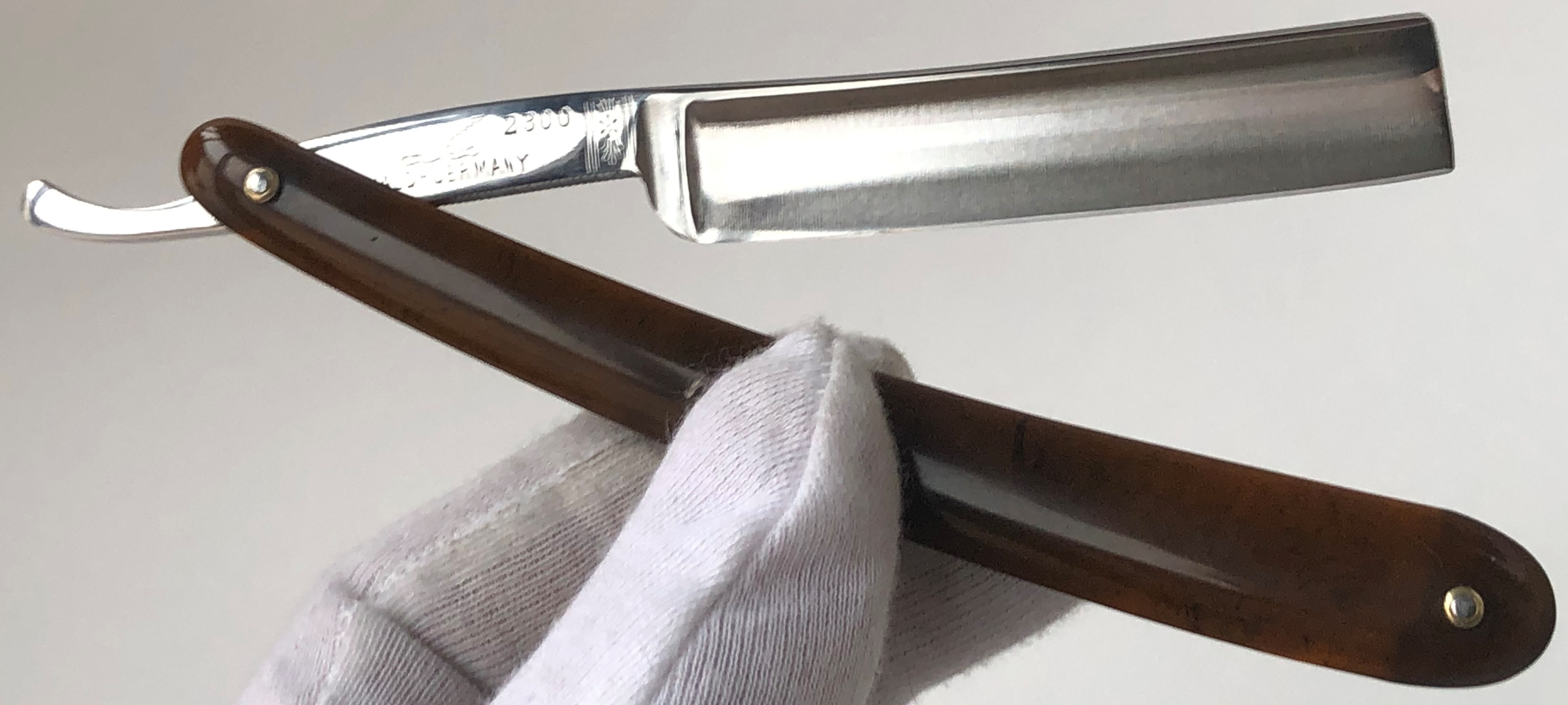 За 100+ лет бритва прекрасно сохранилась и без видимых следов пользования.Никакого регринда, а только умеренная и минимальная шлифовка и полировка.Идеальная геометрия полотна:кромочка равномерна по всей длине.Добавил внутренние шайбы, а также поставил более эффективные двух-цветные втулки. Красивая пластиковая оправа. Бритва среднего размера и опытный пользователь в состоянии оценить ее в полной мере.Ну и для новичка будет тоже неплоха,как качественная,удобная и относительно недорогая вещь.Не пропустите реально красивую,высококачественную,старинную бритву от одного из самых лучших немецких производителей прошлого.