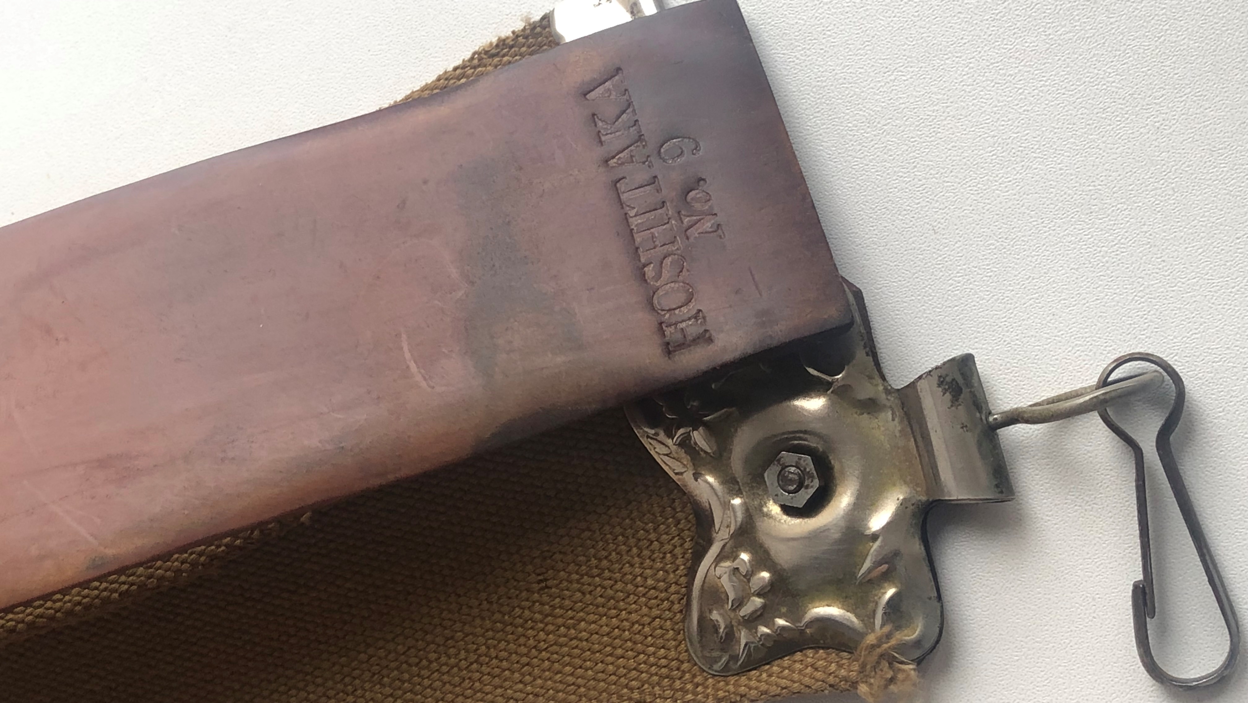 Кожа умеренно эластичная, что очень хорошо,так как в процессе правки станет более мягкой, зеркальной и еще более эластичной, но в тоже время не такой "жидкой", как можно было наблюдать на многих современных ремнях Канаяма.Снизу и с обратной стороны кордована можно увидеть потемнения и какие то пятна,возможно от попадания воды, возможно еще что то,что на качестве и состоянии кожи никак не сказалась, так что тут можно особо не обращать внимание.Вторая льняная стропа в относительно хорошем состоянии.Была простирана. Имеет снизу потертости,но не критично.В общем и целом очень неплохой экземпляр, примерно равных канаямовским ремням 60000-80000 моделям.