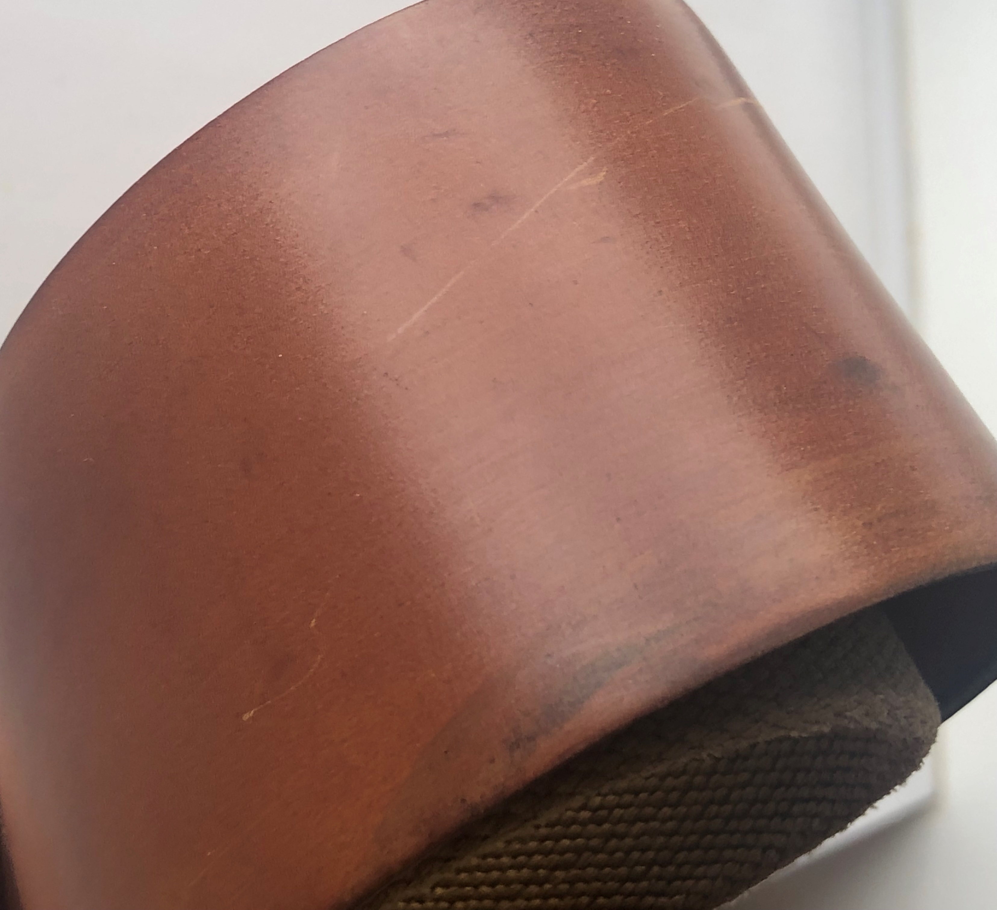 Ремешок пользованный, но в очень хорошем состоянии.Не ремонтировался. Есть несколько незначительных боковых пореза, но практически незаметно и никоим образом не повлияет на сам процесс правки.Кожа умеренно плотная и со временем станет еще более эластичной и "зеркальной".Сама кожа кордован без видимых природных дефектов, в виде прожилок, трещин, рассохшихся мест и т.д.