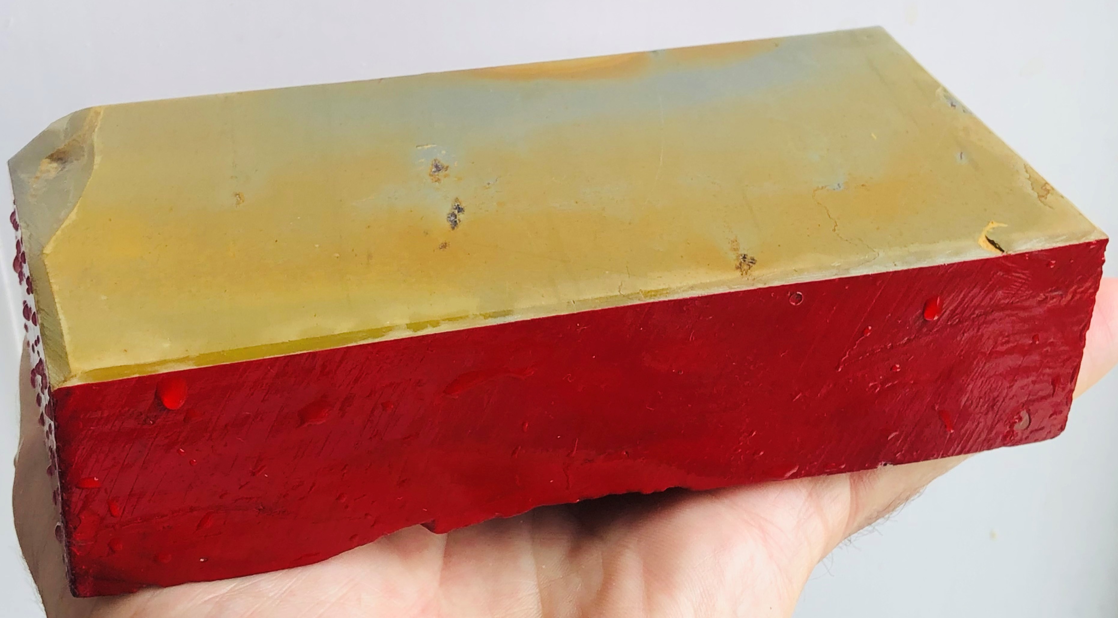 Отличный камень для полировки столярного инструмента и супер финиша ножей. Торцы и обратная сторона покрыты лаком.