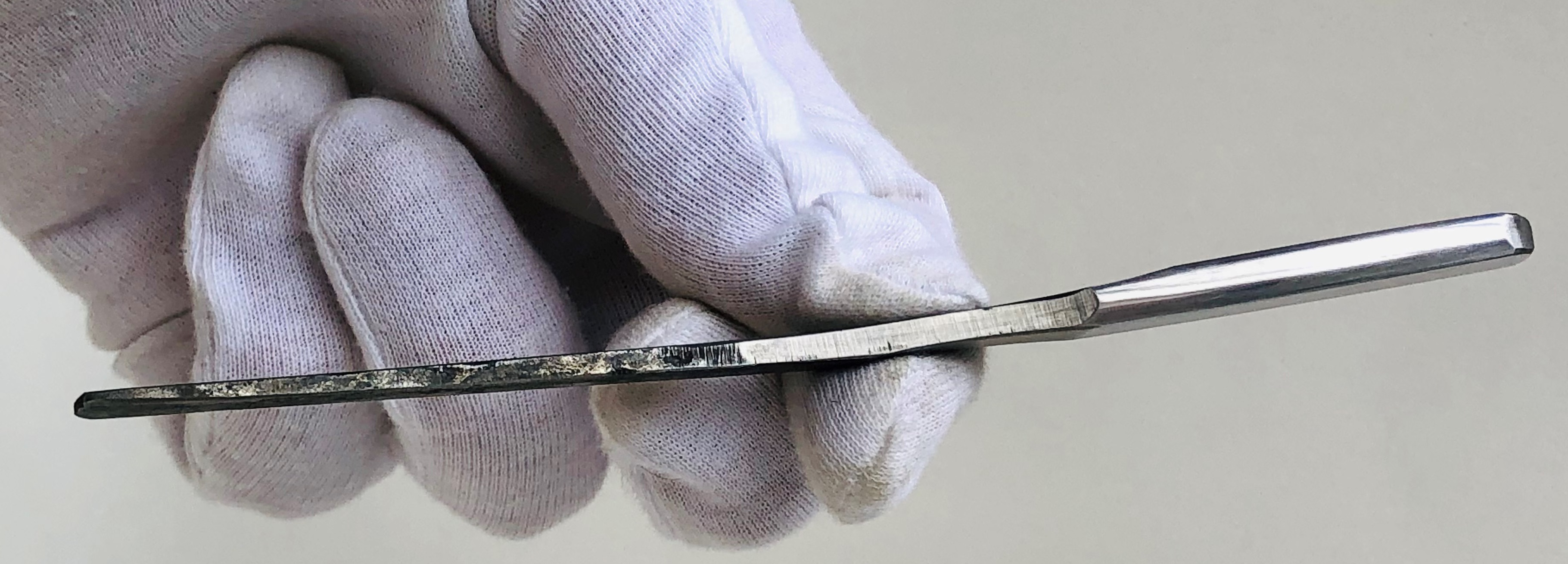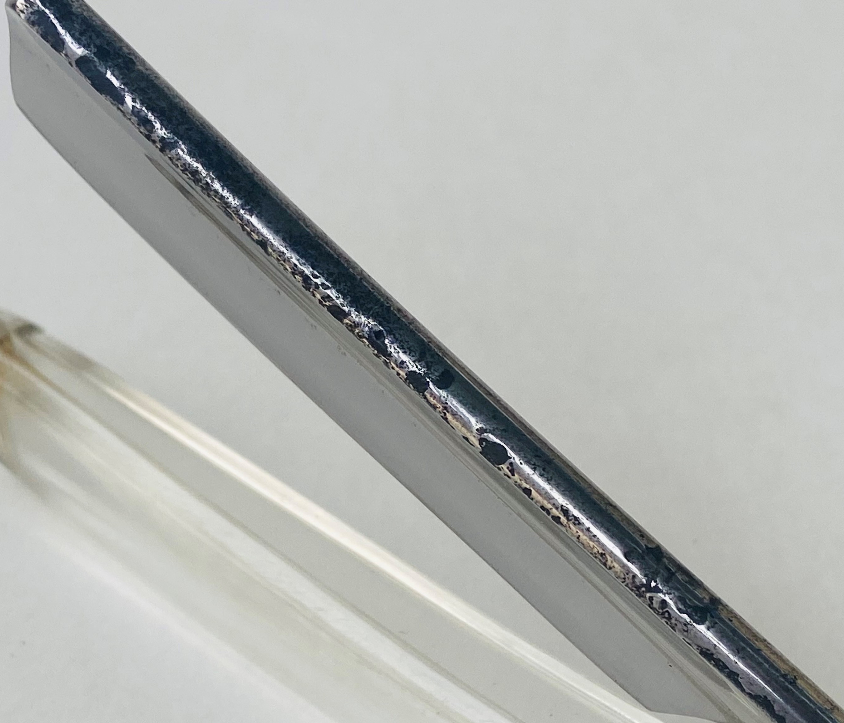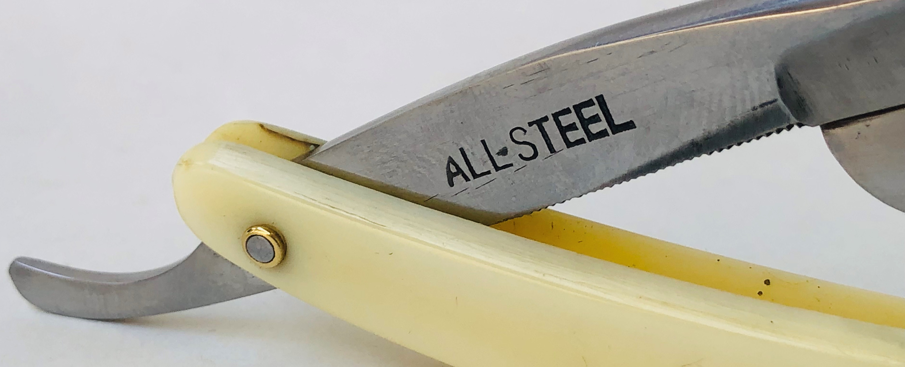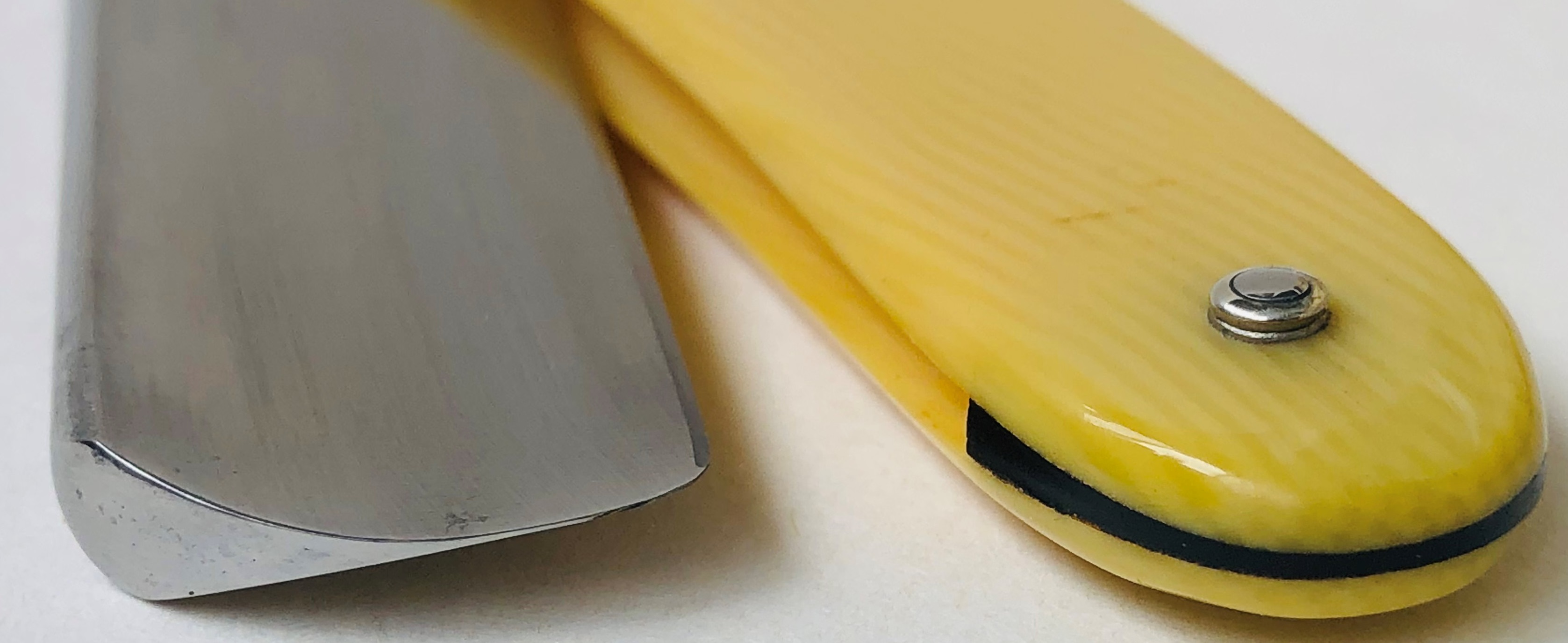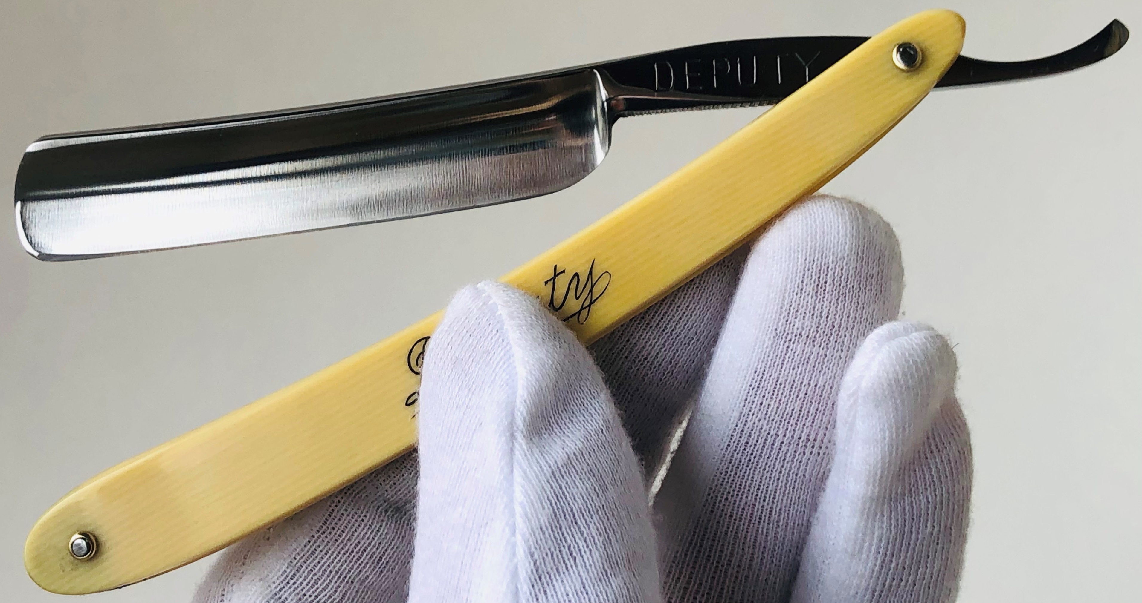 Был у меня старенький клинок,до которого не доходили руки. Древняя бритва, с достаточно значительными "следами времени", в виде патины и каверн. Полотно было по возможности очищено, а на эрле и обушке все оставил как есть, дабы придать бритве естественный, антикварный вид,соответствующий её приличному возрасту.Старую оправу из оргстекла подобрал под размер клинка.Новые втулки и внутренние шайбы. Заточил и лично протестировал. Тут сталь достаточно твердая, так что на первый раз бритьё прошло с элементом агрессии,но все чисто и без раздражения.В общем и целом неплохая и совершенно недорогая бритва,со "следами времени". Заточена и готова к бритью.