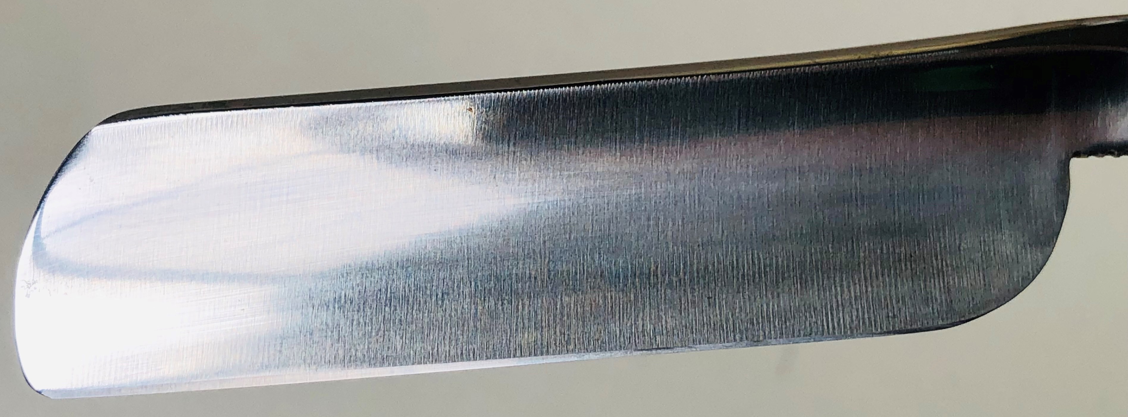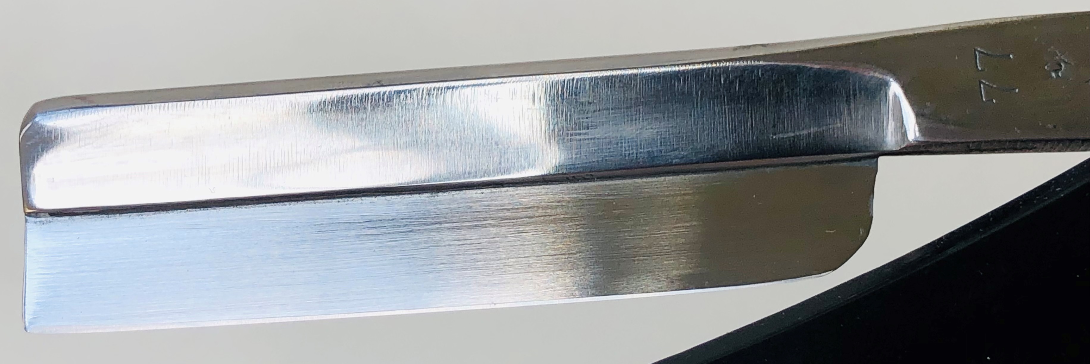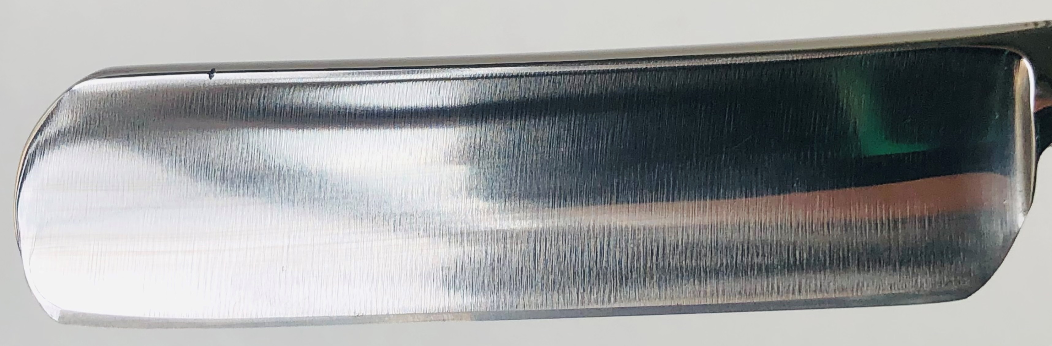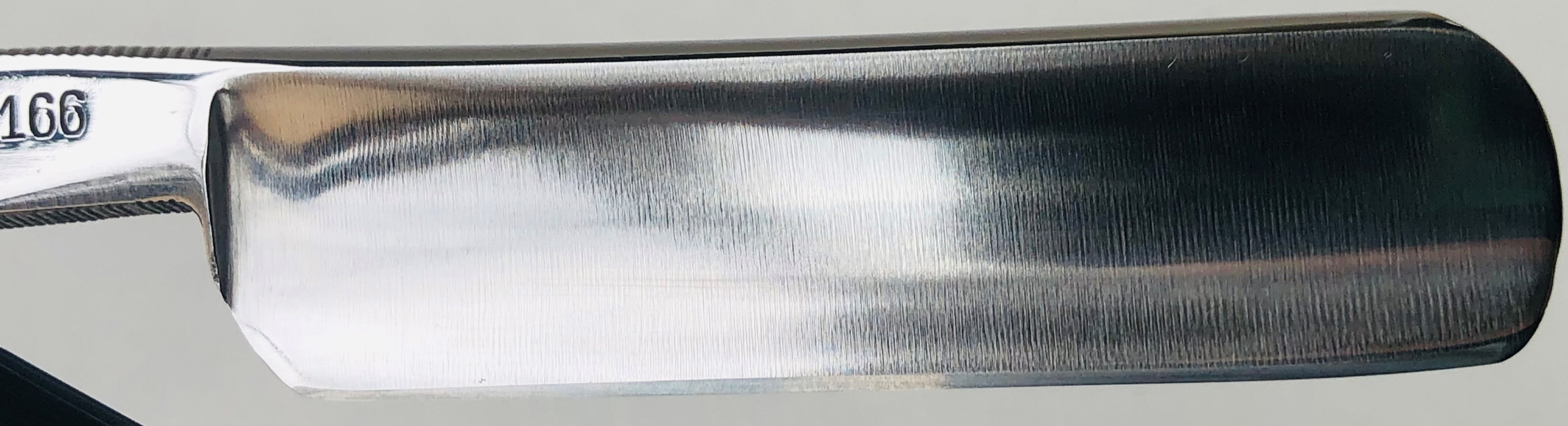 Бритва скорее всего в пользовании не была, но потребовались минимальные ,косметические работы.Умеренная,комбинированная продольно-поперечная шлифовка и умеренная полировка. Идеальная геометрия клинка:кромочка равномерна по всей длине. Новые втулки и внутренние шайбы. Бритва заточена и готова к бритью.