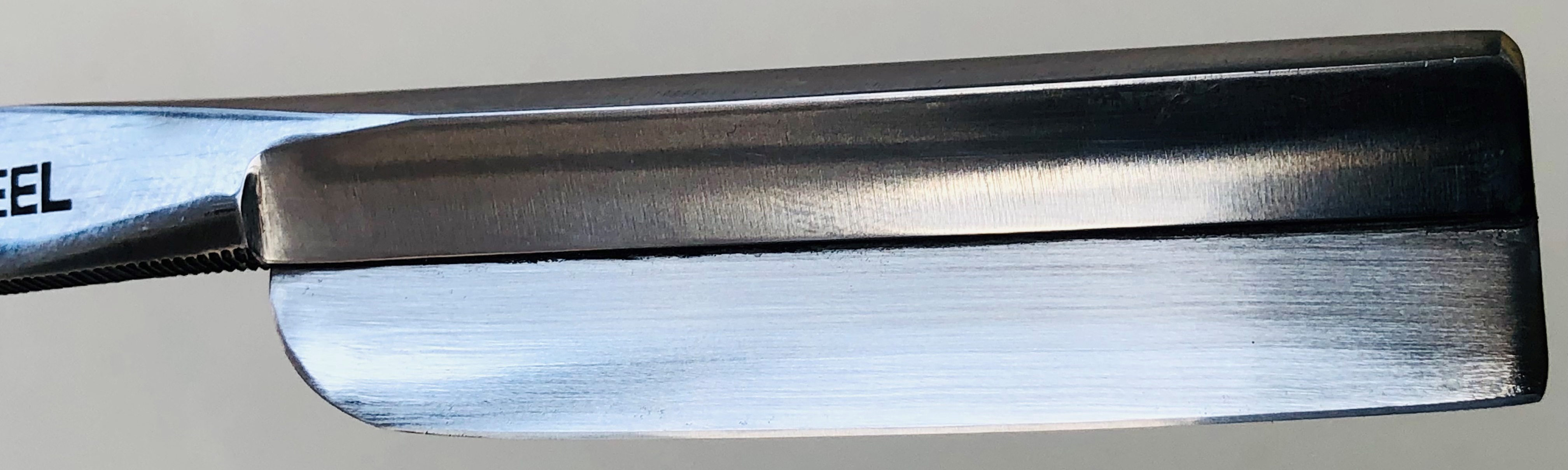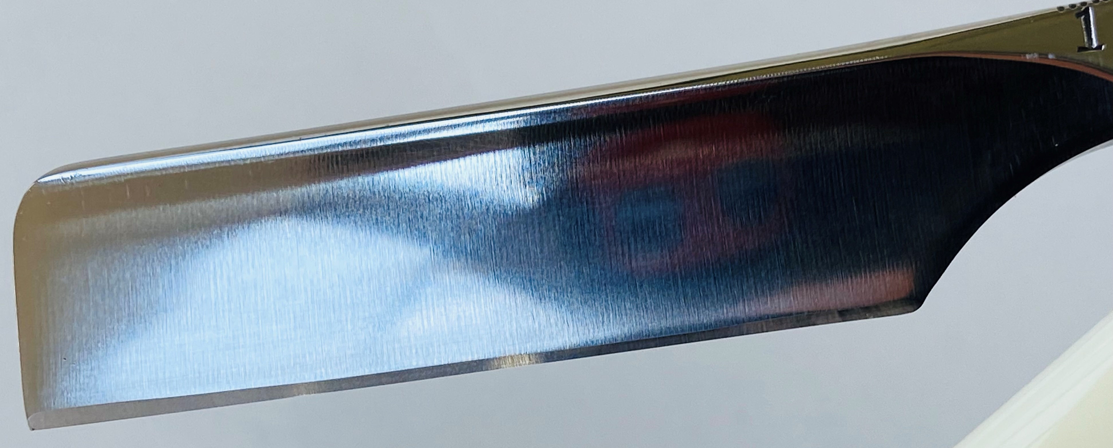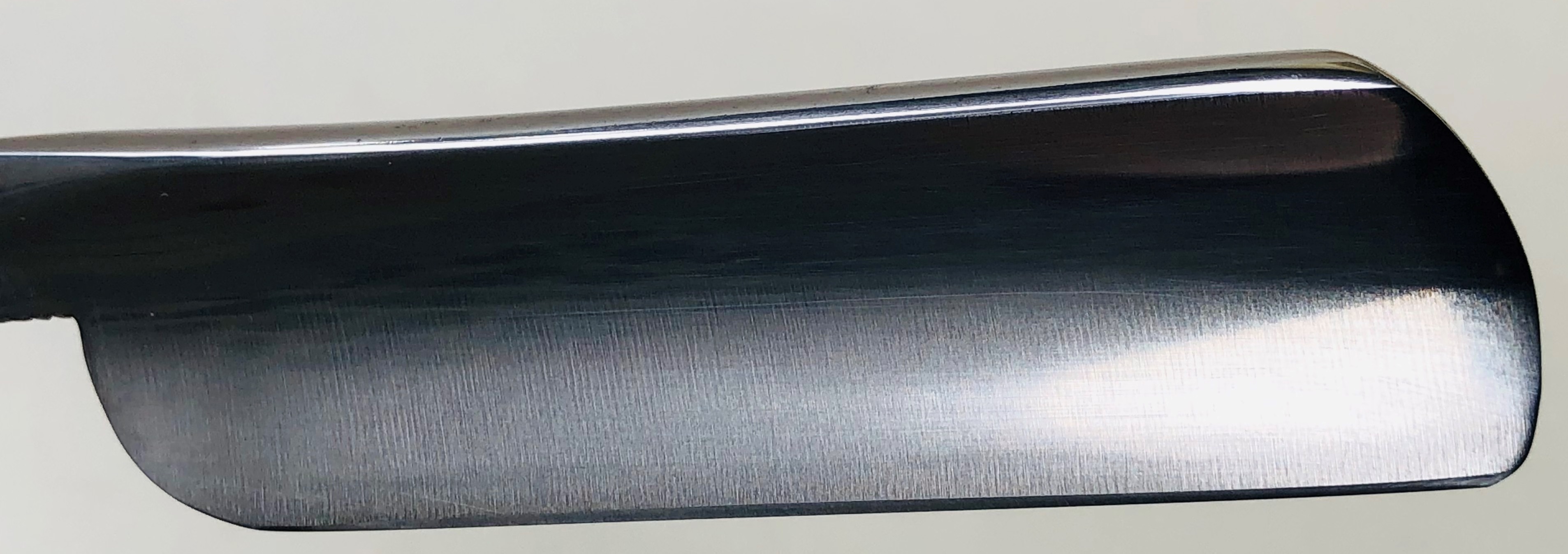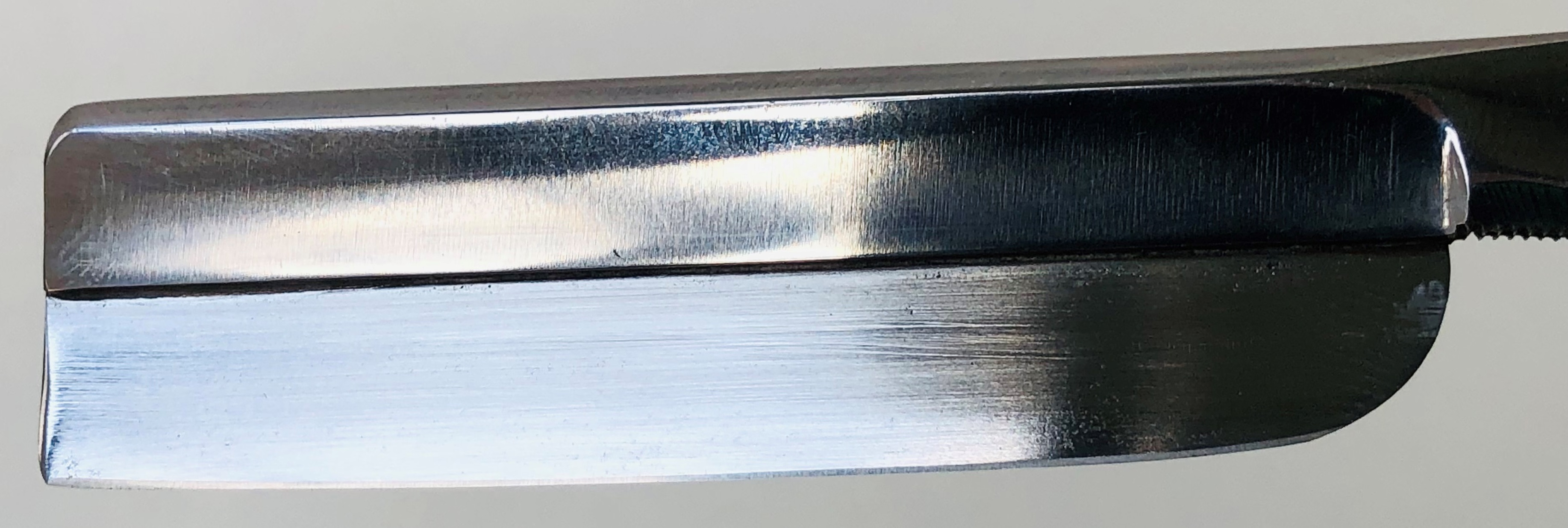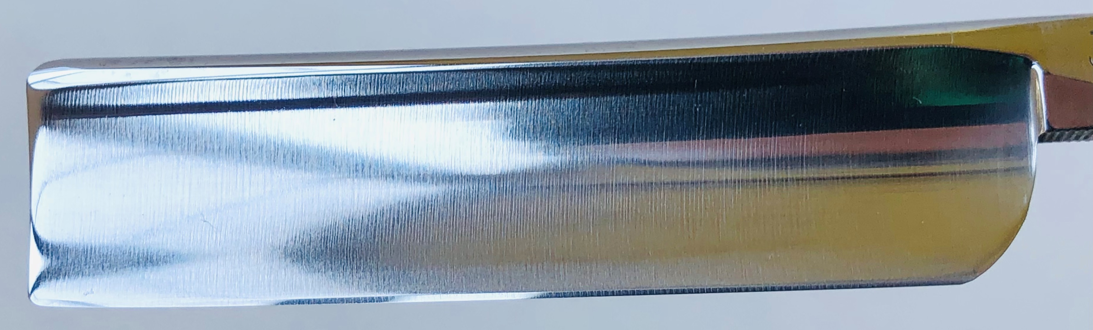 Бритва скорее всего в пользовании не была, но потребовались минимальные ,косметические работы.Умеренная,комбинированная продольно-поперечная шлифовка и умеренная полировка. Идеальная геометрия клинка:кромочка равномерна по всей длине. Новые втулки и внутренние шайбы. Бритва заточена и готова к бритью.