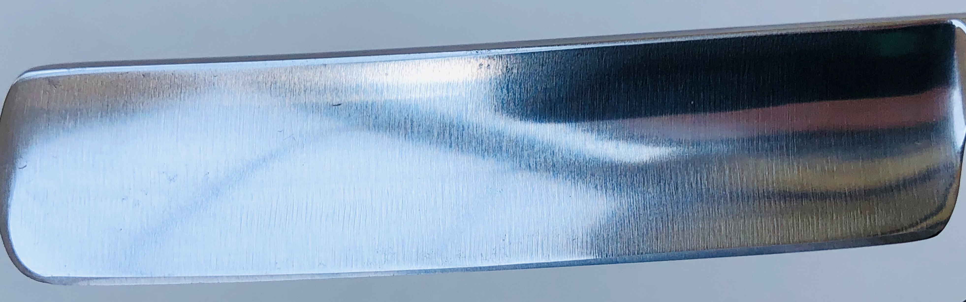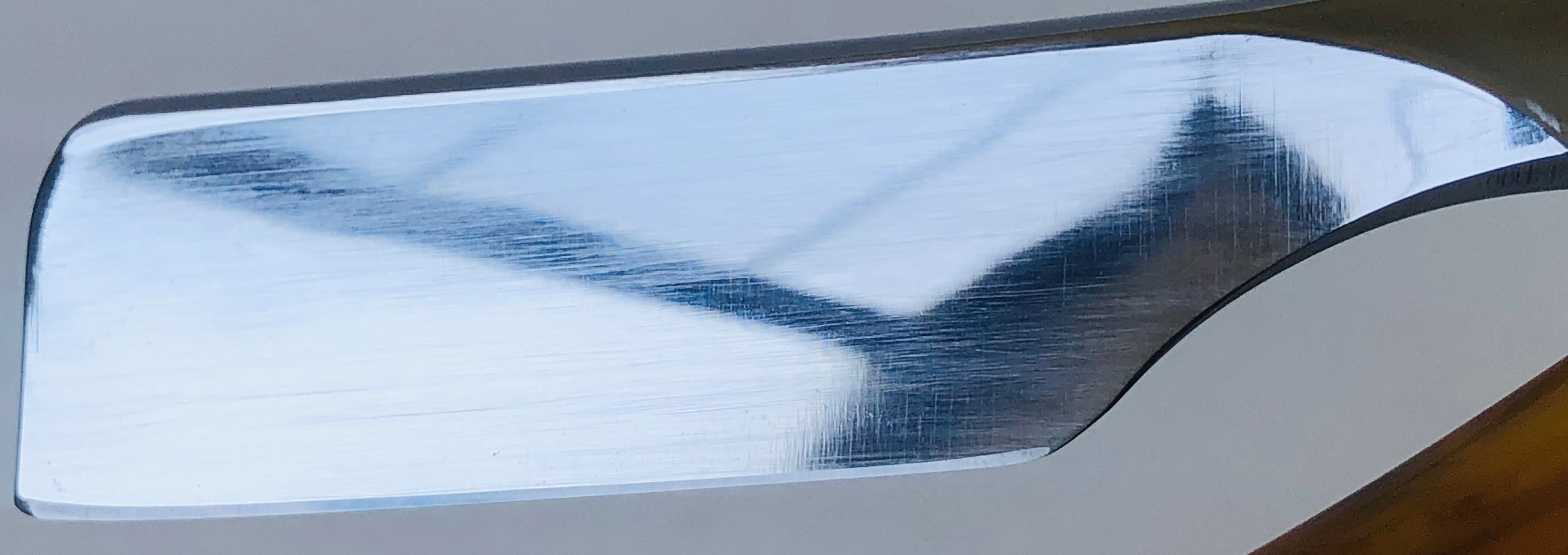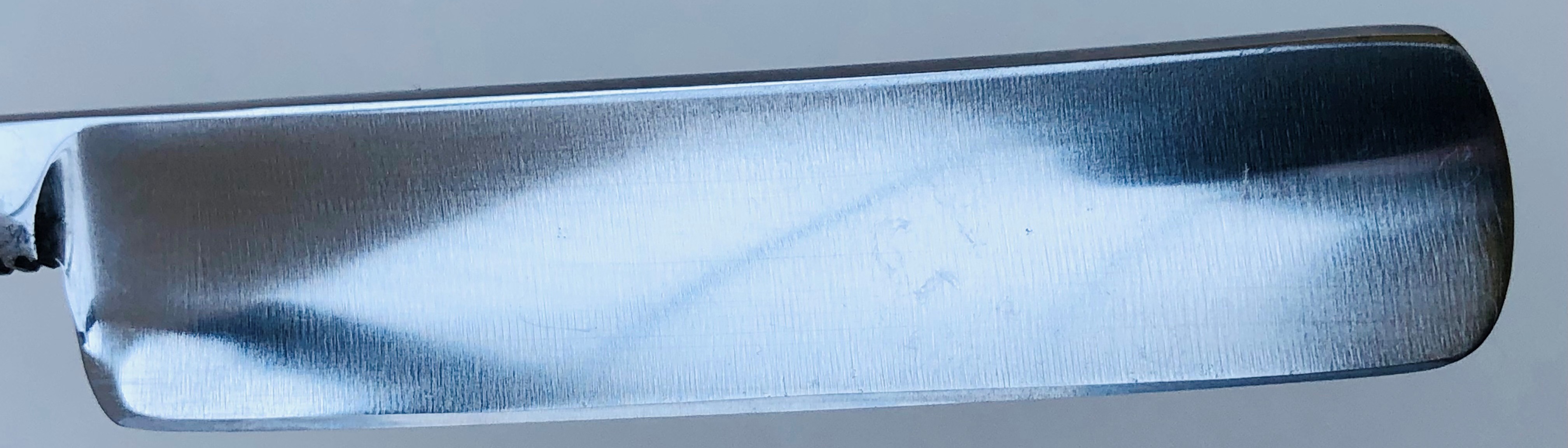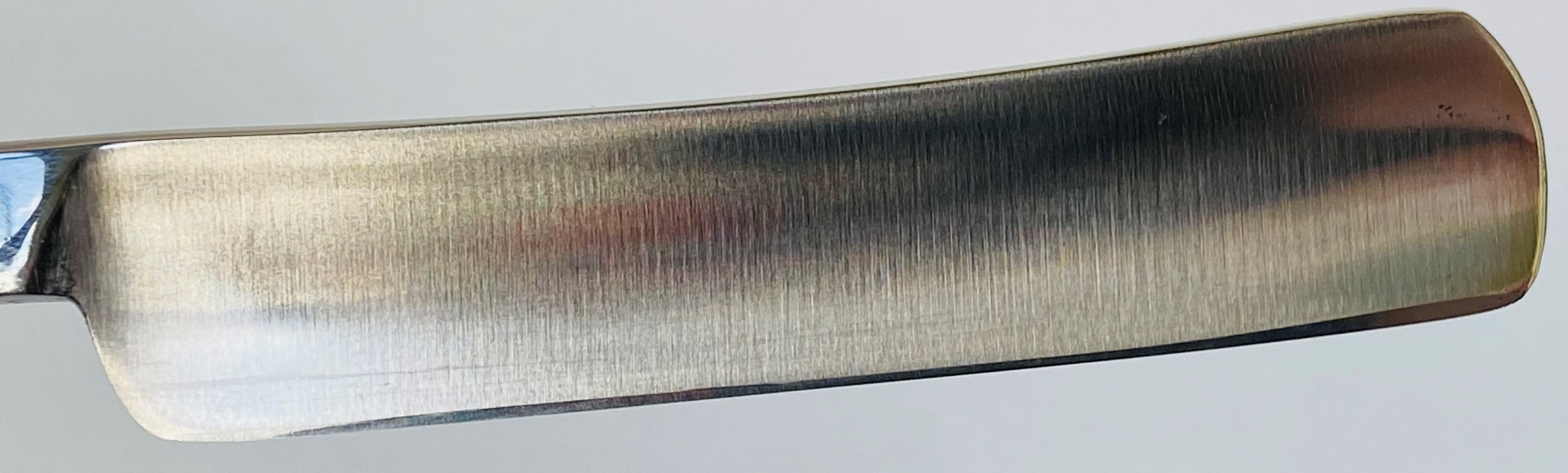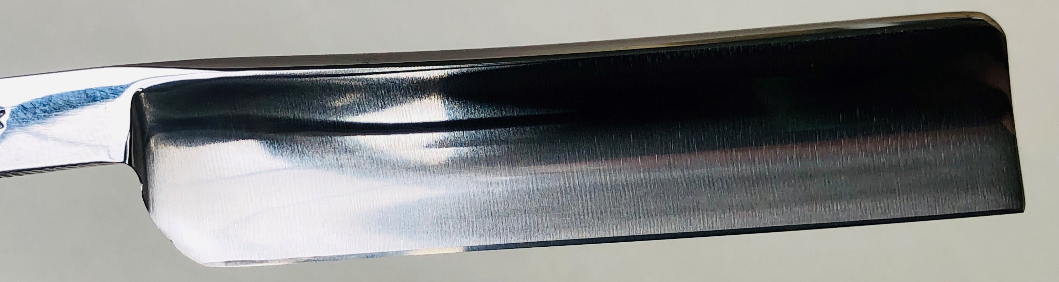 Бритва скорее всего в пользовании не была, но потребовались минимальные ,косметические работы.Умеренная,комбинированная продольно-поперечная шлифовка и умеренная полировка. Идеальная геометрия клинка:кромочка равномерна по всей длине. Новые втулки и внутренние шайбы. Бритва заточена и готова к бритью.