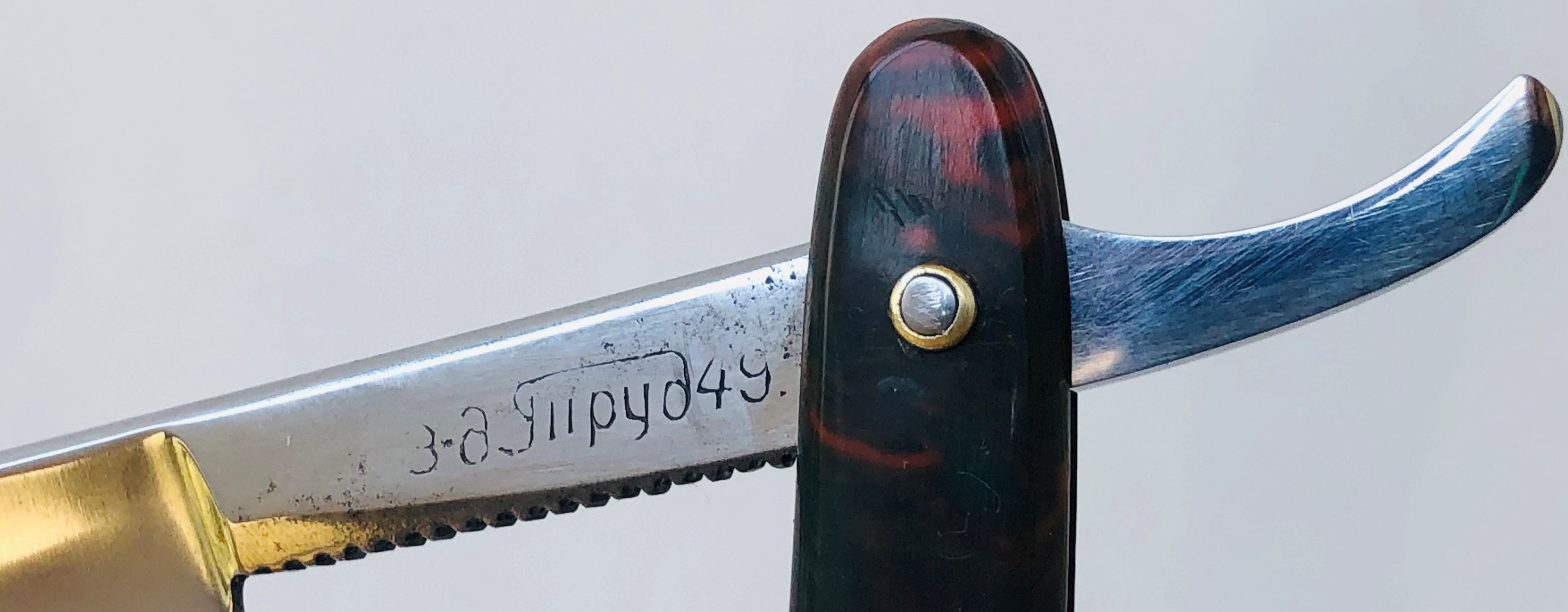 Бритва в прекрасном состоянии для своих лет и по всей видимости в пользовании не была. Требовались минимальные косметические работы, поэтому бритва была перебрана, с умеренной шлифовкой и полировкой.Новые двух-цветные пины, с добавлением внутренних шайб,для улучшения осевого механизма.Очень хорошая геометрия полотна:кромочка равномерна по всей длине.Достаточно тяжёлая и крупная.Труд вачи 40-х гордов особо ценны у большинства интересующихся Бритвой товарищей, так что не пропустите себе экземпляр "сталинский времен" в свою коллекцию. Очень хорошо подойдет для новичка также, как удобный и недорогой вариант.