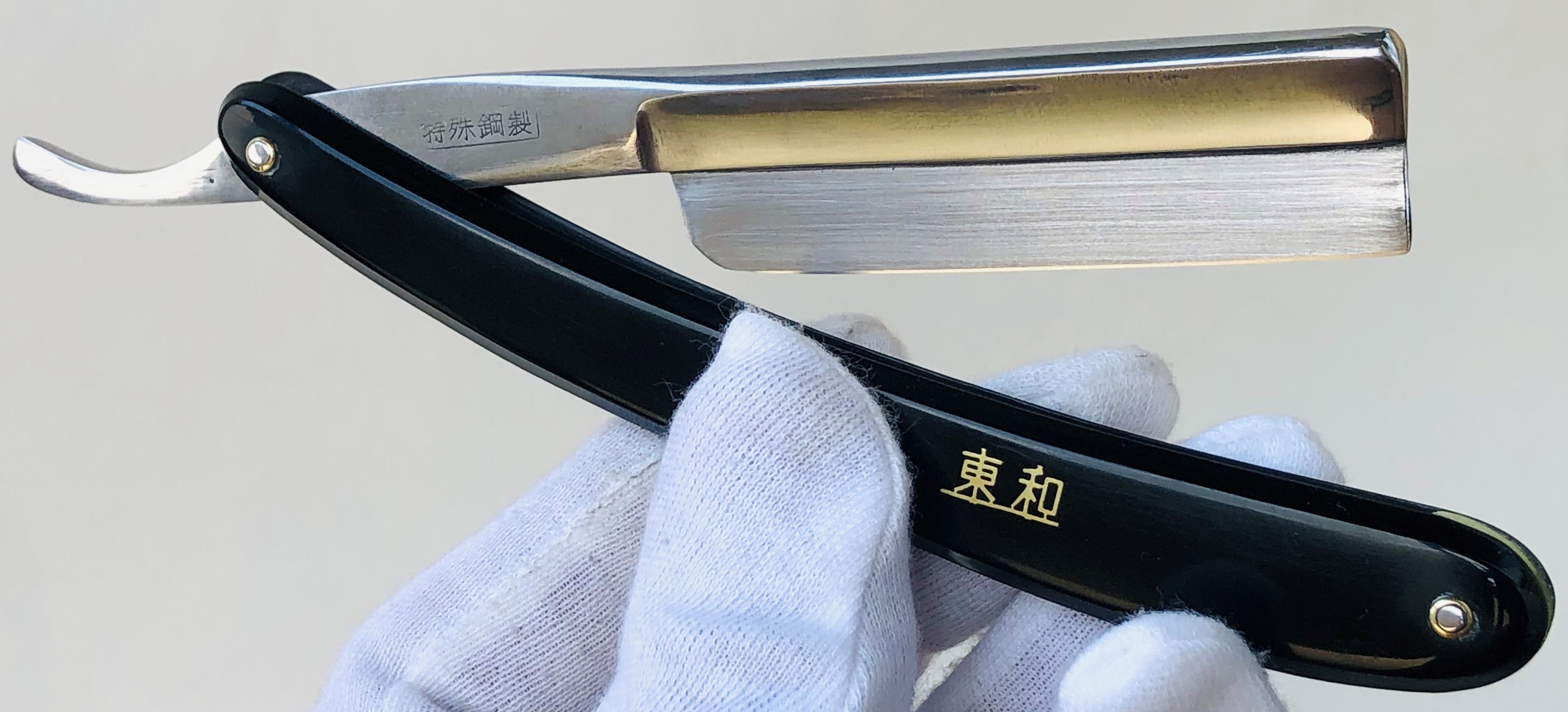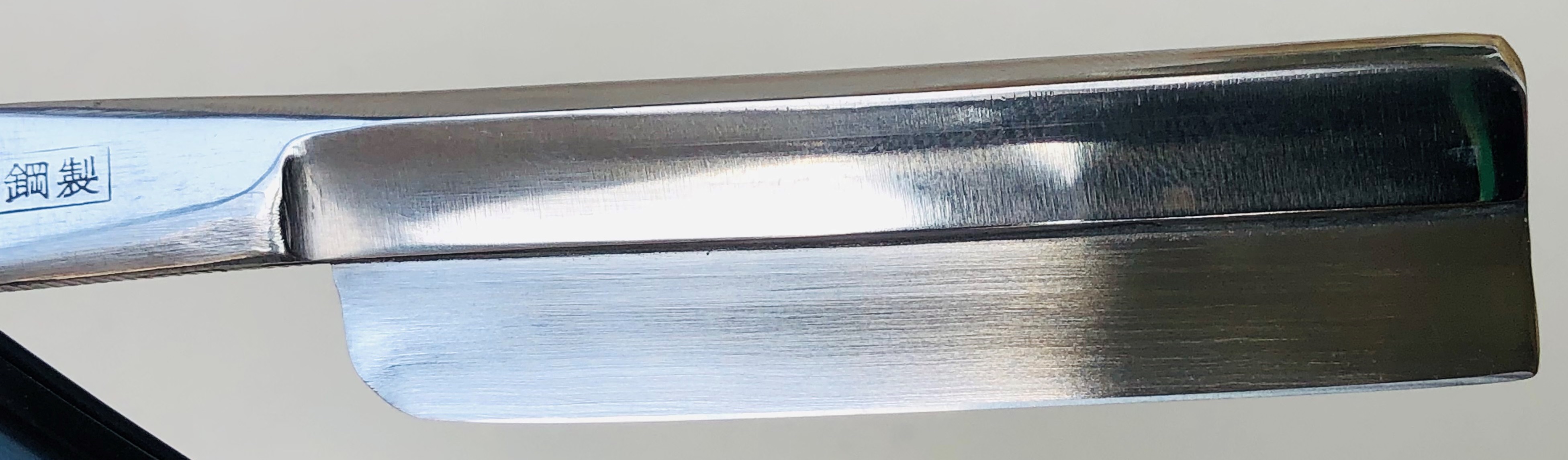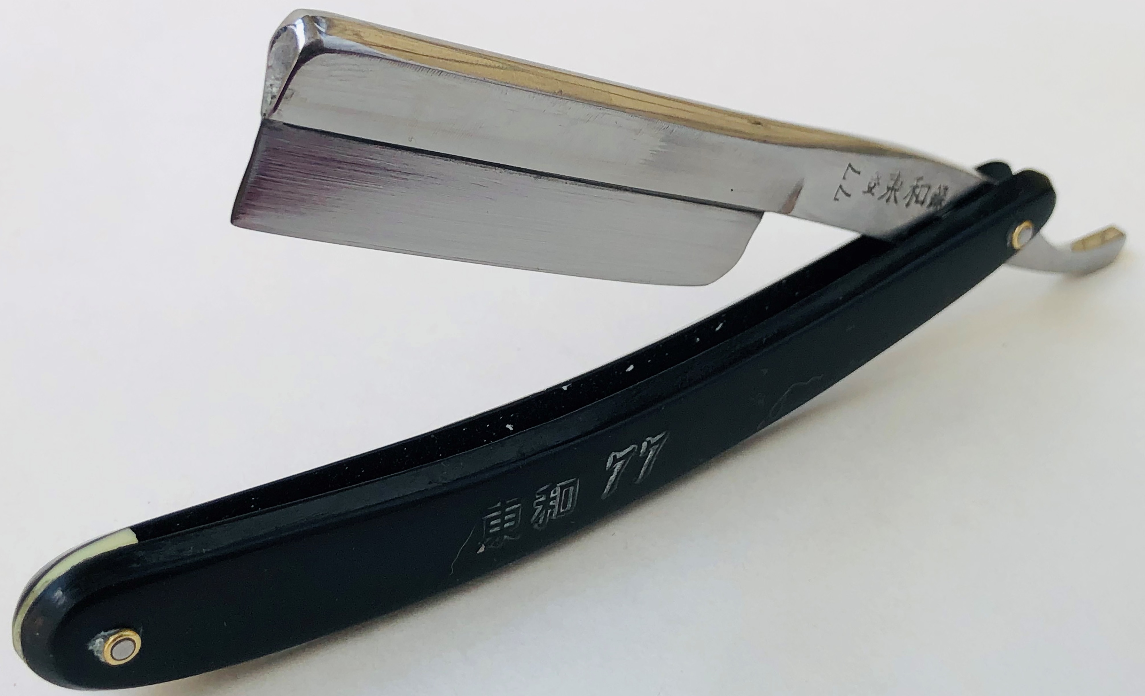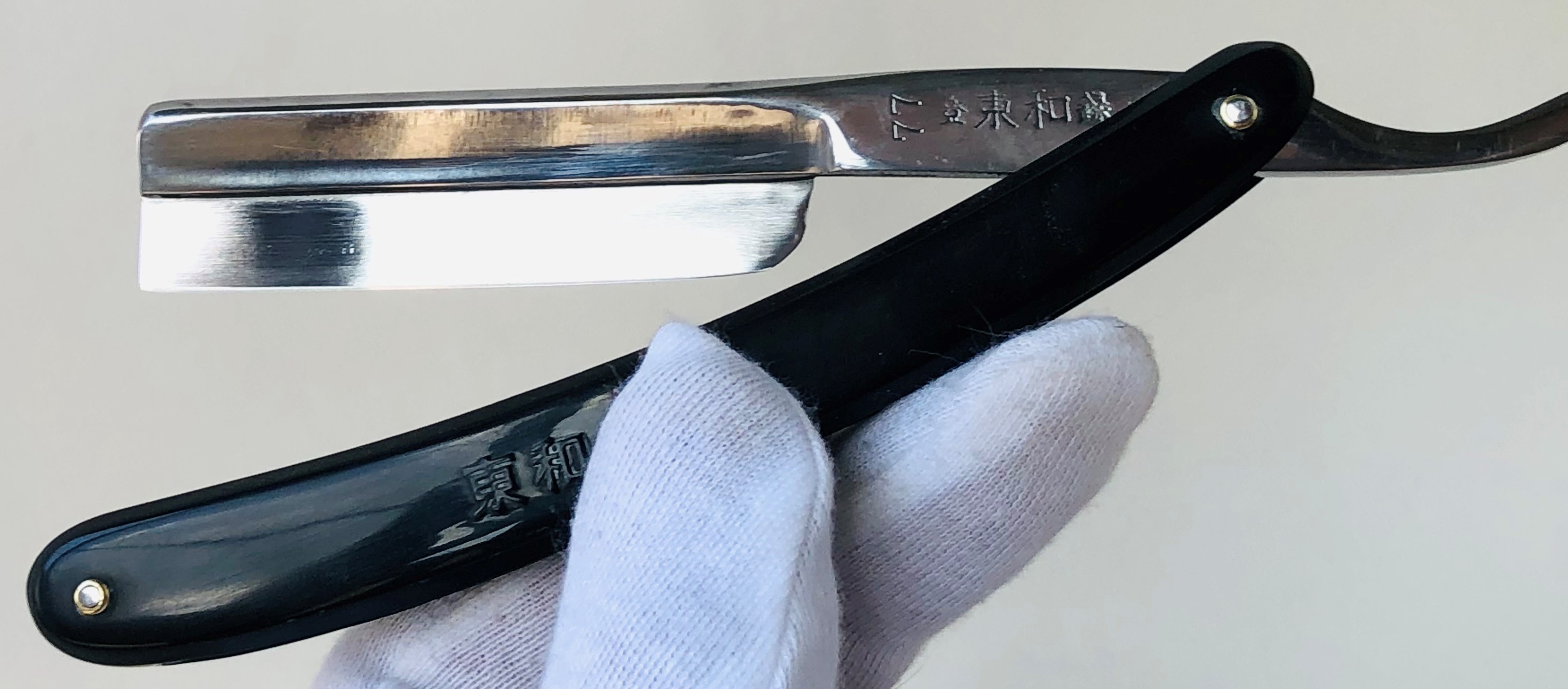 Бритва с минимальными следами пользования и находится в прекрасном состоянии. Ничего не разбиралось и не ремонтировалось.Заводская(по всей видимости ручная шлифовка).Немного отполировал клинок, дабы придать былой блеск металлу.Идеальная геометрия:кромочка равномерна по всей длине .Шикарный укороченный клинок,созданный в чисто японском стиле.Практически не встречается в свободной продаже,так что не пропустите!