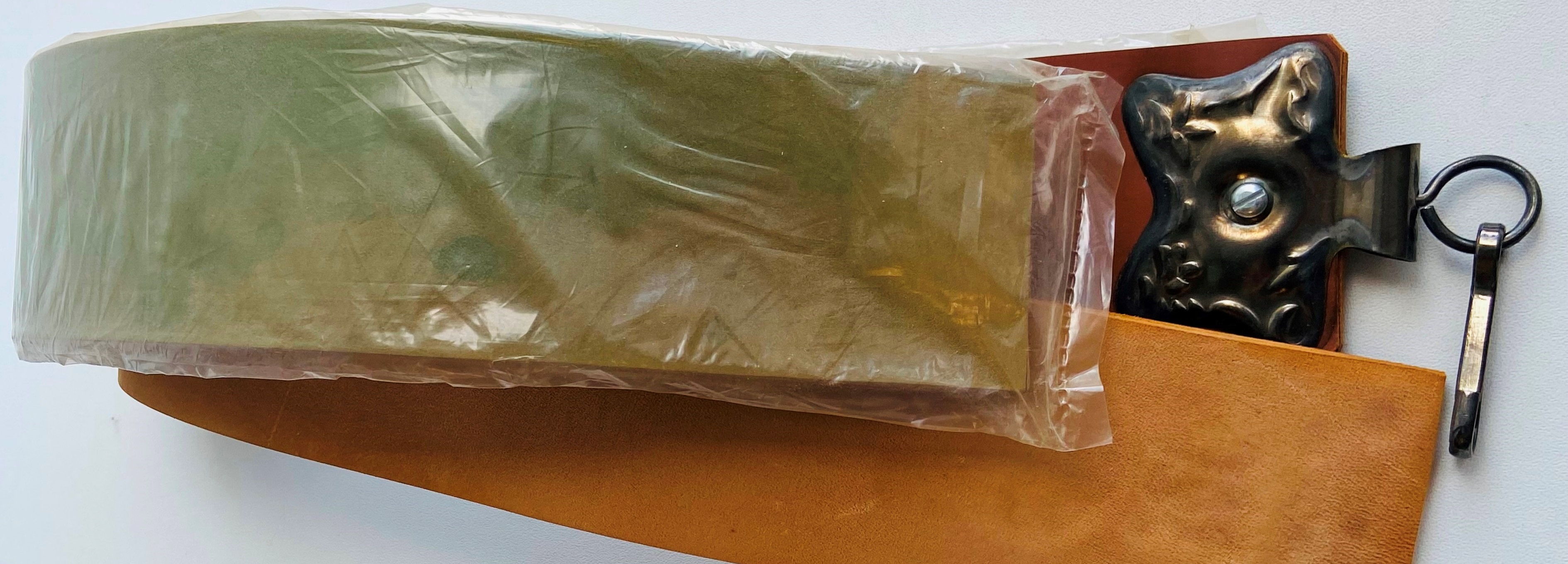 Высококачественный, непользованный ремень из кордована от одного из самых популярный японских брендов прошлого, специализировавшееся на производстве профессиональных парикмахерских инструментов.