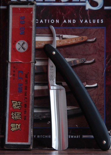 Было небольшое пятнашко на полотне, которое убрано путём полировки. А так, бритва в очень хорошем состоянии. Родная коробочка. Бритва не разбиралась и не ремонтировалась. Тяжёлая. Сталь без ржавчины, питтинговой коррозии и иных дефектов. Будет заточена и подготовлена к бритью.