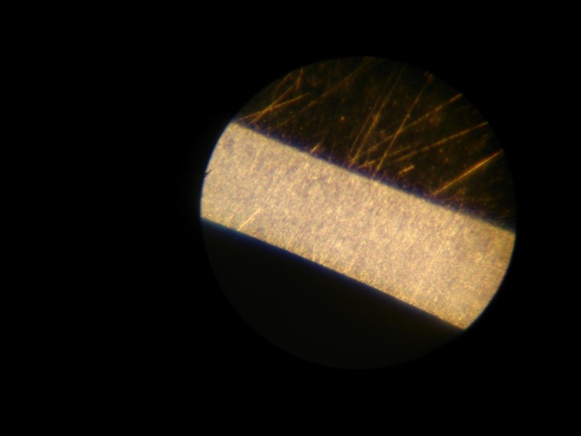 Re: Продаётся от Veselchak85 (природные камни и карбид кремнДля информации к размышлению прилагаю фото, на всех фото одна и та же бритва точилась (ERN (серебрянная сталь)), делюсь сокровенным так сказать, для себя делал. Для начала кромка после Coticule Selected, не суспензия, чистый камень с водой. Увеличение 100х, и уточняю для любителей кидаться тапками, увеличение 100х, это то, что написано на моем совдеповском детском микроскопике, а то начнется это не 100 кратное увеличение и прочее ни кому не нужное бла, бла , бла. Spoiler Show Увеличение 200х Для просмотра фотографий нажмите на "+ Скрытый текст", это снова для, ну вы поняли  Да, я люблю поерничать.   Spoiler Show Увеличение 100х Spoiler Show Spoiler Show Увеличение 100х Spoiler Show Spoiler Show Re: Продаётся от Veselchak85 (природные камни и карбид кремния) Выбранные, пишу не от того, что дофига грит будут выдавать, а потому что однородные, соответственно, более высокого качества.  С уважением, Андрей.