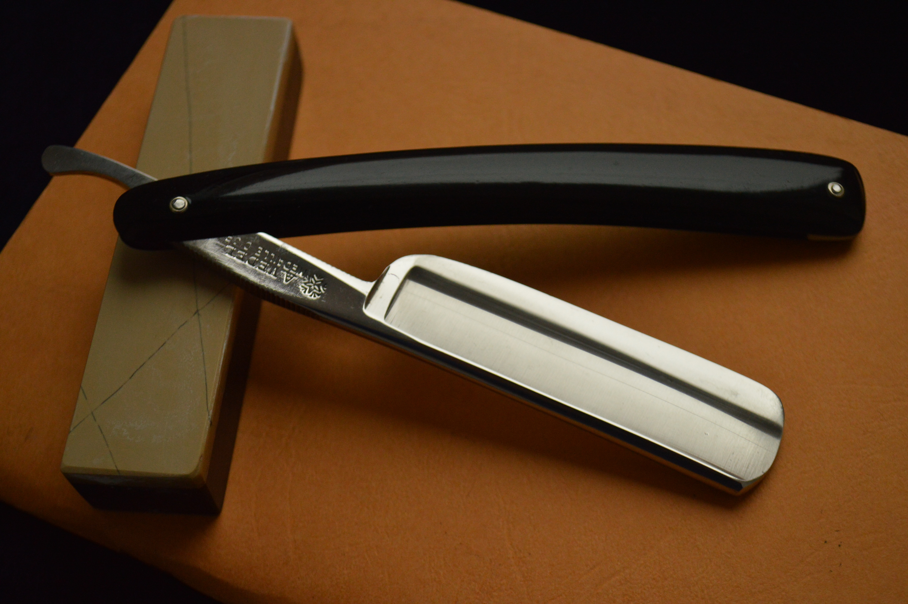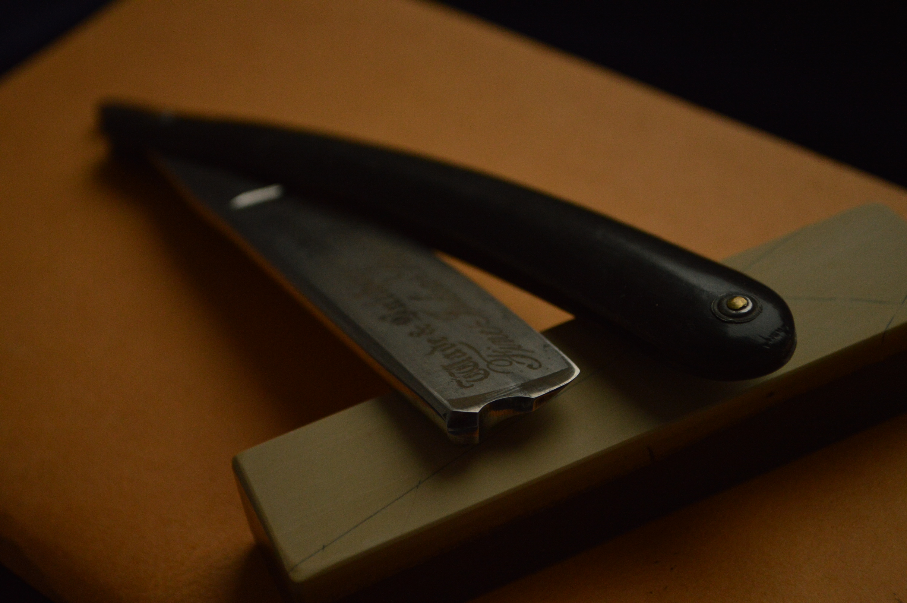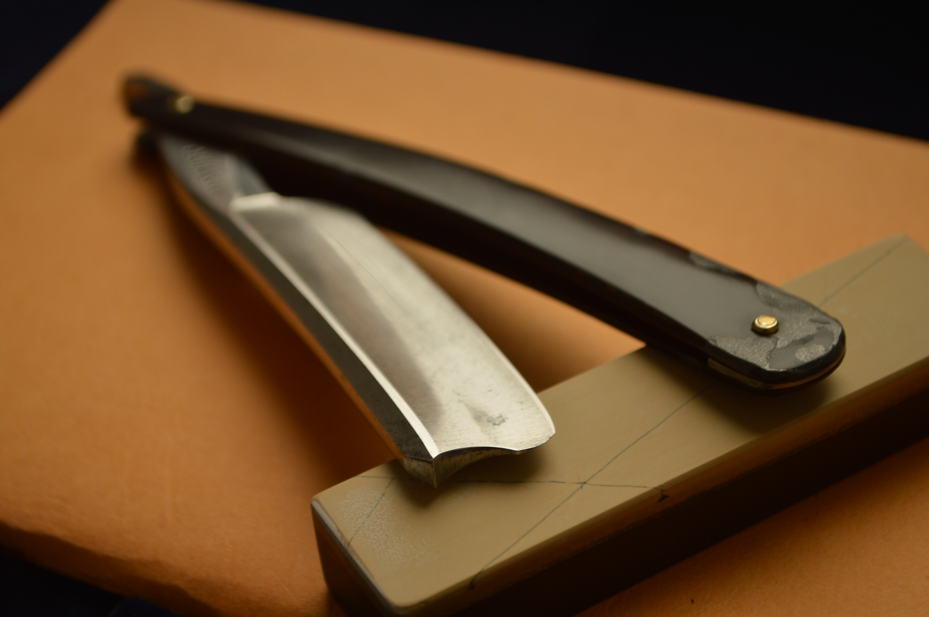 Для 150-летней бритвы в строении клин имеет замечательную геометрию, что можете видеть по состоянию заточной фаски на фото.