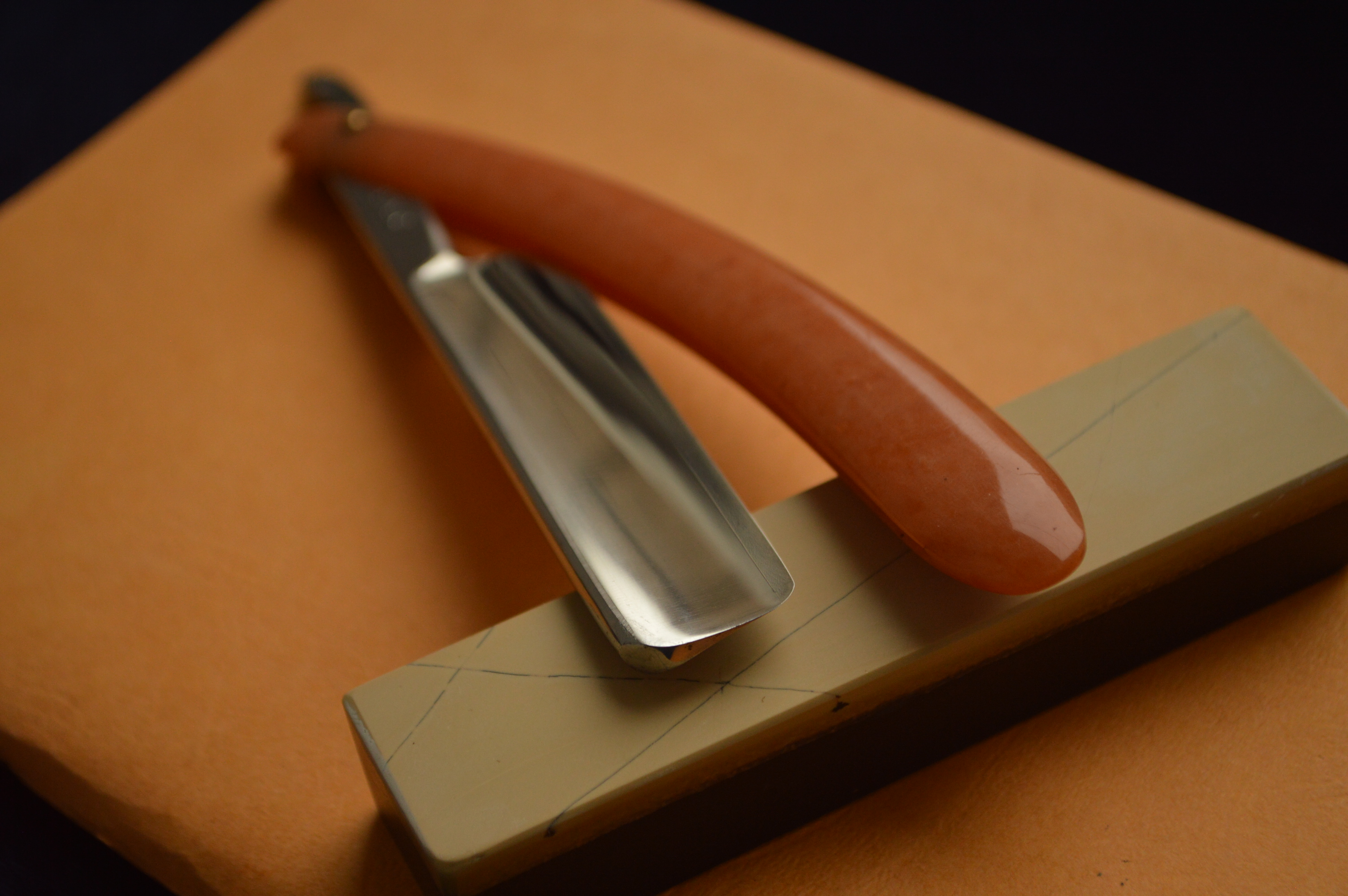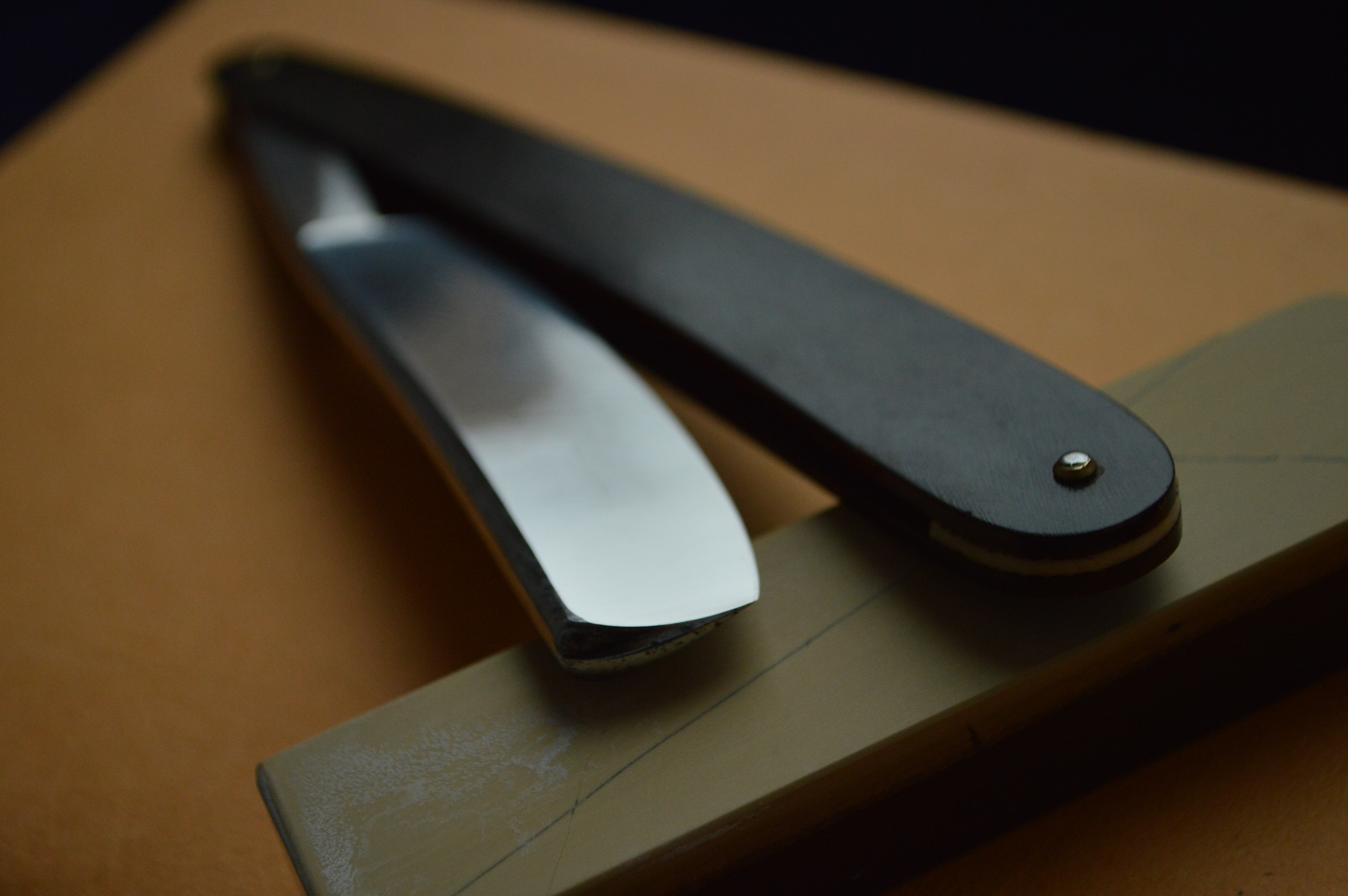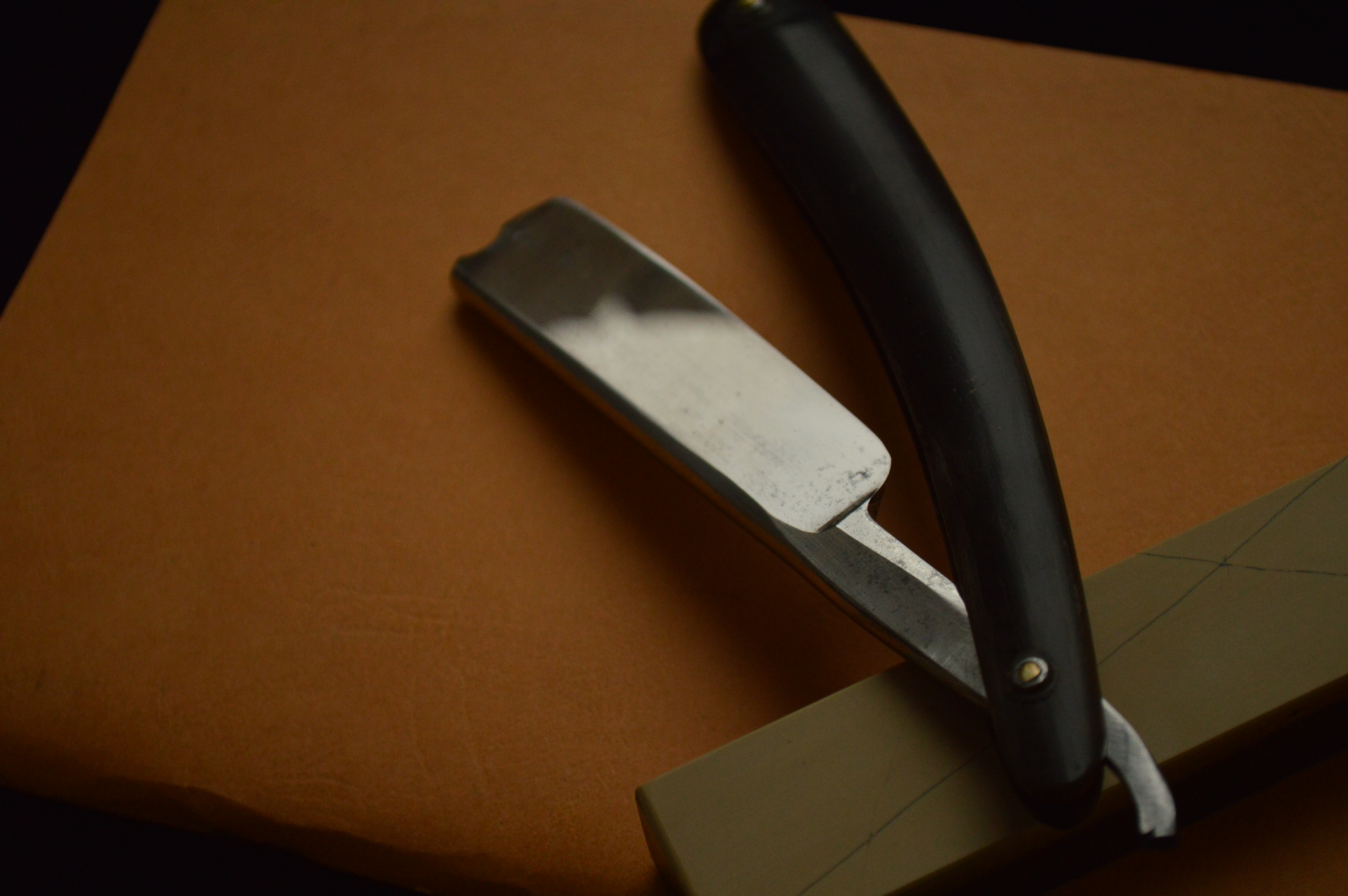 Для 150-летней бритвы в строении клин имеет замечательную геометрию, что можете видеть по состоянию заточной фаски на фото.