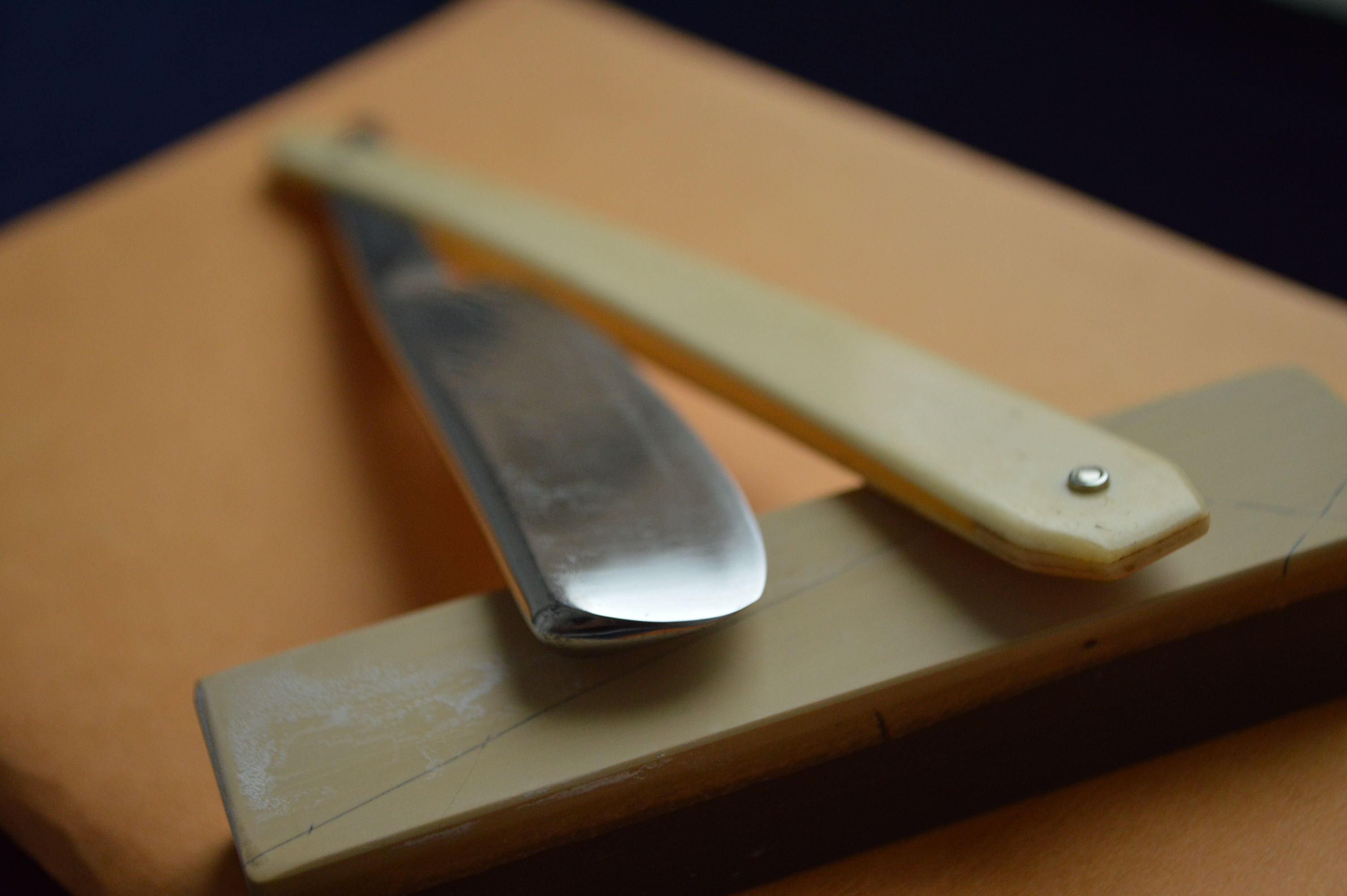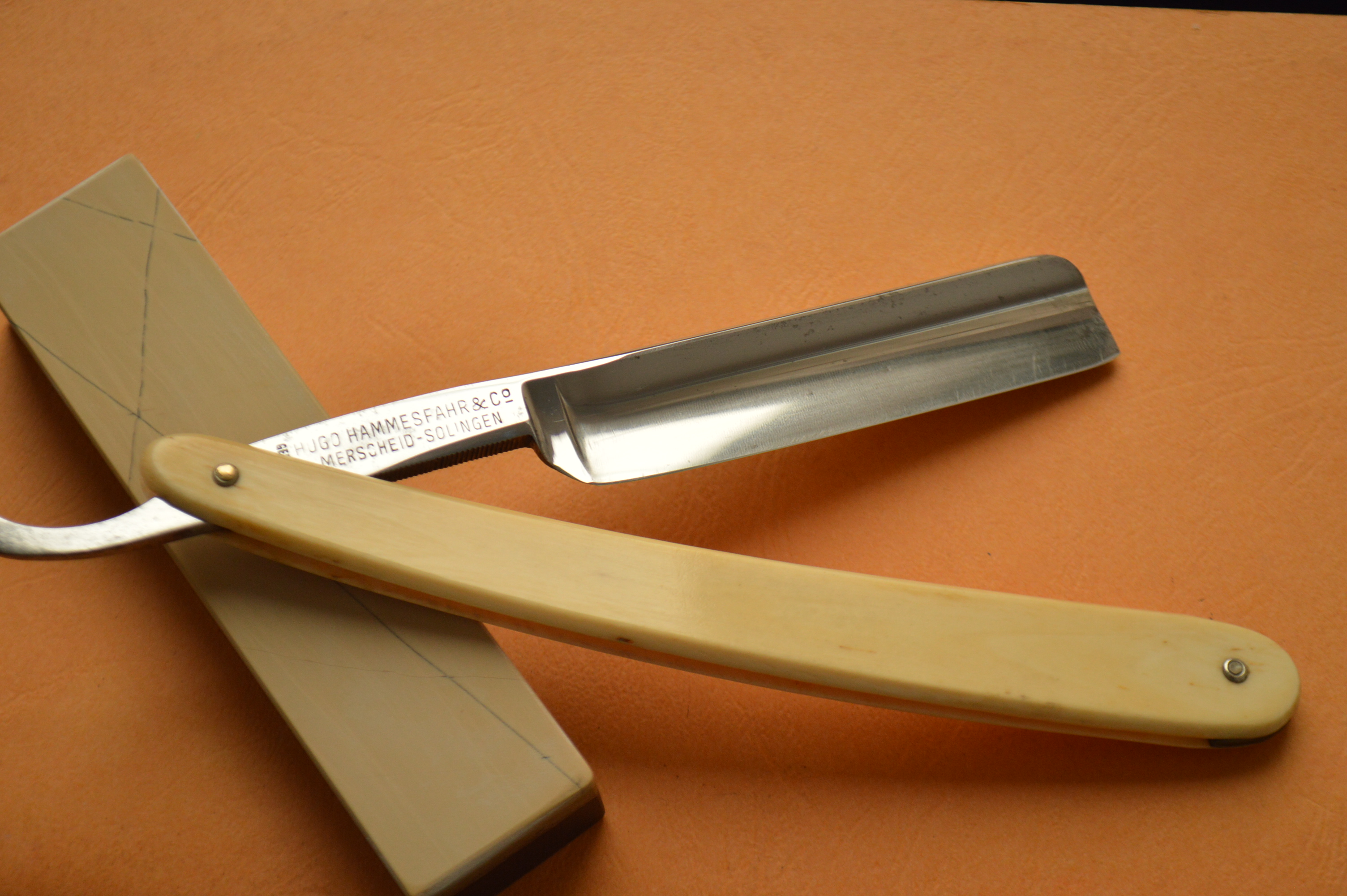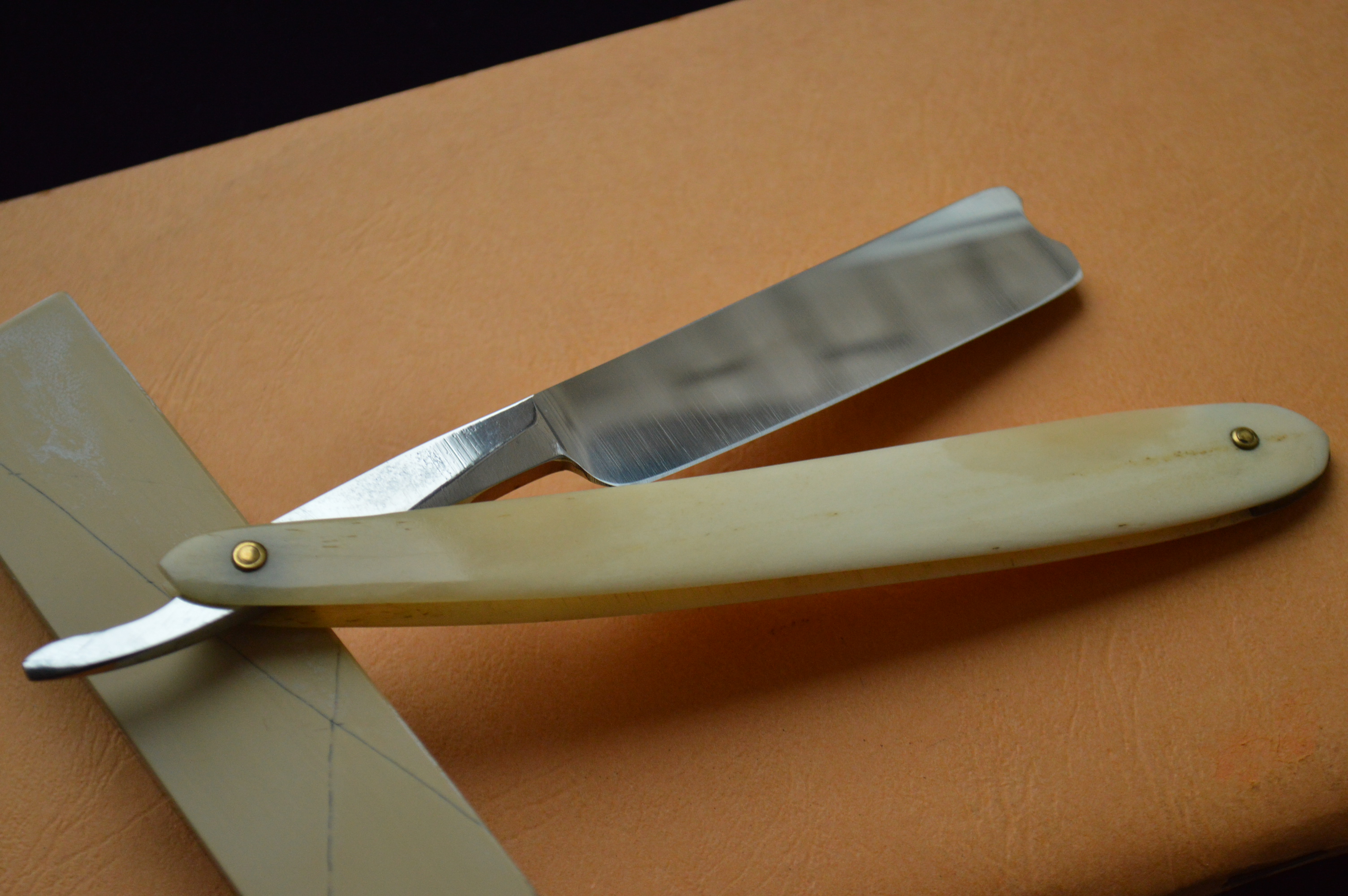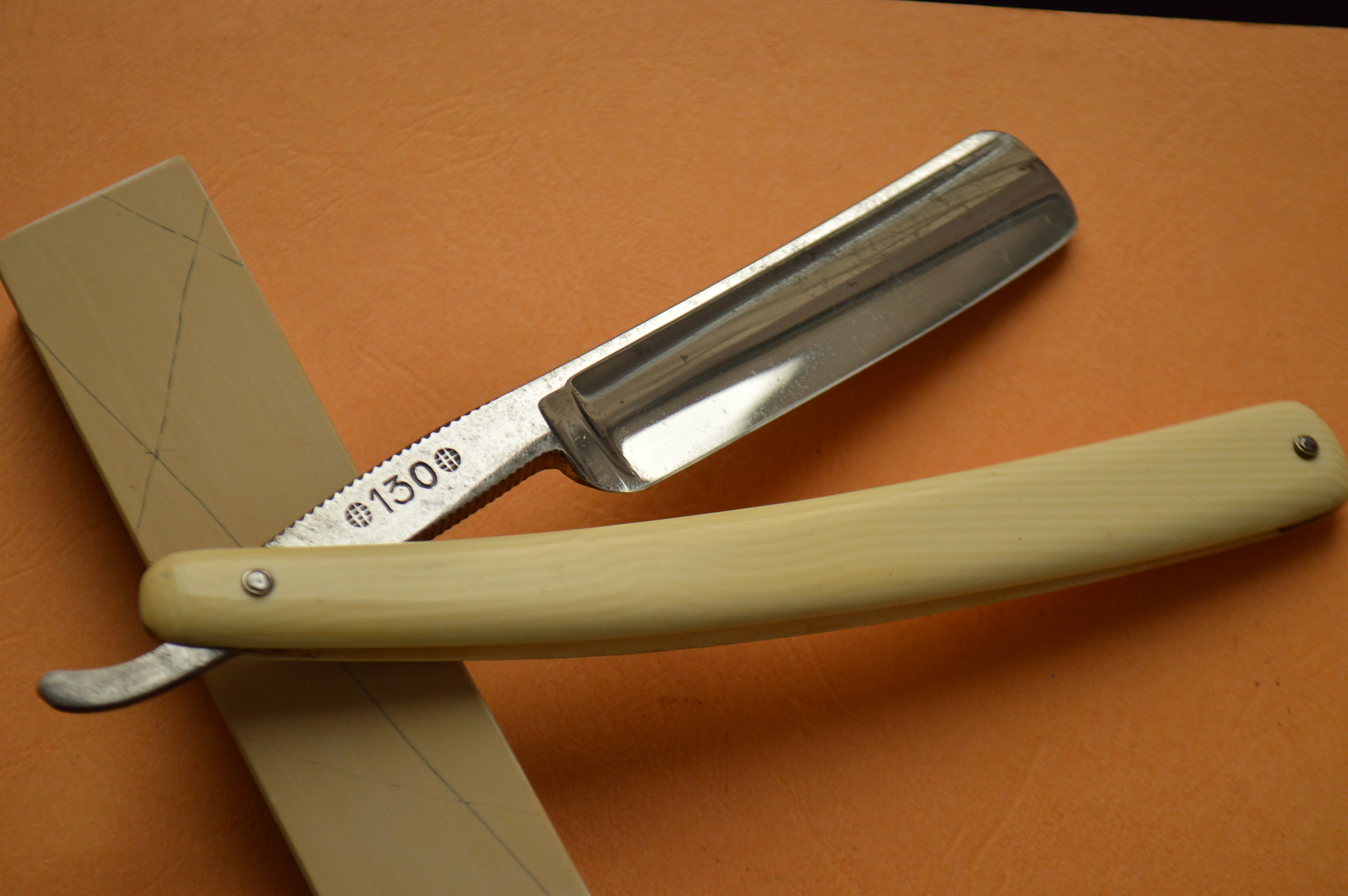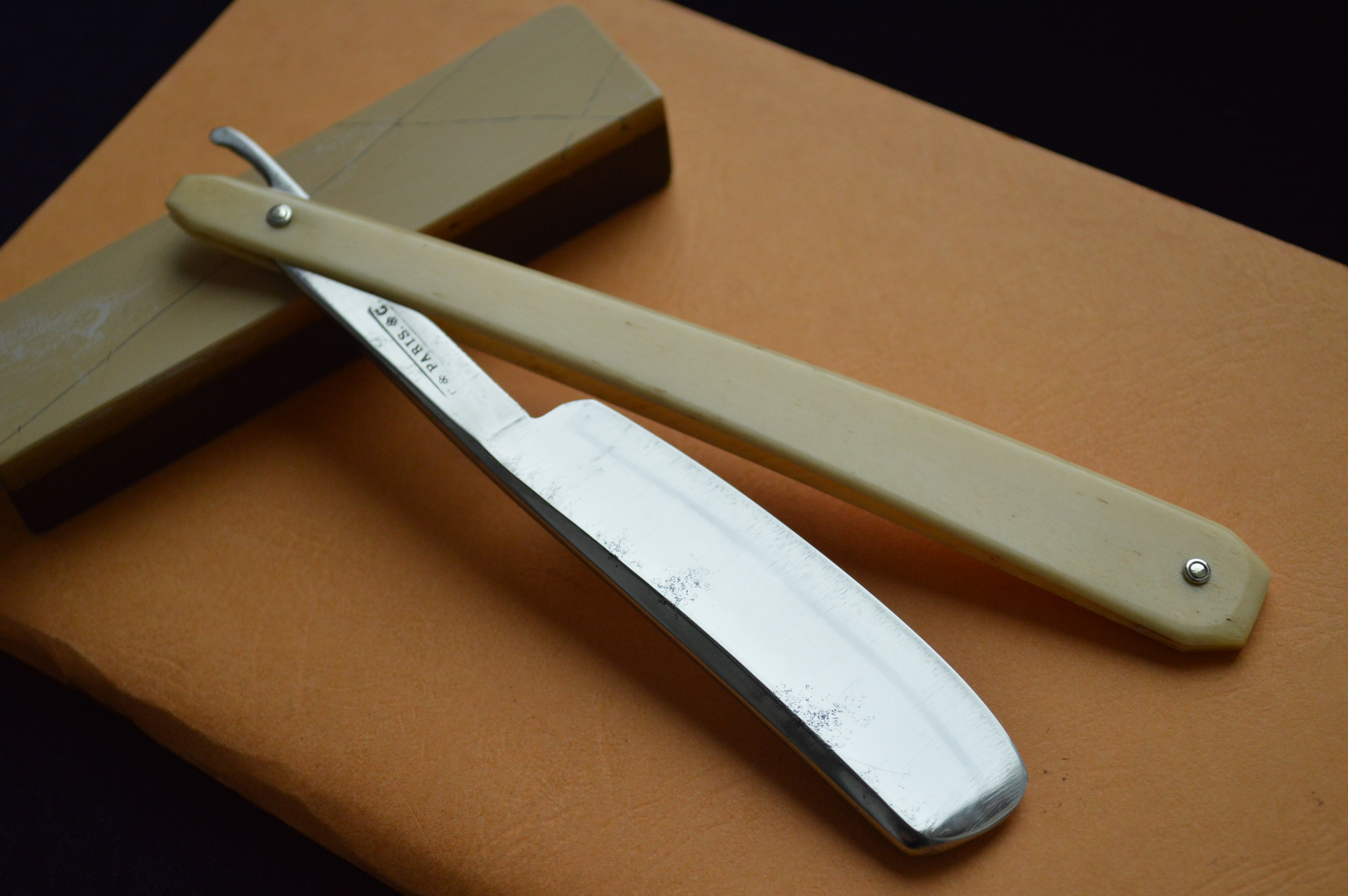 Бритва в строение клин. Ширина полотна – 7/8. Сама сталь в лучших традициях французских бритв: вязкая, мелко-зернистая, бритье превосходно мягкое и чистое. Ручка кость в замечательнейшем состоянии.