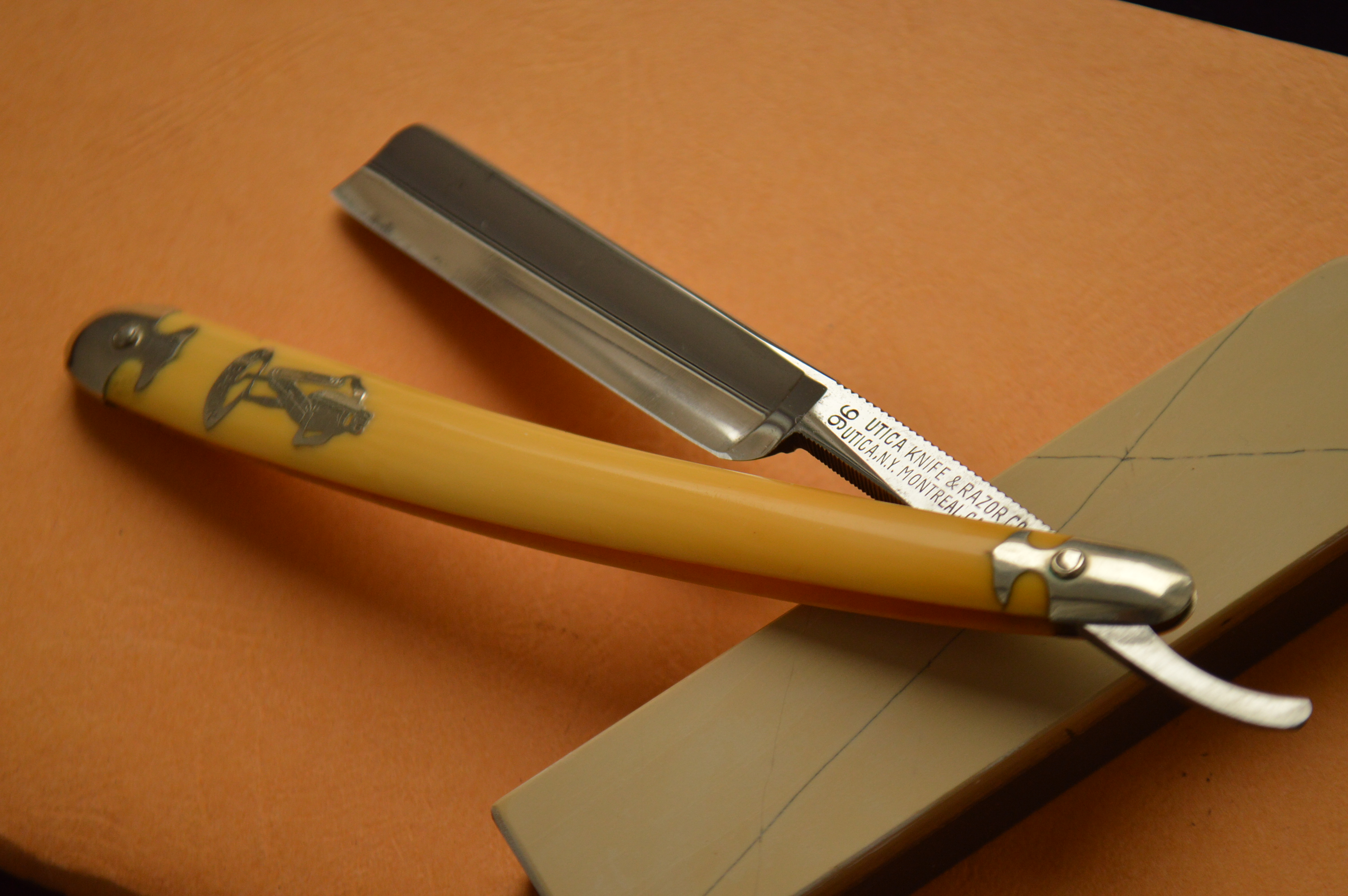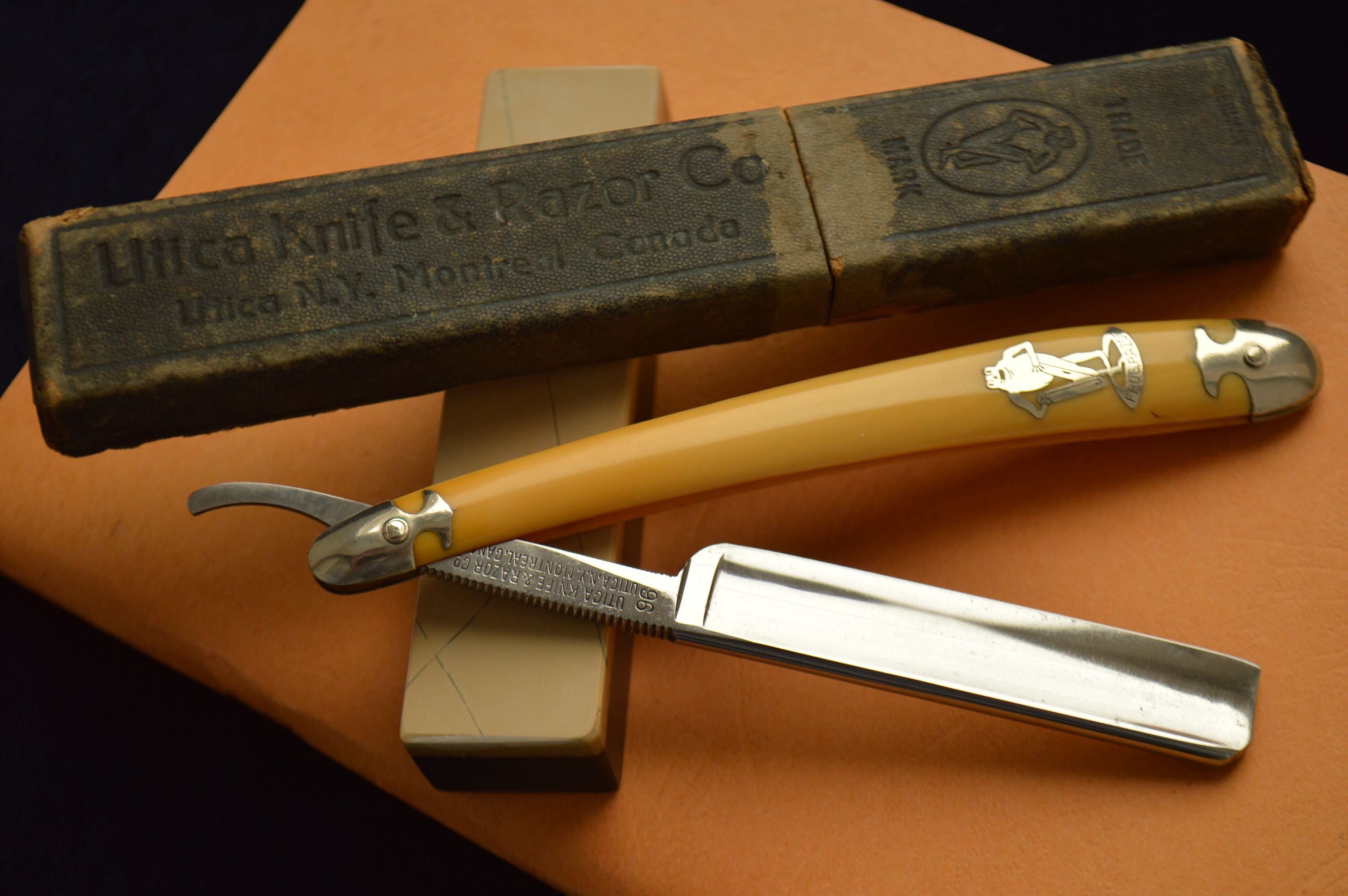Редчайшая немецкая винтажная бритва от американского импортера Utica Knife and Razor Co. для магазина в Монреале, Канада, торговая марка FROG (лягушка), 1924-1935 годы, располагались в Нью-Йорке на 209 John Street.