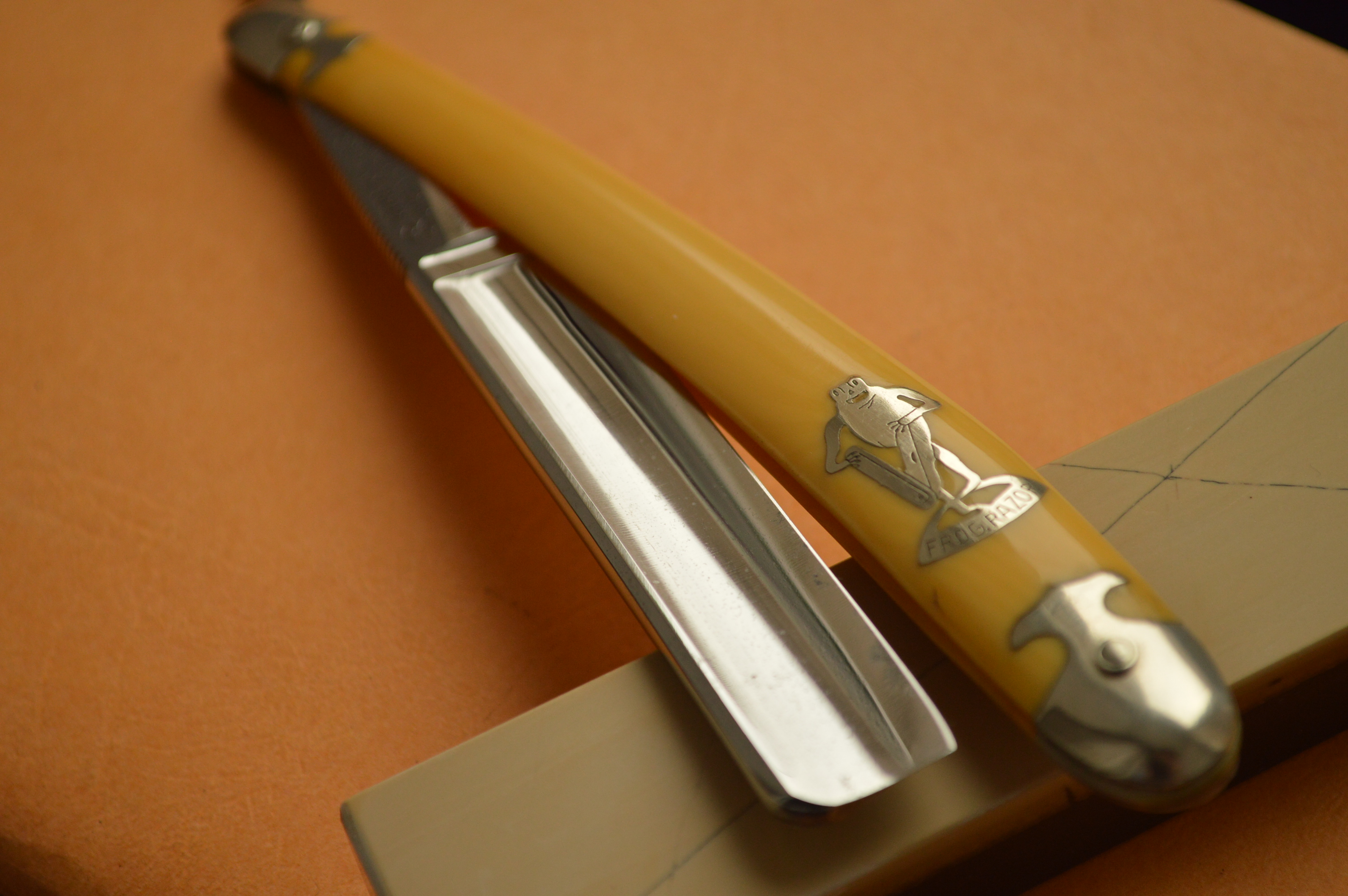 Сама сталь в лучших традициях французских бритв: вязкая, мелко-зернистая, при этом закалена на большие единицы, бритье превосходно мягкое и чистое.