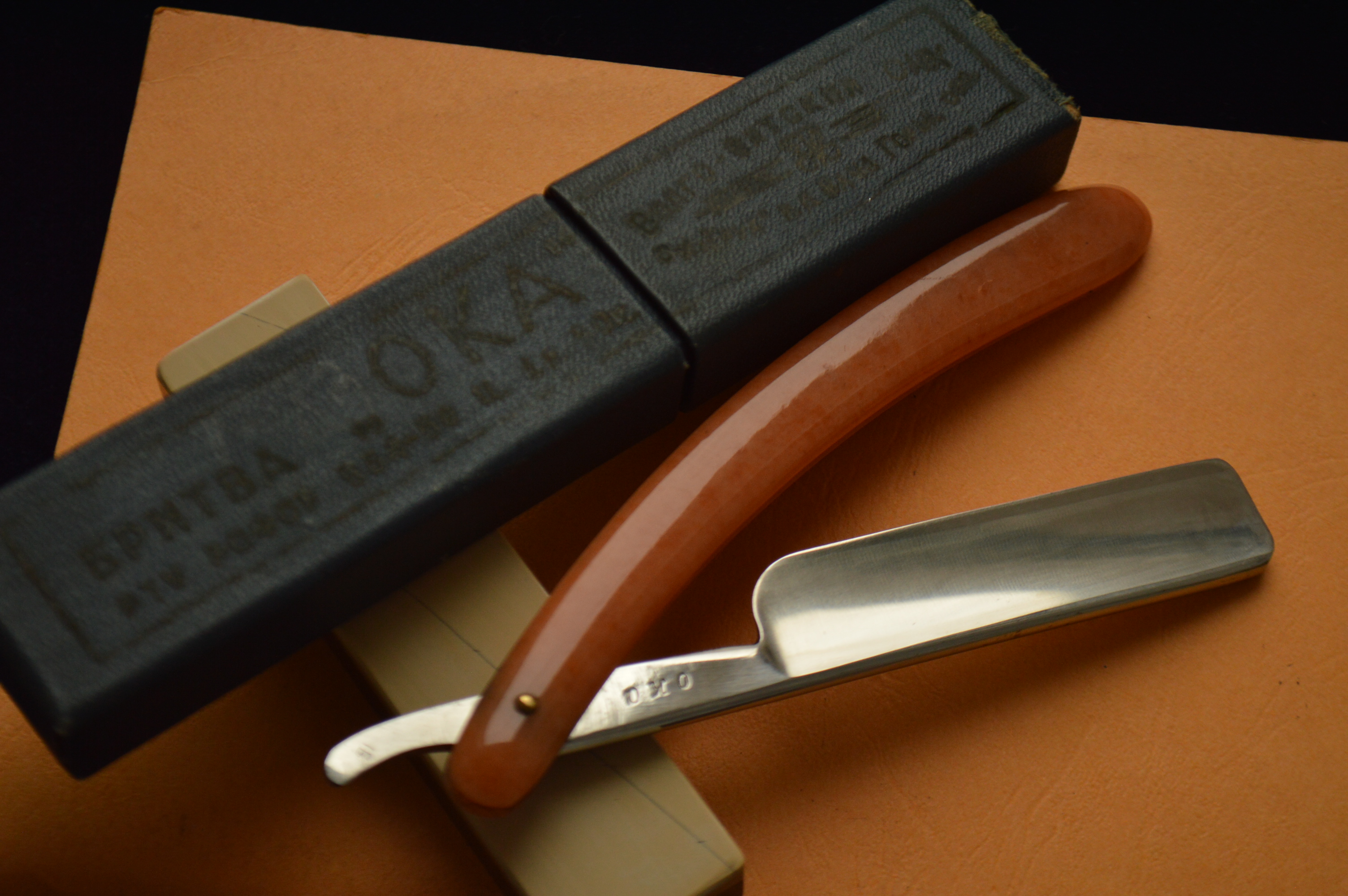 Бритва никем не перешлифовывалась, а просто легчайше почищена, повсеместно встречаются царапины, которые было бы кощунственно убирать.