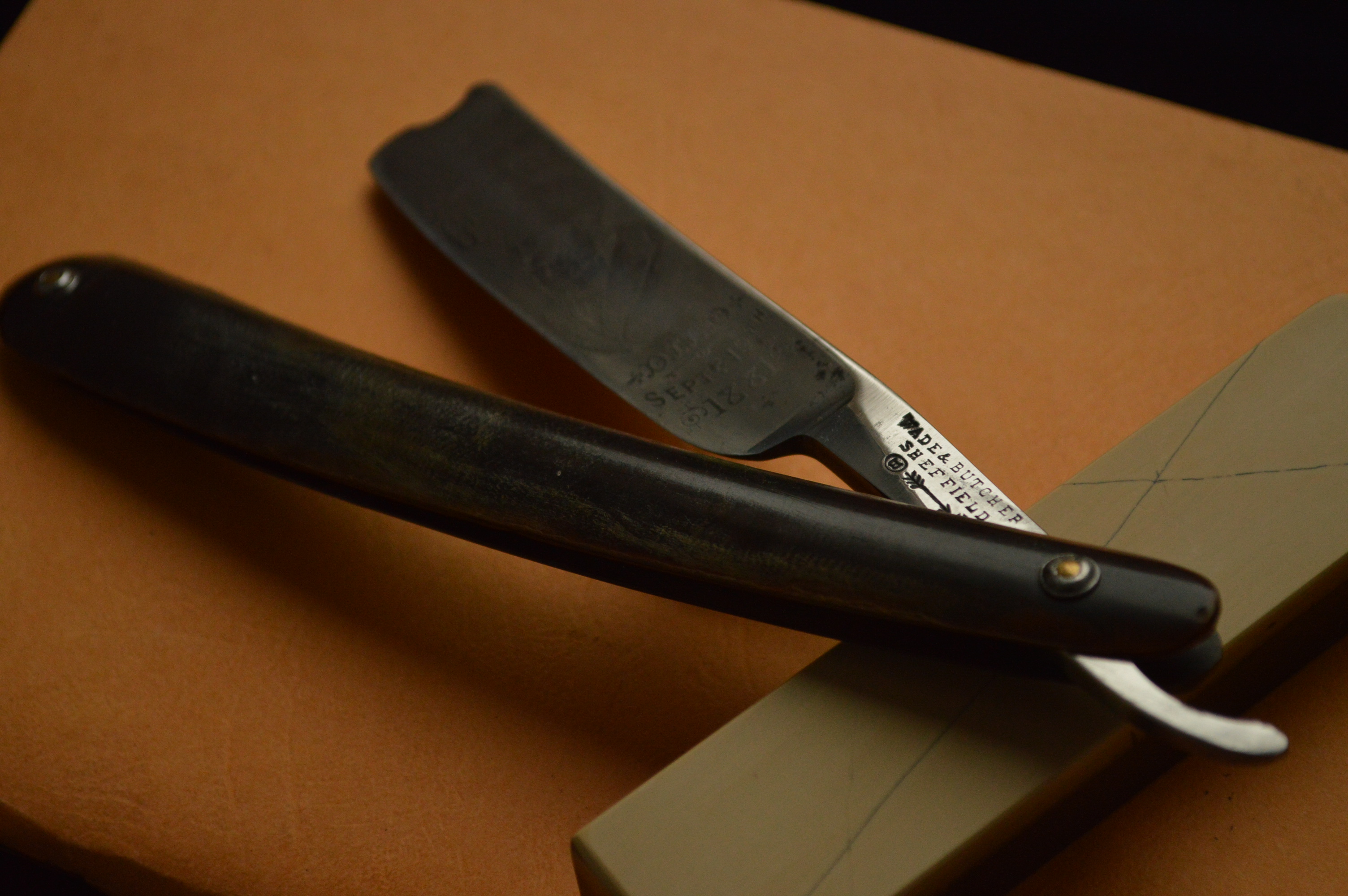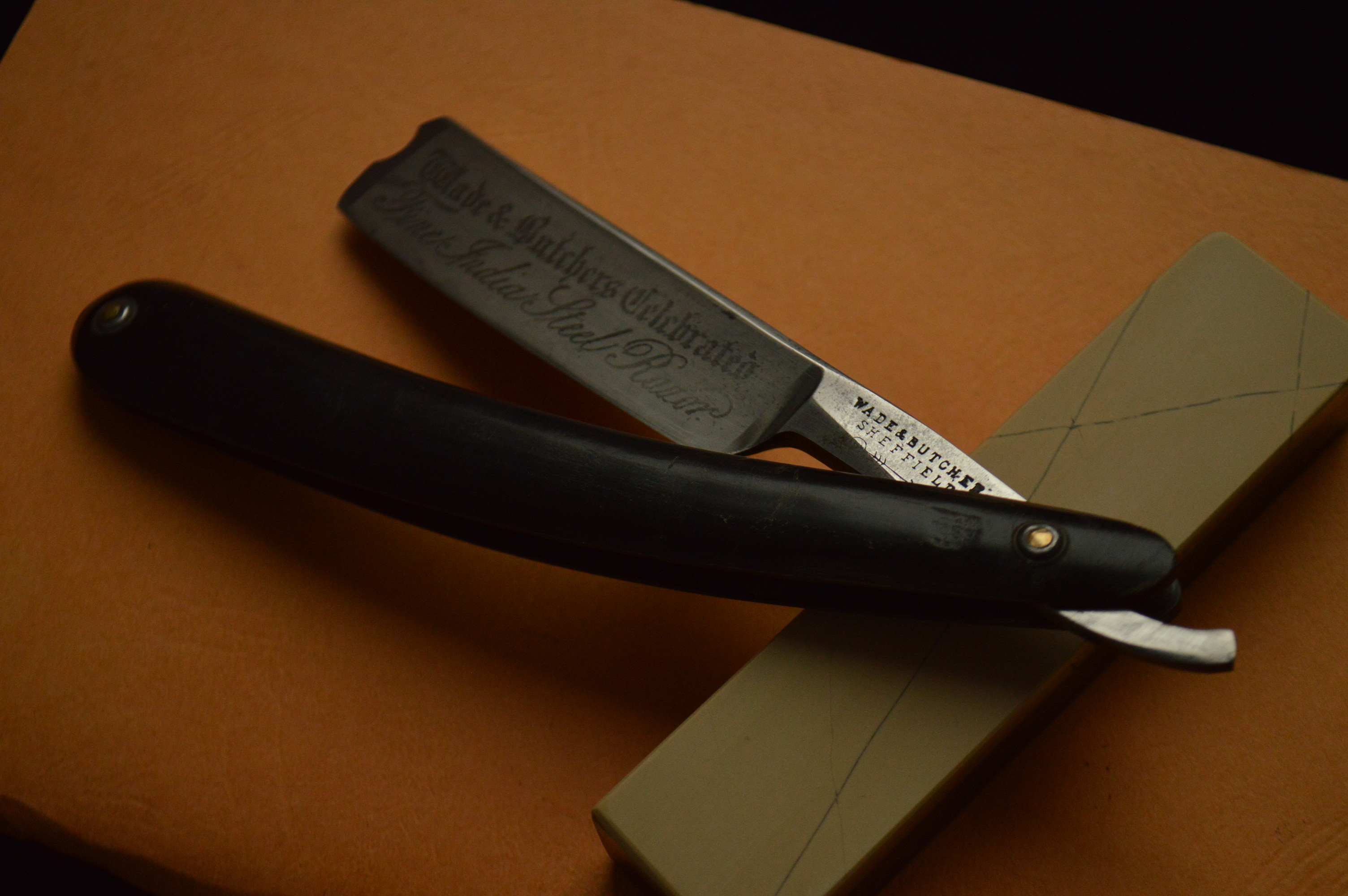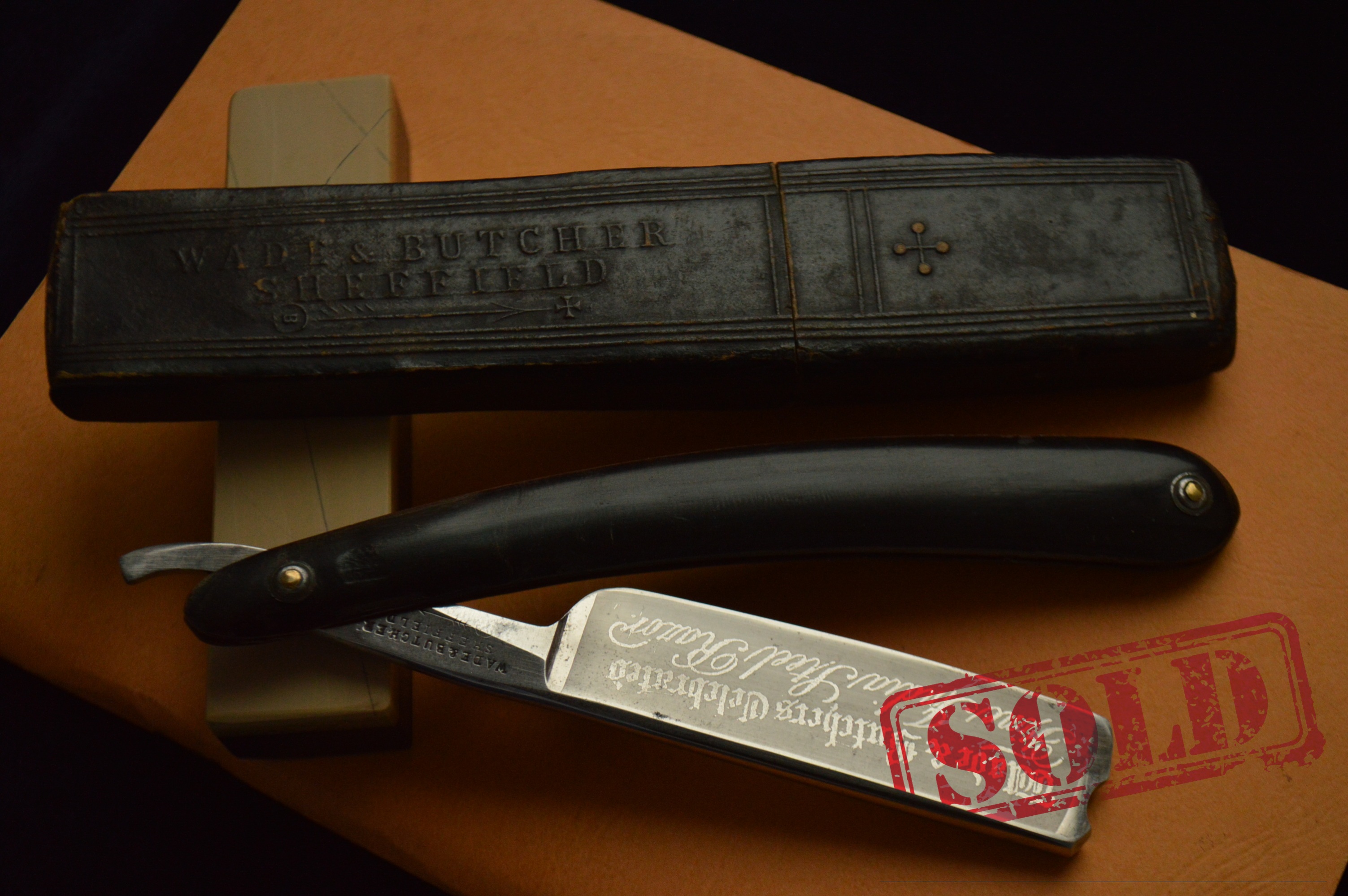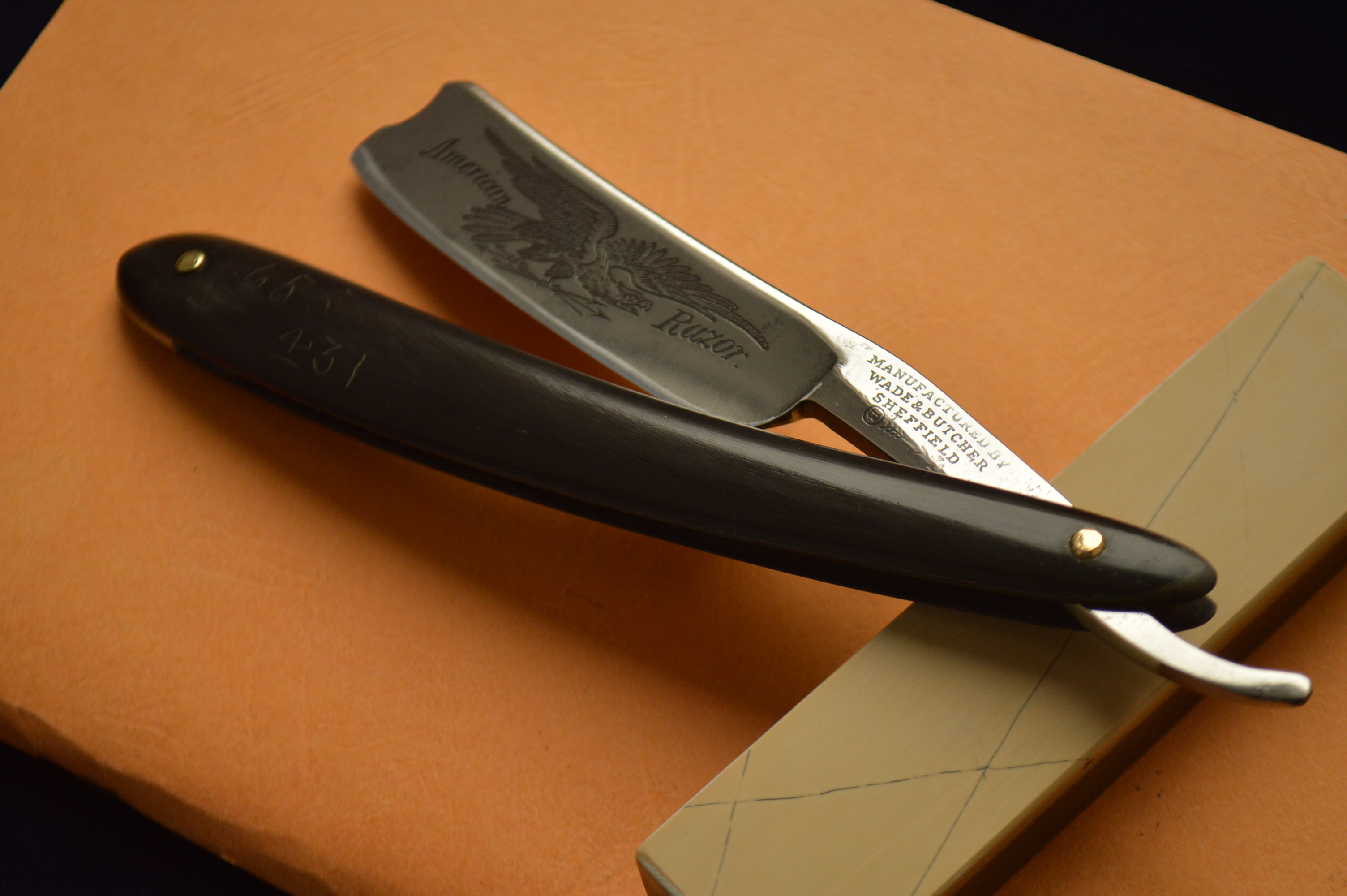 На полотне травление, гласящее о том, что бритва сделана из замечательной индийской стали от прославленного производителя Wade & Butcher.
