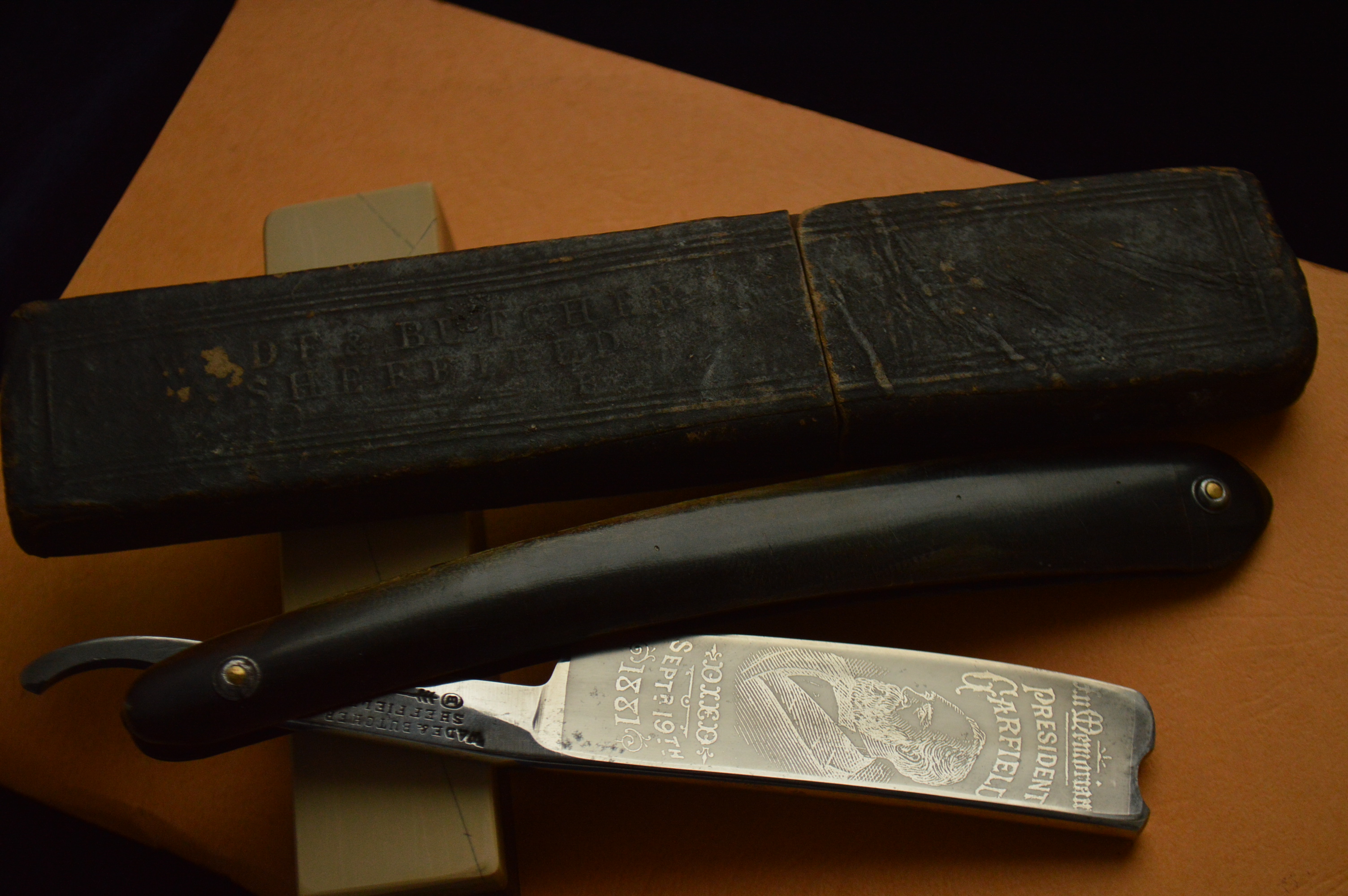 Сильная связь с Шеффилдом подтверждается тем, что на их бритве была нанесено клеймо Randall Hall & co, Sheffield.