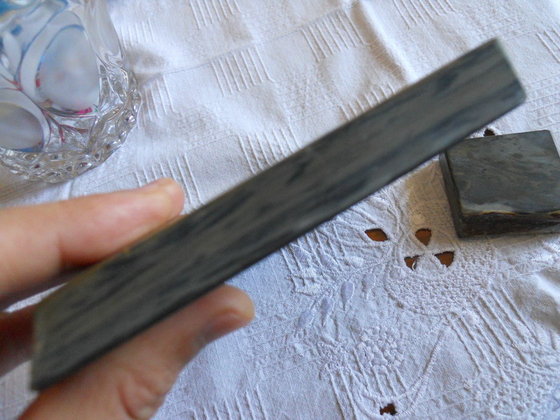 Итак накаяма карасу Размеры (по среднему значению) 150х105х14 Нагурка из него же 48х45х14 Натуральный японец Черный вкрапления по твердости вроде такие же как не черные, но суспензию дают чуть активнее. Твердость 4 из 5 Продавать жалко, но хочется попробовать что то еще а просто так замораживать десятки камней по много сотен долларов буджет семьи не позволяет. ЦЕну забыл объявить