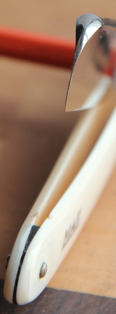 Ширина полотна-20-17 мм Толщина обушка-5.5 мм Бритва пришла в совершенно не пользованном состоянии: ничего не снималось, не ремонтировалось. всё родное. Немного освежил металл и усё.Оправа-натуральный рог, сталь-углеродка-без каких либо дефектов. Бритва заточена впервые и готова к бритью. Сталь достаточно мягкая, что придаёт комфорт и мягкость при бритье. Цена -ПРОДАНА160$ с доставкой. Spoiler Show