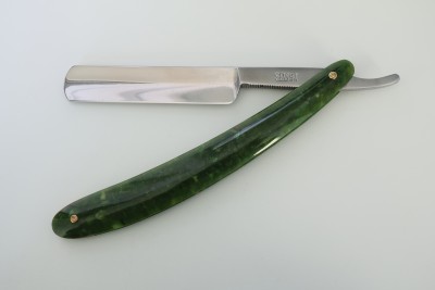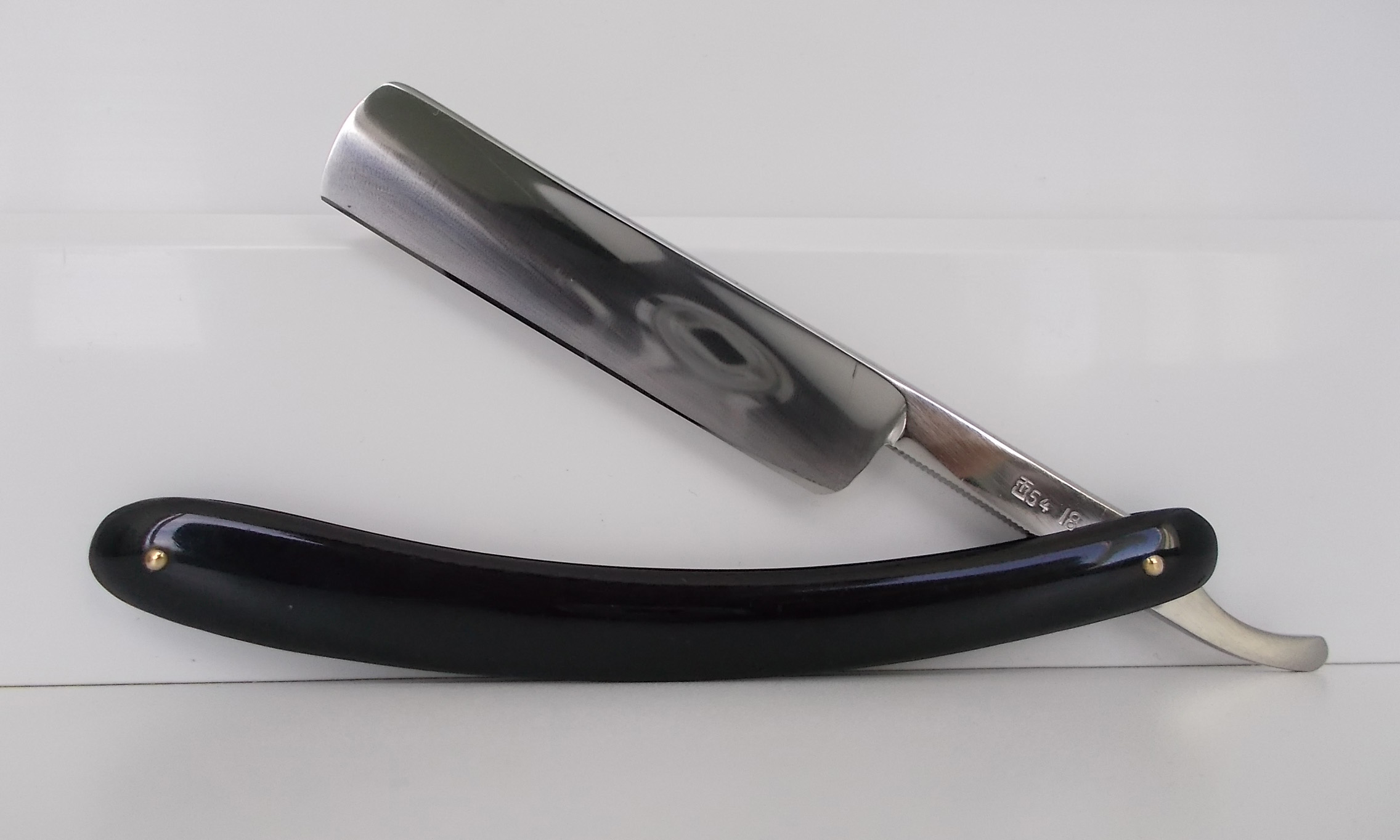 Продам опасную бритву Erik Anton Berg, город Eskilstuna, Sweden. Бритва после ремонта и реставрации, в очень хорошем сохране. Бритва разбиралась, прошла очистку, полировку, собрана с оригинальными заклепками. После сборки клинок в оправе сидит плотно, по-центру, не болтается. Лезвие без дефектов и ржавчины. Ширина полотна - заводские 9/16 (14,3 мм). Полная вогнутость, тончайшее сведение, кромка узкая и равномерная по всей длине. Бритва заточена и готова к использованию. Отправляю почтой, пересыл оплачивается отдельно, по России от 100 до 200 руб. Цена - ПРОДАНО Еще фото Spoiler Show