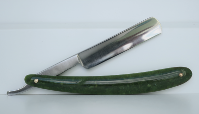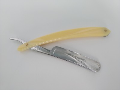 Продам опасную бритву СТИЗ, 1968 год. Бритва попала ко мне в разобранном состоянии, отдельно клинок, отдельно оправа. Все что я с ней делал - это собрал с использованием оригинальных Стизовских заклепок. Клинок не реставрировался, не чистился, имеет заводской сатин. Прошел лишь легкую полировку. Бритва не имеет следов использования, заточена мной впервые, готова к бритью. Отличная геометрия, фаска тонкая и равномерная по всей длине полотна. Отличный и недорогой вариант для новичка. Отправляю почтой, пересыл оплачивается отдельно, по России 150 руб. за заказное письмо. Цена - ПРОДАНО Еще фото Spoiler Show