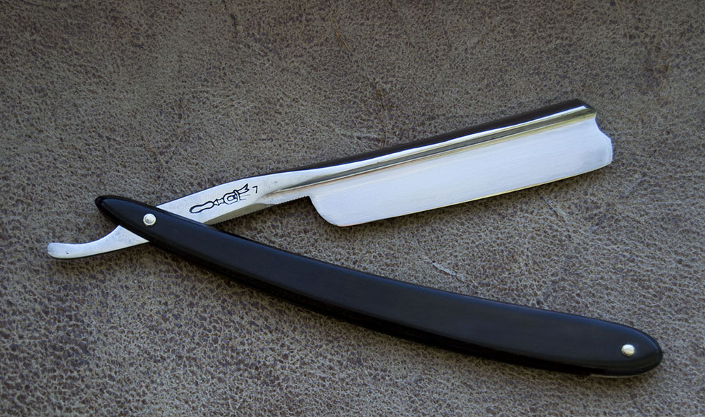 Отличный французский фреймбэк. Ширина немного не дотянула до 6/8, в самом широком месте 18.5 мм. Родная роговая рукоять, с костяным клинышком, бритва заточена и готова к бритью. Продано. Spoiler Show