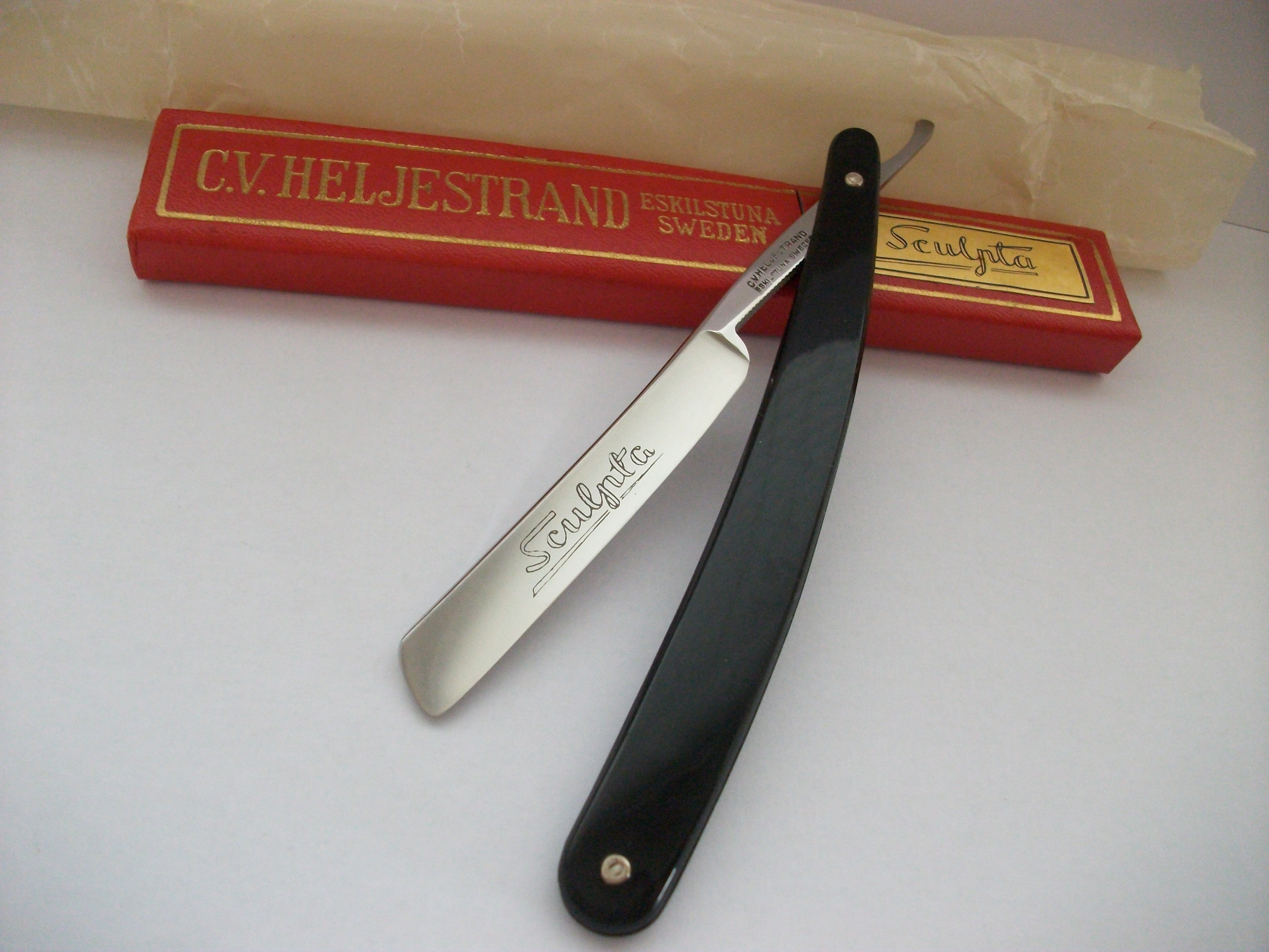 C.V.Heljestrand Абсолютное новье, лично снял пломбу при открытии коробочки. Узкая бритва из углеродистой стали, ширина полотна 11мм, ручка пластик. По желанию может быть заточена - включено в стоимость. Продано. Spoiler Show