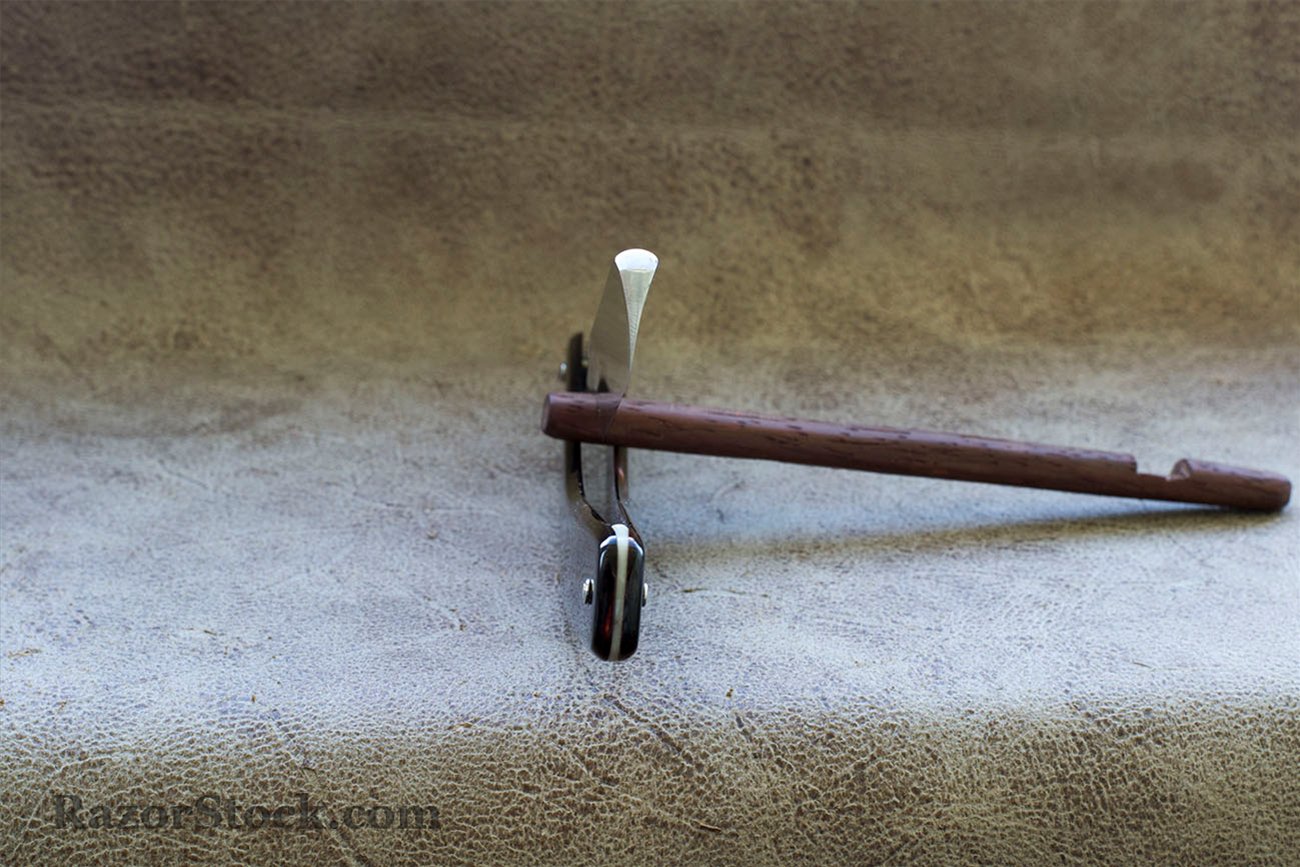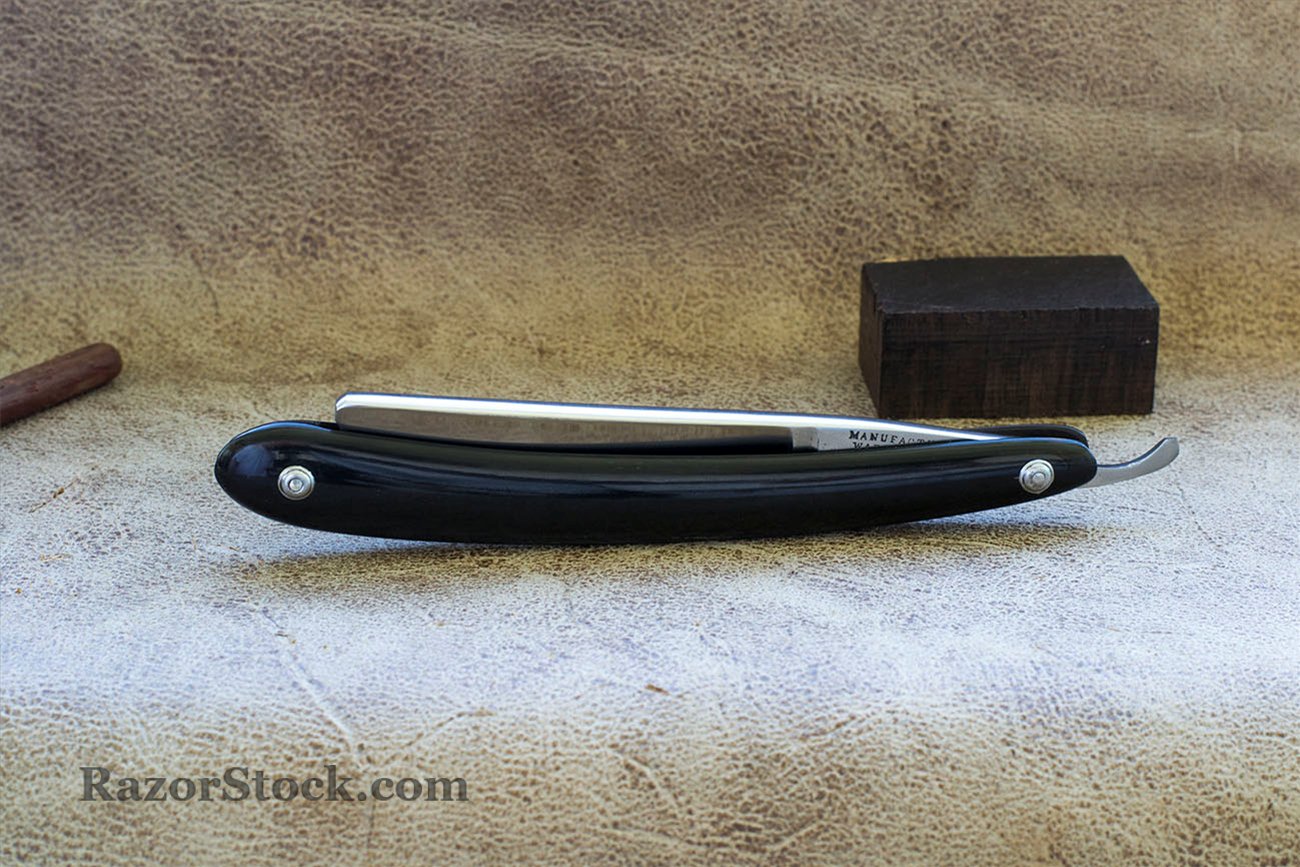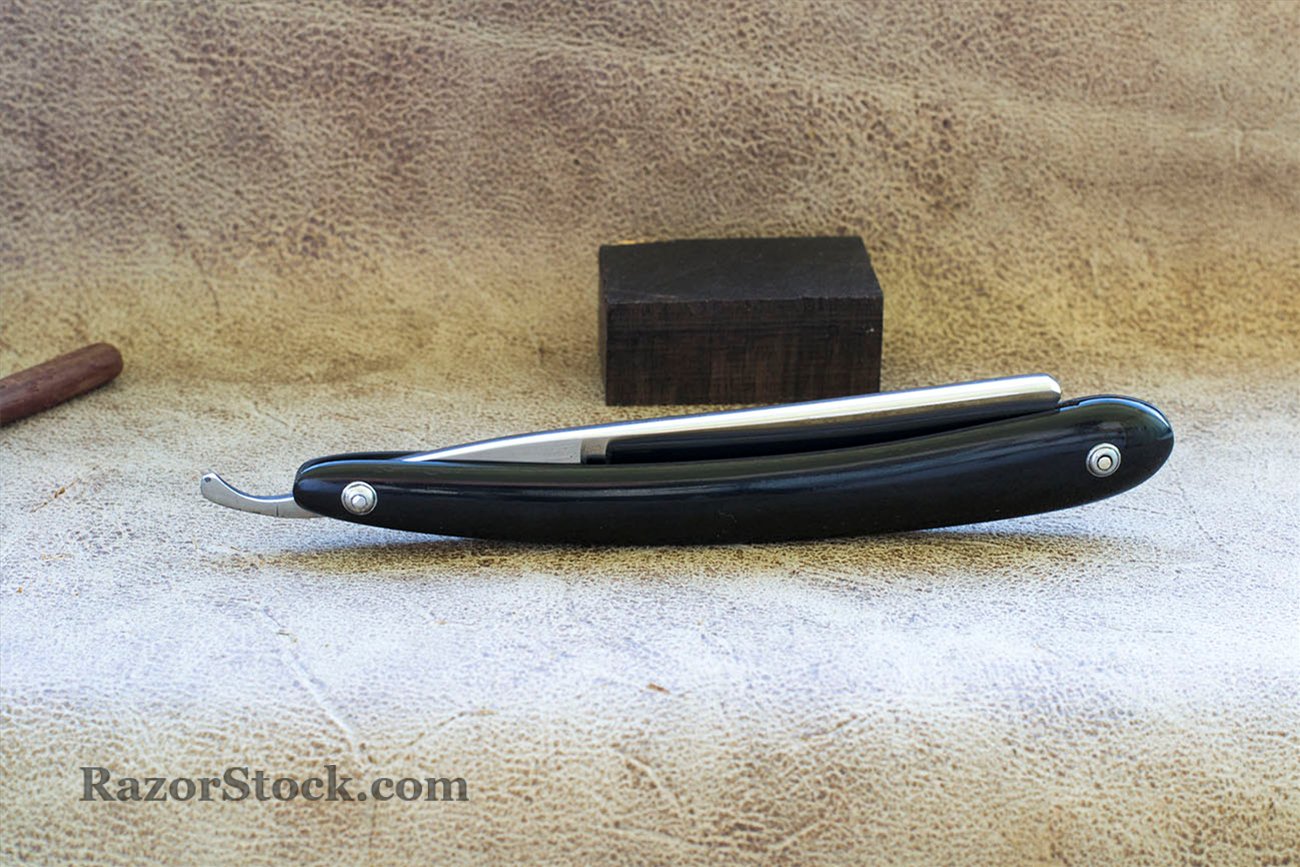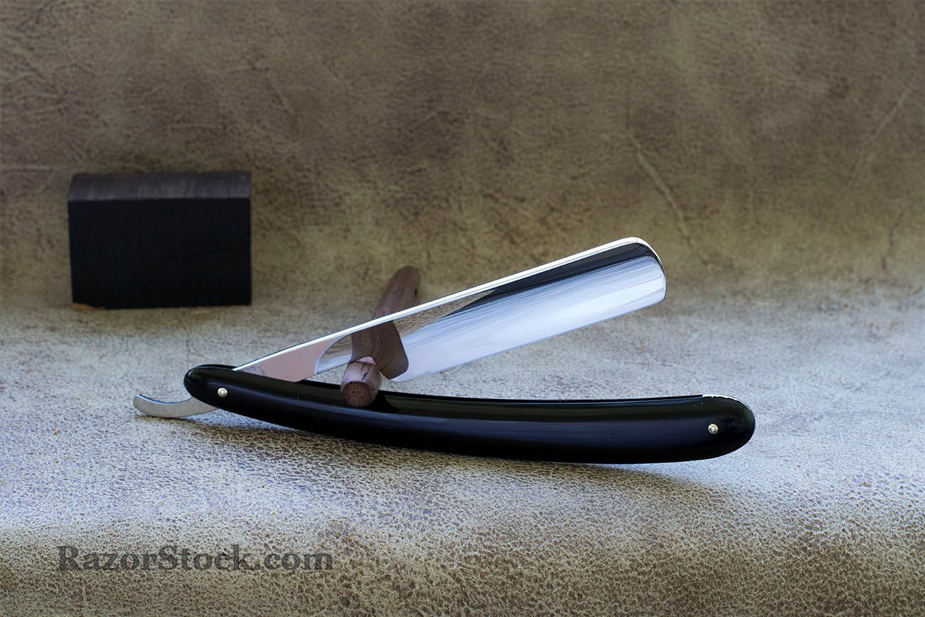 Бритва находится в прекрасном состоянии, мощный, тяжелый английский холлоу граунд в лучших своих традициях. Вогнутость полная, ширина 21 мм, (13/16) спинка 6мм. Бритва либо совсем не была в использовании, либо точилась очень мало и аккуратно, я не заметил никаких изменений геометрии вызванных заточкой. Заточена и готова к бритью, прекрасно проходит тест на рез волоса. Старая роговая рукоять была заменена на новую из рога буйвола. Бритвы от Джорджа Джонсона можно отнести к числу редких бритв из Англии. Фирма просуществовала с 1815 года и приблизительно до 1905 года, причем последние годы торговой маркой владел Артур Ламберт а не представители семьи Джонсон. Период времени когда фирма производила бритвы был намного короче периода ее существования, поэтому можно наблюдать следующую картину - встречаются либо очень старые в плохом состоянии бритвы от Джордж Джонсон, либо нечто сточенное или малопригодное для использования. Продано Johnson Show