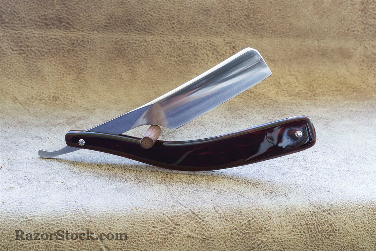 Немецкая опасная бритва из города Золинген (Solingen). Бритва произведена в 20-40 годах 20 века . Вогнутость 3/4, ширина полотна 15 мм. (5/8), спинка 4 мм. Имеет родную рукоять из целлулоида, никогда не была в использовании, поступила ко мне с заводской заточкой, была переточена и подготовлена к бритью. С бритвой решил ничего не делать, оставил на полотне некоторые следы времени, родные пины без шайб менять не стал, так как эрл бритвы чистый. Отполировал полотно и рукоять вручную и заточил. Готова к бритью. Рекомендую новичкам в качестве первой бритвы, так же годится для окантовки бороды. Продано. Spoiler Show