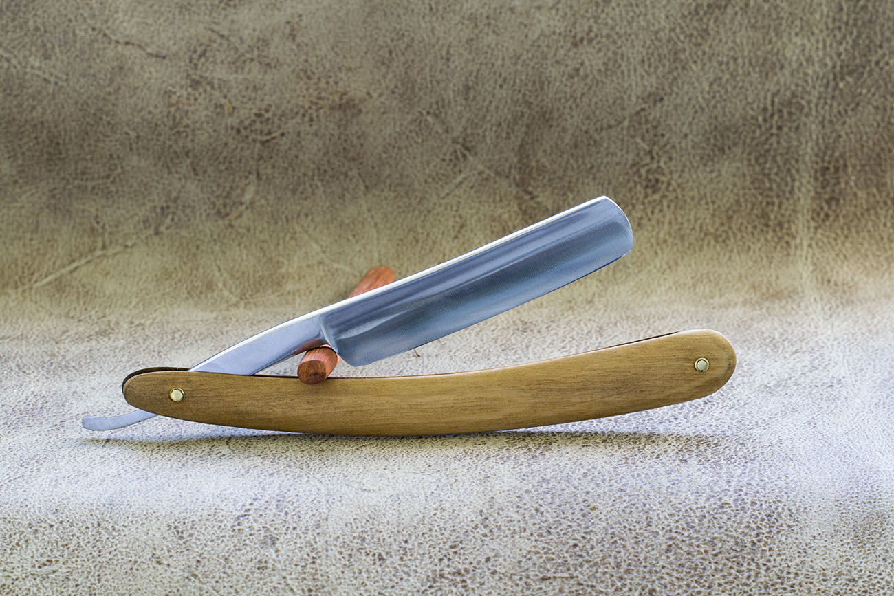 Опасная бритва марки Ability. Сделана из углеродистой стали, скорее всего из шведской. Отличная геометрия полотна, кромка равномерна и практически не видна, бритва имеет небольшие следы времени, никак не влияющие на потребительские качества. Произвела отличное впечатление при заточке, правке и тесте на рез волоса, сталь довольно твердая, значит будет дольше держать заточку. Бритва заточена и полностью готова к бритью. Хорошо подойдет для новичка. Бритва массивная, поэтому не рекомендую для окантовки бороды, зато отлично подойдет для бритья. Ширина полотна 21 мм., спинка 6.6 мм. вогнутость 3/4. Продано 2000 Show