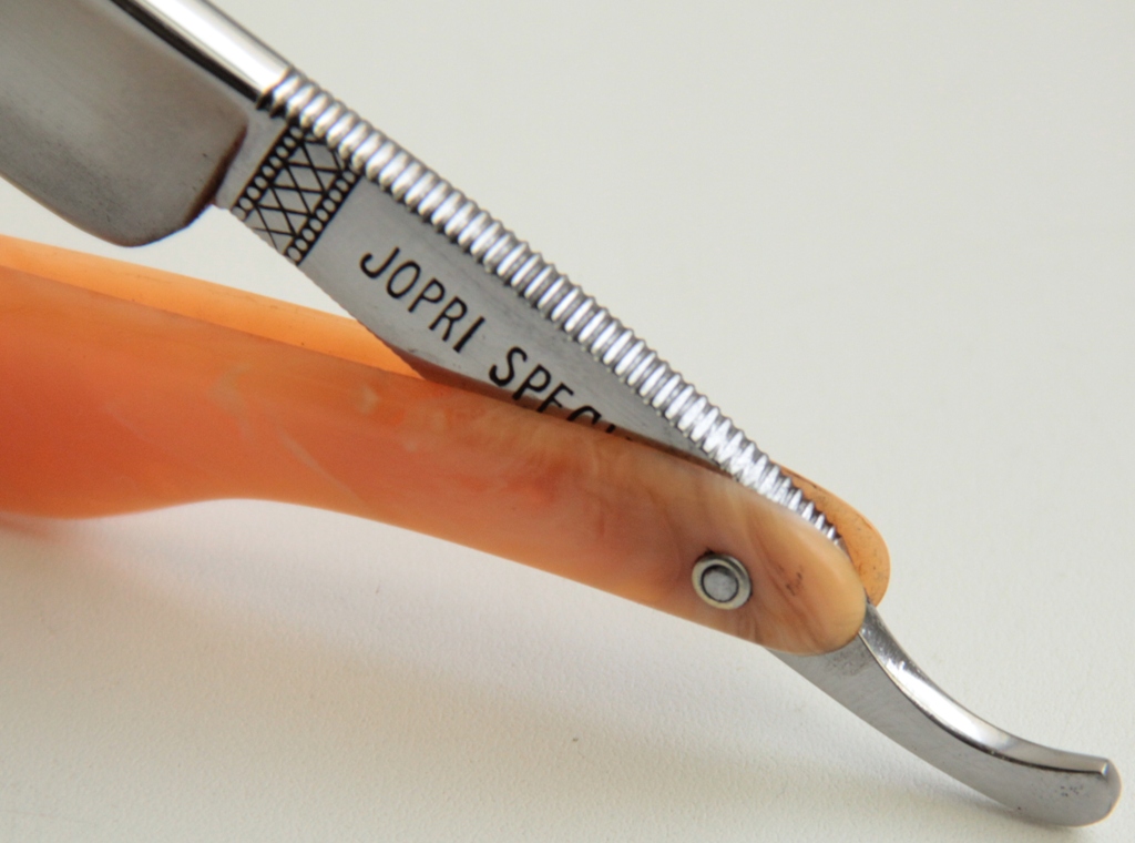 Ширина полотна-20.5 мм Толщина обушка-5.2 мм Полная вогнутость. Углеродистая сталь. Середина 20-го века. Бритва в очень хорошем состоянии,с минимальными следами использования.Не разбиралась. Только немного почистил полотно от древней патины. Сталь и кромка чистые, без проблем.Красивая, трех-пиновая пластиковая оправа.Заточена и готова к бритью.Будет неплохим вариантом для новичка. Цена-4800 р с доставкой.ПРОДАН Spoiler Show