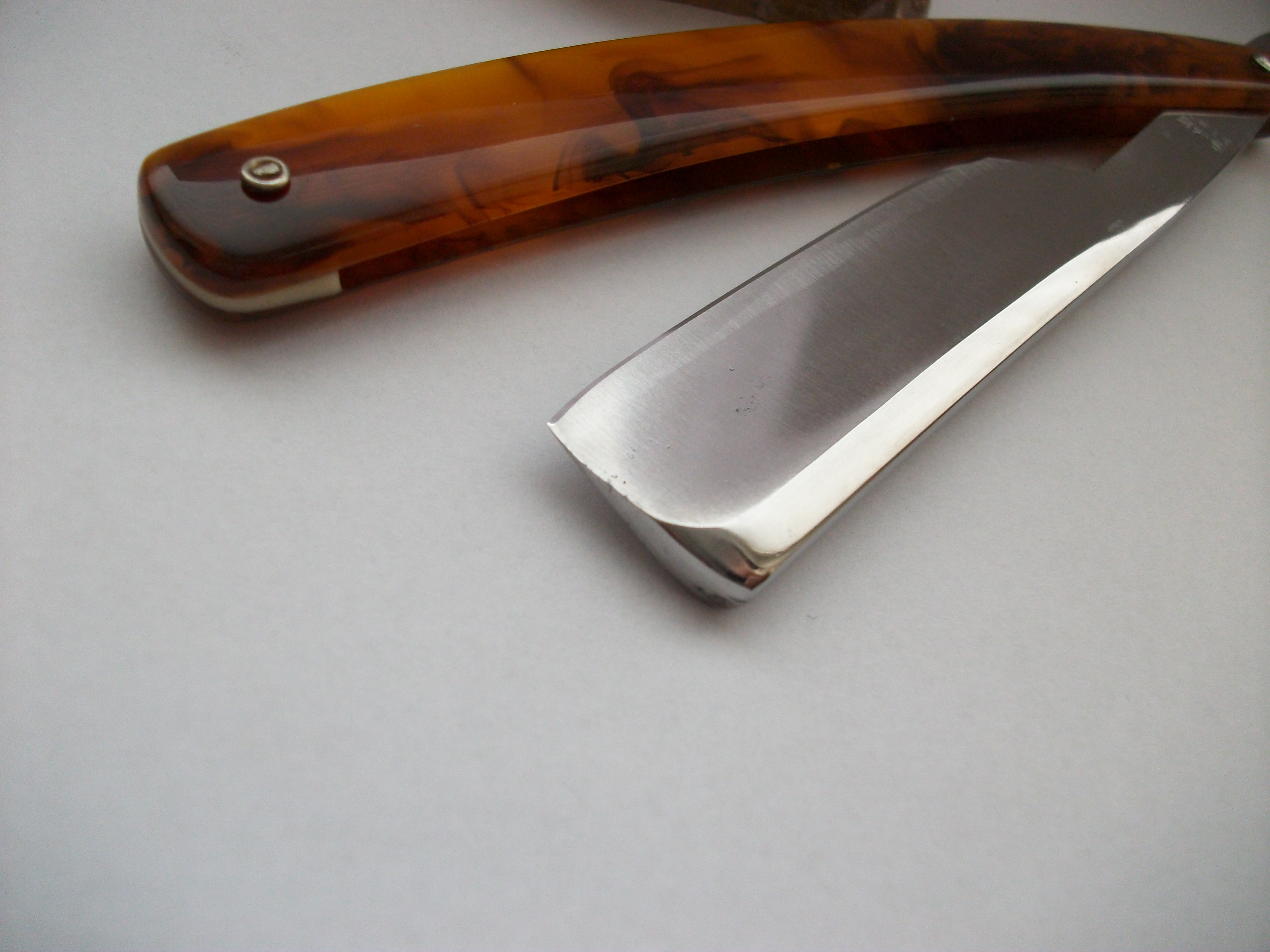 Ширина полотна 20мм, длина режущей кромки 70мм, нержавеющая сталь Frozen-steel (так полагаю закалка с применением отрицательных температур. Ручка классическая Пумовская, 3 пина, непонятные номера у осевого пина. Заточена и готова к бритью. Продано. Spoiler Show