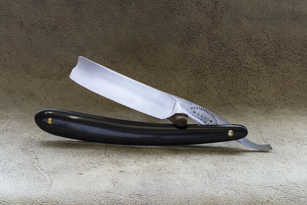 Английский клин середины 19 века от Джозефа Востенхольма, марки Ebro. Бритва имеет прекрасную геометрию, крайне интересную и очень удобную форму. В отличие от однофамильца Джорджа Востенхольма, масштабы производства Джозефа были намного скромнее, бритвы EBRO в хорошей сохранности встречаются крайне редко, поэтому, на мой взгляд, представляют большую коллекционную ценность. Так же очень интересен и самобытен дизайн большинства бритв EBRO. Этот экземпляр имеет хорошо выполненную насечку, глубокую и ровную, в сочетании с широким эрлем это дает очень уверенное удержание и контроль при бритье. Кроме того бритва имеет прямоугольную спинку, в отличие от большинства бритв того времени, имеющих округлый или граненый обух. Бритва получила новую роговую рукоять, ширина полотна 18.2 мм (6/8) Заточена и готова к бритью. Продано Ebro Show
