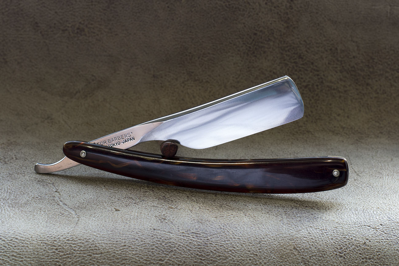 Японская бритва, любимого мной форм – фактора, собравшего в себе все лучшие качества европейской бритвы и традиционной японской камисори. Бритва как и все европейки имеет рукоять, что на мой взгляд сильно упрощает бритье, давая баланс бритве, а так же как и все европейские бритвы не имеет разницы по вогнутым спускам в отличие от камисори и точится просто и легко как и все европейки. От камисори бритва переняла укороченное полотно, что многие пользователи, в том числе и я, находят очень удобным. Вогнутость бритвы – ½, ширина 7/8 (22 мм.) Несмотря на длину полотна – бритва массивная. Геометрия полотна идеальна – о лучшей и мечтать нельзя. Сталь, скорее всего, использована шведская – именно она считалась в Японии лучшей сталью для бритв. На эрле парикмахерская метка. Бритва никогда не была в использовании, сохранила заводскую упаковку, мной произведена только заточка. Очень рекомендую данную бритву, стоковые японские бритвы хорошего качества становятся редкостью. Продано Elizabeth Show