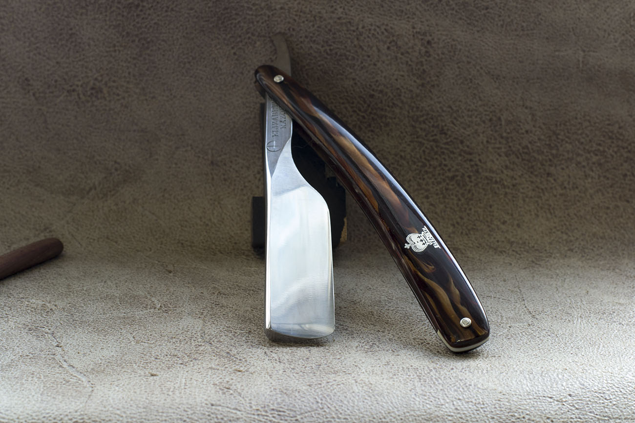 Опасная бритва Lindner & Co. , Англия. Судя по изначальному состоянию оправы бритвы, ее форме и клейму Best Refined Steel, бритву можно отнести к 20-40 годам 19 века. Ширина полотна 21 мм (13/16 дюйма), клин. Бритва получила новую роговую оправу, была отреставрирована мной и подготовлена к бритью. Хорошая геометрия полотна, сатин. К сожалению Standart Guide to Razors не содержит сведений о данном производителе, так же о нем молчит интернет, не удалось найти никаких данных, содержащих локацию и годы работы фабрики. Скорее всего производство базировалось в Шеффиилде, но есть предположения что позднее фирма начала производить огнестрельное оружие в Манчестере. Тем не менее бритва безусловно качественная, подойдет как для новичка, так и для пополнения коллекции. Refined Show : Рафинированная сталь только номинально относится к дамаскам, так как кузнечной сварке подвергается один-единственный однородный блок стали. Цель процесса была не вывести какой-либо узор, а добиться выгорания вредных примесей (фосфор, сера, шлак) и равномерного распределения углерода в заготовке. Принципиально каждая качественная сталь до XVIII века являлась рафинированной, так как кричное железо в чистом виде не является пригодным для перлита, образовавшемся во время закалки. Композитные клинки японских мечей также не имеют с дамаском ничего общего. Lindner Show