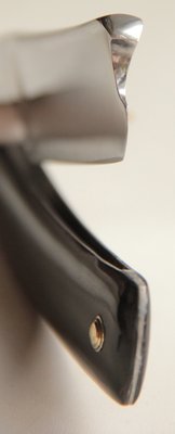 Бритва была разобрана и подвержена косметической чистке металла от древней патины. Изначально ржи никакой не было.Бритва была разобрана, и снова собрана, с сохранением родных пинов. Родная ручка из натурального рога находится в прекрасном состоянии.Идеальная геометрия для бритвы такого размера.По всей видимости бритвой пользовались мало. Единственный минус, который присутствует тут и влияет на конечную стоимость бритвы, этот наличие микротрещины , примерно в 1 см от пятки полотна.Трещина настолько незначительная, что практически не видна на фото. Бритва заточена и протестирована лично несколько раз. Никакого дискомфорта от этого дефекта не замечено:бритье, как обычно мягкое и комфортное.Но, так как я человек ответственный и для кого репутация дороже любых денег, я не могу предлагать бритву с таким дефектом за деньги рыночной стоимости, поэтому этот "Мясник" будет предлагаться с 60%-ым дисконтом, т.е практически даром!!Исходя из своего опыта бритва с такой микротрещинкой будет работать и служить долго столько, как и другая такая же бритва. Поэтому, если у вас есть желание попробовать настоящего монстра в деле, то не откажите себе в удовольствии опробовать это за минимальные деньги.Другой такой шанс, я так думаю, будет не скоро.
