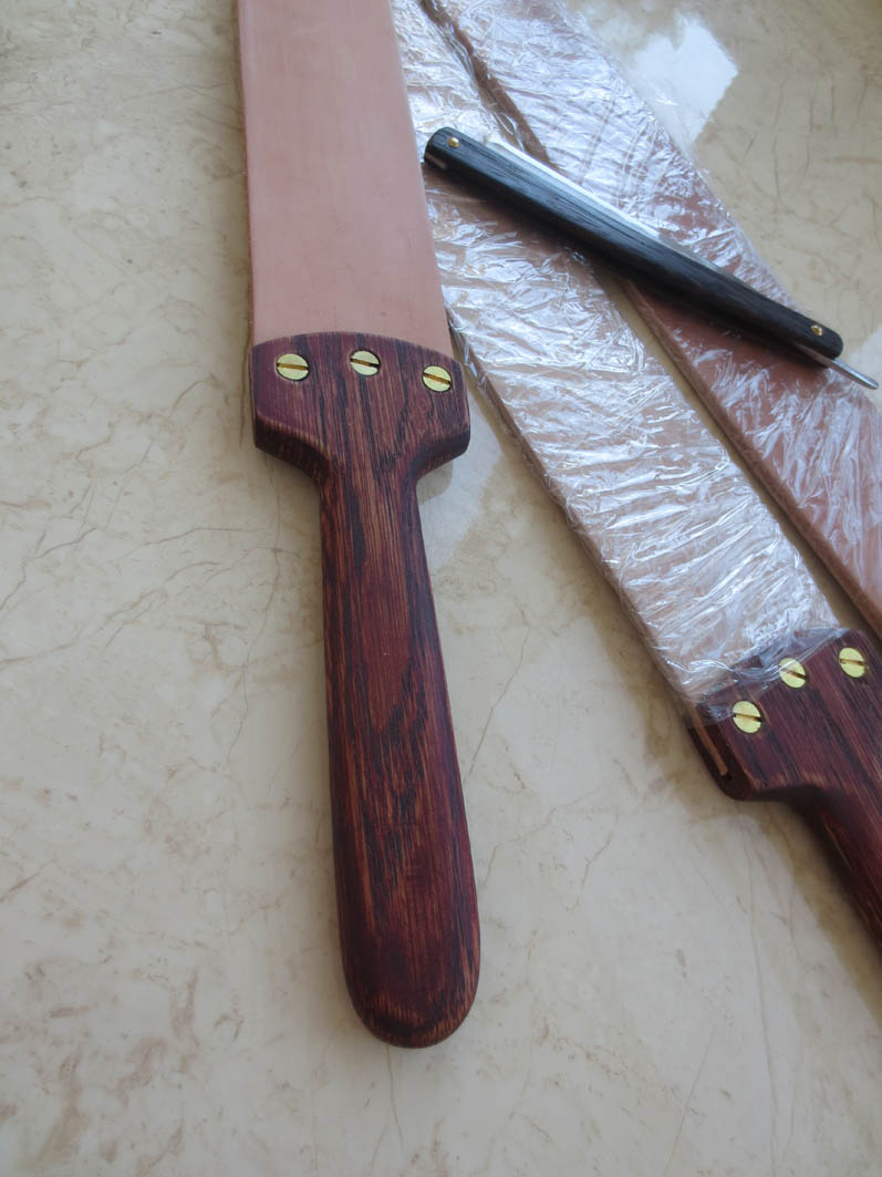 Полированная натуральная кожа растительного дубления, толщина 3,5-4 мм, длина рабочей части 45-50 см, ширина -5см. Ручка - морёный дуб, покрытие - датское масло, винты, гайки - латунь. Всё узлы сделаны разборными. Размеры ремня отлично подходят для правки клинковых бритв. Цена 3000 руб ещё Show Бесит, когда приходится пользоваться бритвой моложе себя...