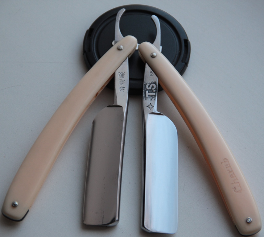 Бритвы совершенно непользованные, не разбирались и не ремонтировались.Очень красивые и эффективные бритвы. Тяжёлые. Сталь и кромка чистые. На одной бритве ,с одной стороны полотна есть небольшая полоска от контакта металла с оправой. Но, ничего делать не стал, дабы оставить заводской гринд клинка.Обе бритвы имеют заводскую заточку, но судя по опыту прошлых лет, данные бритвы будут прекрасно бритью. Геометрия идеальная. Перед отправкой будут заточены и подготовлены полностью к бритью.