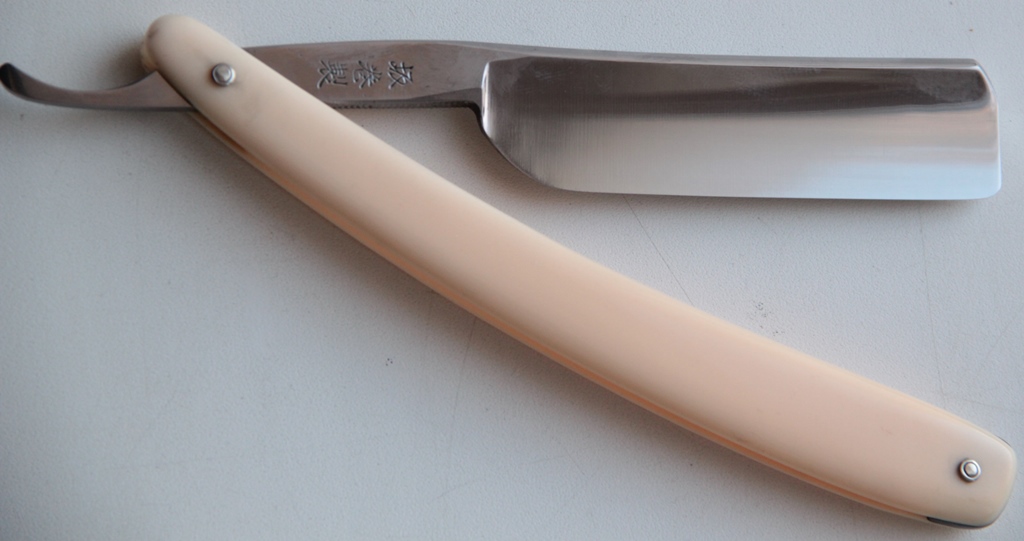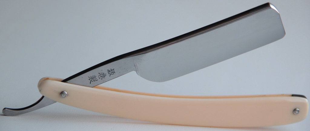 Очень красивый, укороченный клин, с достаточно редкими пропорциями. При такой ширине полотна, ширина обушка имеет достаточно неестественный размер-8 мм.У меня была однажды подобная бритва, на коробке которой была надпись, что бритва предназначена для жёсткой щетины. Думаю, что такой строй клинка и такой большой угол заточки предназначены именно для лучшей стойкости кромки. Также, форма лезвия предполагает бритьё , если класть плашмя бритву на личо, не настраивая угол.Не смотря на свою скромную длину, бритва тяжёлая. Идеальная геометрия полотна:кромочка равномерна по всей длине и еле заметна.В отличие от английских и французских полных клинов, японцы в плане геометрии были всегда на высоте-слесарка просто идеальна всегда.Бритву не рекомендую новичкам, по причине повышенной травмоопасности. Ошибок не прощает-сразу порез. Как выше сказал, бритва достаточно редка встречается, так что будет очень неплохим экземпляром в любой коллекции.Бритва не разбиралась и не реставрировалась. Всё родное. Полотно чистое, без каких либо дефектов. Лично протестирована на качество бритья. Бритьё чистое, без раздражения. Из за стали твёрдости средняя+, бритьё с элементами жёсткости присутствует. Это моё сугубо личное ощущение, так как имею кожу весьма чувствительную к бритвам средней+ твёрдости.После бритья бритва легко проходила тест на рез волоса(тонкий , некрашенный, женский) , без правки на ремне. Так что, кромка хорОшо держит заточку.Сталь качественная.. Не пропустите редкую и красивую бритву для своей коллекции!