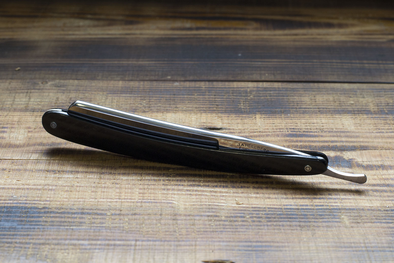Опасная бритва знаменитого шведского производителя J.A. Hellberg, модель 24 является одной из самых массовых и универсальных, кроме Hellberg'a, очень похожую бритву с таким же номером модели выпускал С.V. Heljestrand. Период производства можно определить как конец 19 века. Вогнутость близка к клину, условно можно назвать 1/4, ширина полотна 14.5 мм. сталь - шведская углеродка, обладающая повышенной корозионной и износостойкостью, бритвы из шведской стали очень хорошо держат заточку. Рукоять изготовлена изцеллулоида, геометрия близка к идеальной - фаска рк ровная и тонкая по всей длине. Бритва в состоянии новой и никогда не была в использовании, следы заточки на обухе, я уверен что с завода, так как кромка не была сведена. Бритва прекрасна во всех отношениях и подойдет как новичку, так и опытному пользователю, особенно рекомендую для окантовки. продано № 24 Show
