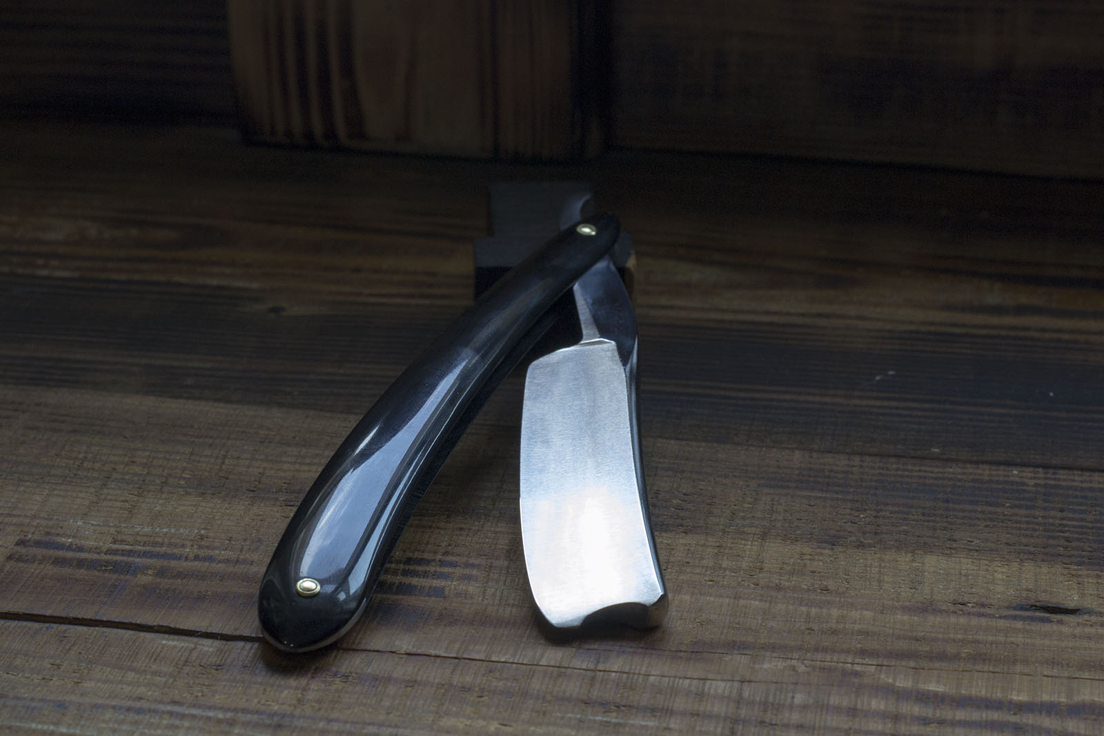 Английский клин середины 19 века, солидной шириной в 22 мм. и красивым трехгранным обухом, форма полотна своей округлостью немного напоминает старые французские клины 20-х годов 19 века, но так же отличается наличием характерной подпальцевой выемки, которая очень удобна при удержании полотна. Рукоять изготовлена из рога буйвола с травлением под черепаху, ее удалось сохранить благодаря заливке некоторых сколов эпоксидной смолой, вставка из олова имеет следы окисления, которые я предпочел оставить. Бритва изготовлена из качественной шеффилдской углеродистой стали и имеет идеальную геометрию, фаска режущей кромки тонкая и едва заметна по всей длине. Лишний раз не хочется перечислять заслуги данного производителя, информации очень много в сети и в описании других моих бритв от Joseph Rodgers & Sons. Бритва заточена и готова к бритью, станет прекрасным дополнением любой коллекции или первой и любимой бритвой для новичка. Продано Rodgers Show