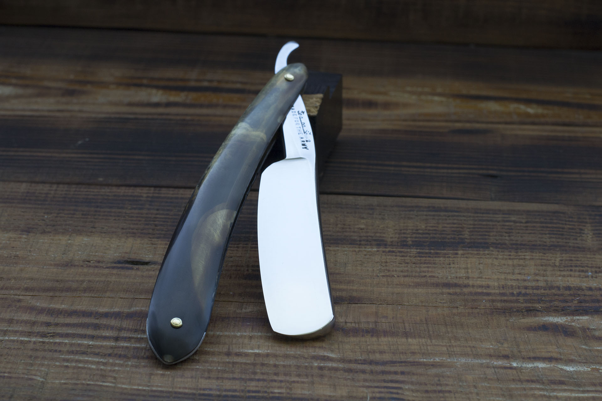 Узкий английский клин без клейма производителя. На эрле стоит метка Fine India Steel, что в целом дает представление о стали как о качественной литой углеродке, произведенной в 30-40-х годах 19 века. Бритва имеет тонкую и равномерную режущую кромку, что свидетельствует о хорошей гометрии полотна. Рукоять изготовлена из дерева и является интересным образчиком народного творчества в области ремонта и модификации бритв. Порода дерева напоминает падук или что то похожее, из уважения к неизвестному мастеру 19 века, рукоять немного освежил, пропитал даниш ойлом и поставил обратно. Ширина полотна 15.5 мм. Бритва идеальна для окантовки, но при определенной практике может отлично справляться с любой щетиной. Режущие характеристики узких клинов ничем не хуже аналогочного параметра широких, длина режущей кромки идентична и при правильной постановке угла и техники бритья, узкий клин легко станет прекрасным ежедневным решением. Бритва заточена и готова к бритью. Продано Fine India Show