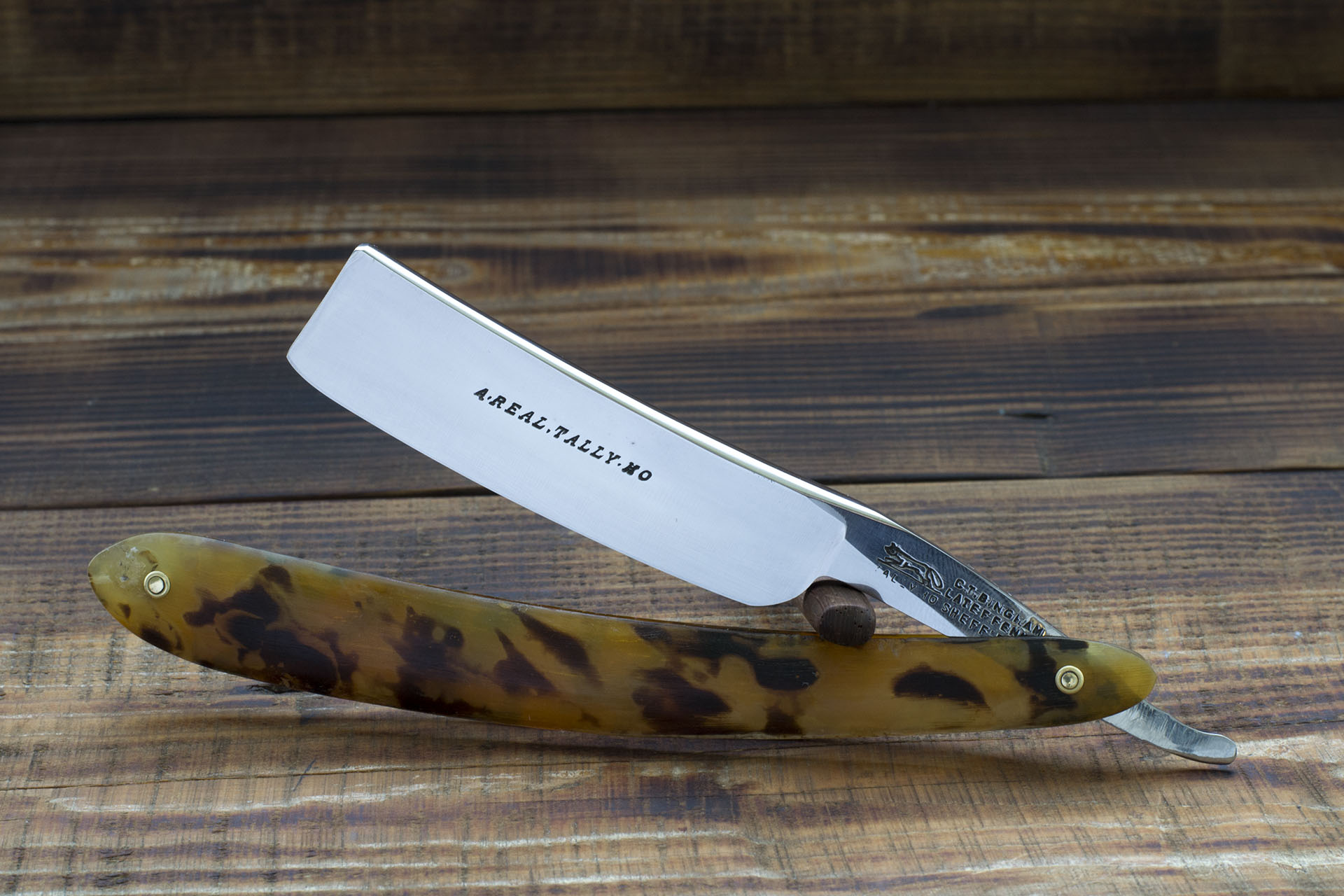 Старый английский клин от Charles Thomas Bingham, знаменитой торговой марки Tally Ho. Первым владельцев бренда с бегущей лисой являлся Frederick Fenney имя которого так же увековечено на эрле в дань уважения и признания. Данный экземпляр изготовлен в 50-х годах 19 века, точно такие же бритвы с глубоким клеймом "A Real Tally Ho" на эрле выпускались еще во времена Фредерика Фенни, модель старая и вероятно бритва выпущена в первые годы после перехода марки под владение Бингхэма. Ширина полотна 21 мм, вогнутость бритвы - клин. Стоит отметить прекрасное состояние полотна на момент поступления. Я провел лишь самые минимальные реставрационные работы, сохранив изначально прекрасную геометрию полотна. Рукоять бритвы изготовлена из светлого рога с травлением под черепаху, приведена в порядом, почищена и проклеена местах, имеющих полости, поставлены новые современные пины. Подобные бритвы встречаются крайне редко и редко втройне если искать полотно в хорошем состоянии без особых следов поточенности. Полотно изготовлено из качественной литой углеродистой стали, фаска режущей кромки тонкая и равномерная. Бритва заточена и готова к бритью. продано Tally Ho Show