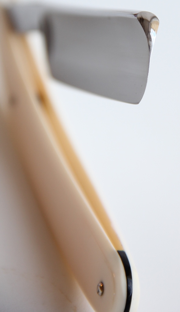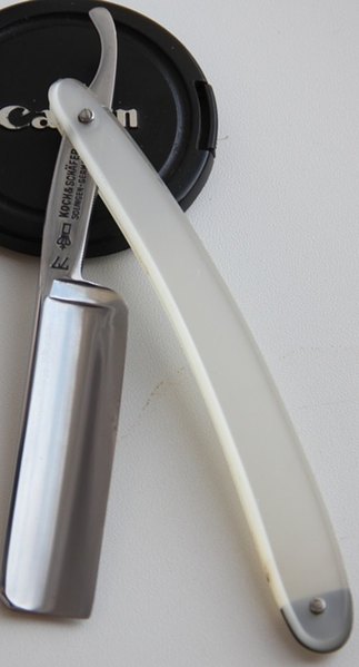 Ширина полотна- 22 мм Толщина обушка- 5.5 мм Полная вогнутость. Углеродистая сталь. Бритва в прекрасном состоянии, без видимых следов пользования.Есть подозрение, что вообще непользованная. Почистил металл в районе осевого пина и снова собрал.Сталь чистая, кромочка идеально ровная по всей длине и еле заметна. Красивая, достаточно увесистая бритва. Заточена и готова к бритью. Цена-7500 р с доставкой.ПРОДАН Не забывайте с бритвой приобрести и ремень для правки! Spoiler Show