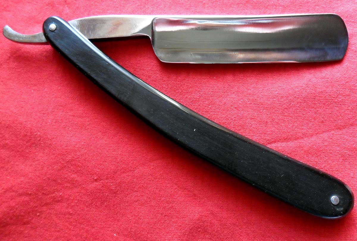 Надпись на полотне: WHOLE HOLLOW GROUND Ручка - эбонит. Очень приятная бритва - хорошо точится, притом хорошо держит заточку - садится после бритья весьма незначительно. 4 дня сравнивал в бритье с парой своих любимых широких бритв. "Старички" победили только в силу привычки, т.к. в бритье я разницы не ощутил - просто прекрасно. Естесственно, заточена и полностью готова к бритью. Ширина полотна 20 мм, толщина в обухе 5,5 мм.