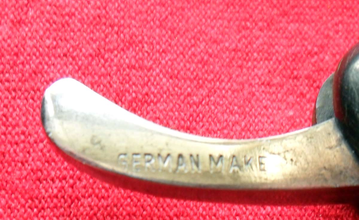Надпись на полотне: THE CROWN DOUBLE AND WHEEL RAZOR Также имеется надпись на хвостовике: GERMAN MAKE. Кстати, впервые встречаю бритву с надписью на хвостовике. Ручка - эбонит. Естесственно, заточена и полностью готова к бритью. Широкая, мягкая и тонкосведенная бритва, очень приятная в бритье - мой любимый размер и геометрия. Ширина полотна 19,5 мм, толщина в обухе 4,5 мм.