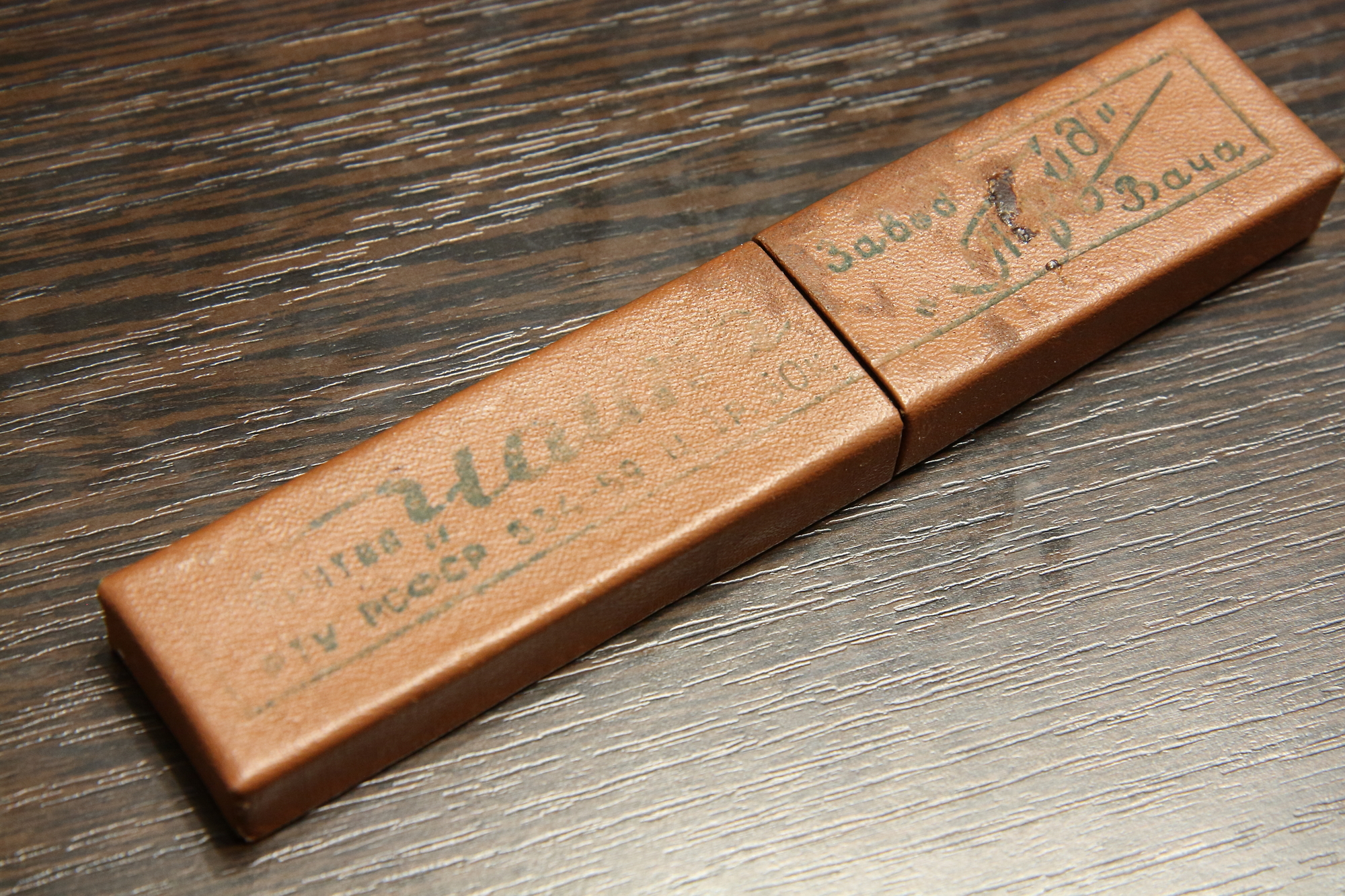 Опасная бритва завода Труд Вача, 1948 год. Ширина полотна 16 мм, все родное, футляр тоже (но очень плохо сохранился). Бритва пришла с пятнами коррозии, почистил полотно вручную (остались некоторые следы, но кромка чистая) и заточил, подготовлена мной к бритью. Отличный представитель старых советских бритв с шикарной сталью и профилем полуклин - уничтожителем густой жесткой щетины. Такие бритвы сейчас редкость. Цена - руб.