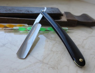 Columbia Cutlery Worcester Mass. Не новодел, ориентировочно - 50-60е года. Ширина клинка - 5/8 дюйиа, углеродка, вогнутость - 1/2, оправа - пластик, заклёпки - латунь. Бритва заточена и подготовлена к работе на японских водных камнях. По качеству стали и геометрии не уступает лучшим европейским брендам. Отличный вариант для начинающего научиться настоящему мужскому занятию. Также в наличии ремни для правки и бесплатная доставка при покупке комплекта. Цена американки - 3450 рублей. Бесит, когда приходится пользоваться бритвой моложе себя...