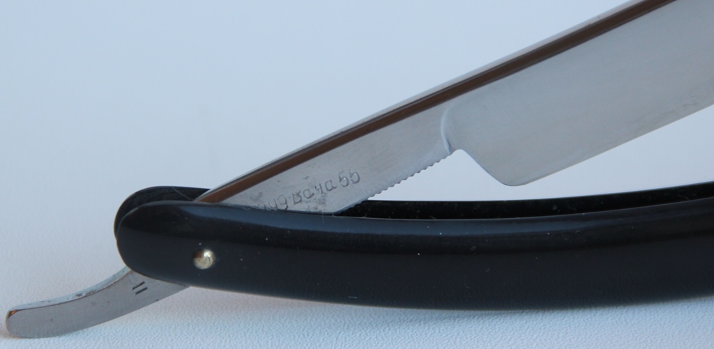 Бритва в очень хорошем состоянии для своих лет и приятна во всех отношениях. Разобрал, немного почистил полотно и снова собрал, добавив новые немецкие втулки и внутренние шайбы. Оправа также, в очень хорошем состоянии.Сталь и кромка чисте,без видимых дефектов. Идеальная геометрия полотна.Отличный вариант для человека любого уровня пользования клинковой Бритвой. Среднего размера, удобна в обращении и при этом с бесшумным бритьем, за счет своей формы лезвия.Бритье чистое и мягкое. Заточена и готова к бритью.